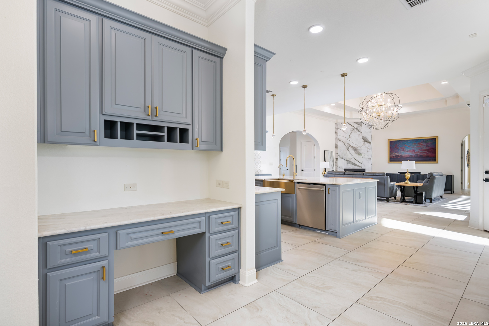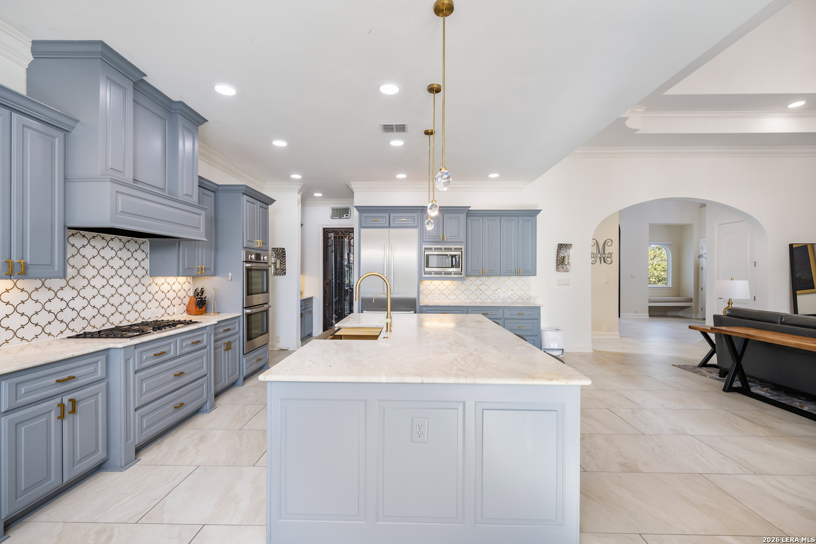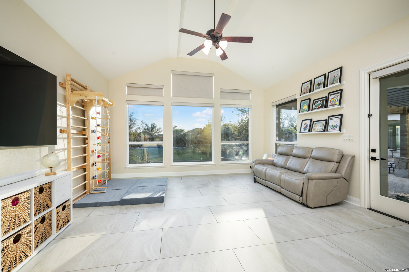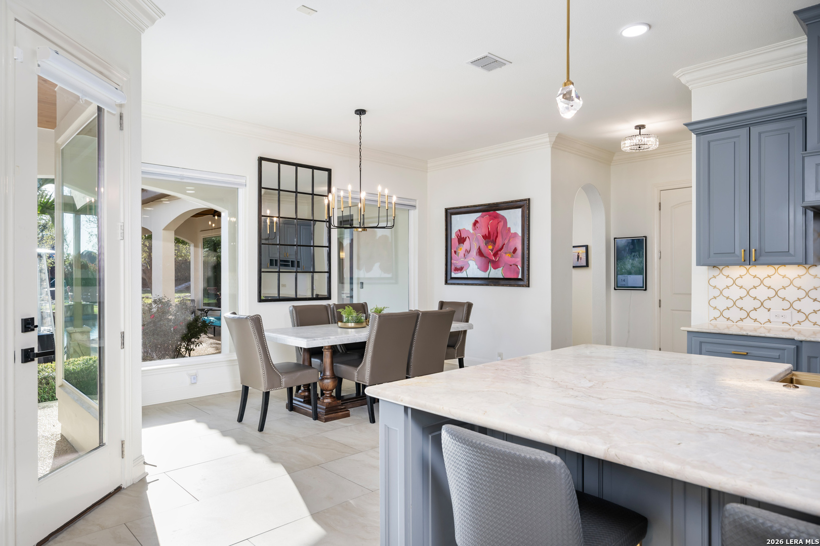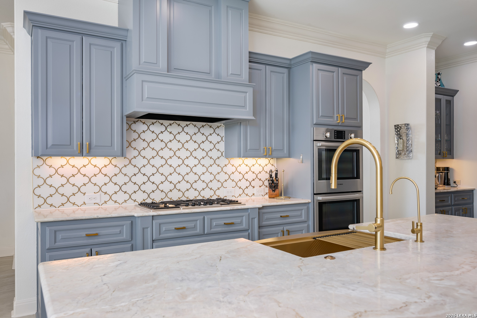 Timeless in design, this custom-built home in the gated Heights at Stone Oak Waterford has been extensively updated and upgraded. The perfected floorplan covers every base, and the indoor/outdoor flow allows for an elevated living experience. Fresh exterior paint, a circular driveway, a Cantera stone fountain, beautifully maintained grounds, and an oversized custom iron front door with Flemish glass create a strong architectural presence. Immediate views upon entry draw your eye to a park-like, resort-style backyard. Turn-key and move-in ready, this home has been meticulously maintained and needs nothing! MAIN LIVING AREAS | The main living area features a floor-to-ceiling stone fireplace and opens to wall-to-wall sliding doors, creating a seamless connection to the outdoor living space. The kitchen has been updated with added custom drawers, a new sink, updated hardware, natural stone countertops, double ovens, gas cooking, Bosch stainless steel appliances, and custom cabinetry. A wet bar and large wine cellar enhance the home's entertaining capabilities. DOWNSTAIRS LIVING | A downstairs guest suite with a full bath and walk-in shower offers privacy and flexibility for guests or multigenerational living. The primary suite includes a sitting area and a well-appointed bathroom with a garden tub, glass walk-in shower, dual vanities, and multiple walk-in closets, along with direct access to the backyard. The home also features a beautiful flex space with extra-large windows and access to the backyard, as well as a wet bar area that is perfect for a game room, theater room, indoor gym, or overall flex space. UPSTAIRS | Three generously sized bedrooms, two bathrooms, a loft/sitting room, and an additional office or flex space with exceptional views. OUTDOOR LIVING | The outdoor space is designed for both relaxation and recreation, with a pool (heated), waterfall, hot tub, gazebo, newly added turf, a designated large dog run, a designated play area, and a private basketball court. ADDITIONAL FEATURES | Additional features include a 3-car side-entry garage, two living areas, and a formal dining space. Double entry access from the garage, a large mudroom, and an oversized laundry room with a large walk-in pantry add to the home's functionality. HIGHLIGHTS | Resort-style backyard with pool, waterfall, hot tub, gazebo, and private basketball court | Over 3,000 sq ft of turf | Wall-to-wall sliding doors | Two tankless water heaters | Full bathroom remodel in bedroom 3 | Designated large dog run | Updated kitchen with Bosch stainless steel appliances, gas cooking, double ovens, natural stone countertops, new sink, hardware, and added custom drawers | Large wine cellar and wet bar | Floor-to-ceiling stone fireplace | Custom iron front door with Flemish glass | Fresh exterior/interior paint | 3-car side-entry garage | Double entry garage access | Large mudroom | Oversized laundry room with sink/countertop and room for two stackable washer/dryers sets and then some | large walk-in pantry | Spacious flex room with backyard access | Upstairs game room and additional office/flex space | Generously sized bedrooms. Floor plan available. Must show pre-approval or proof of funds for showings.