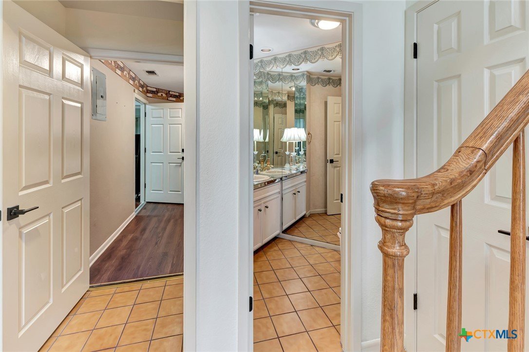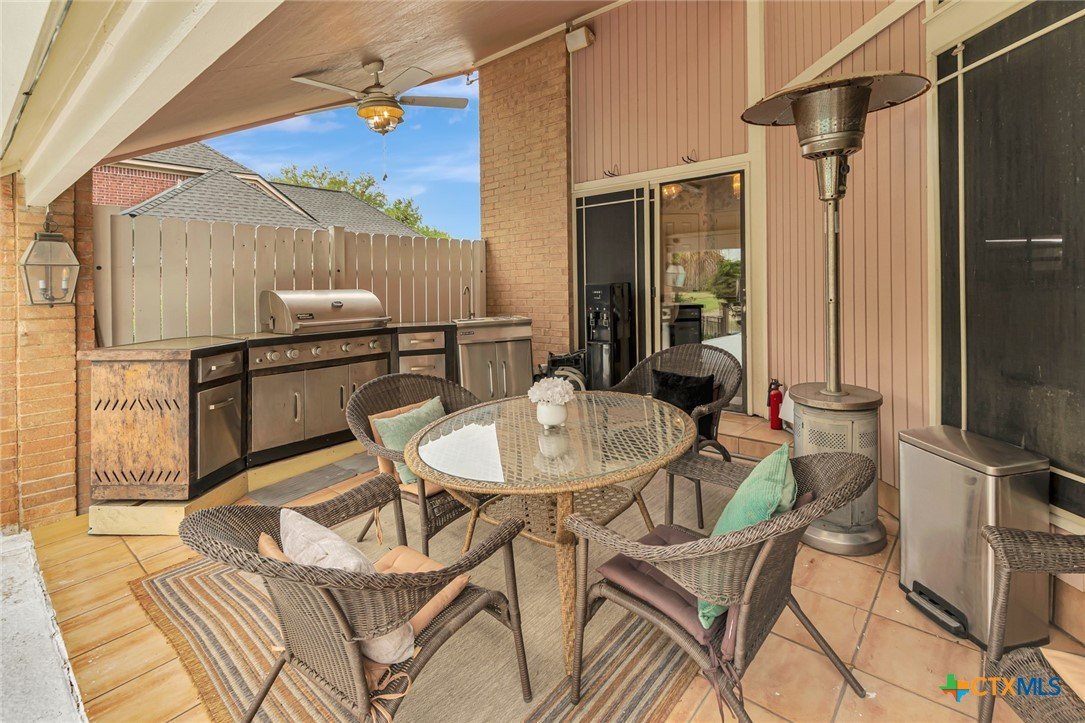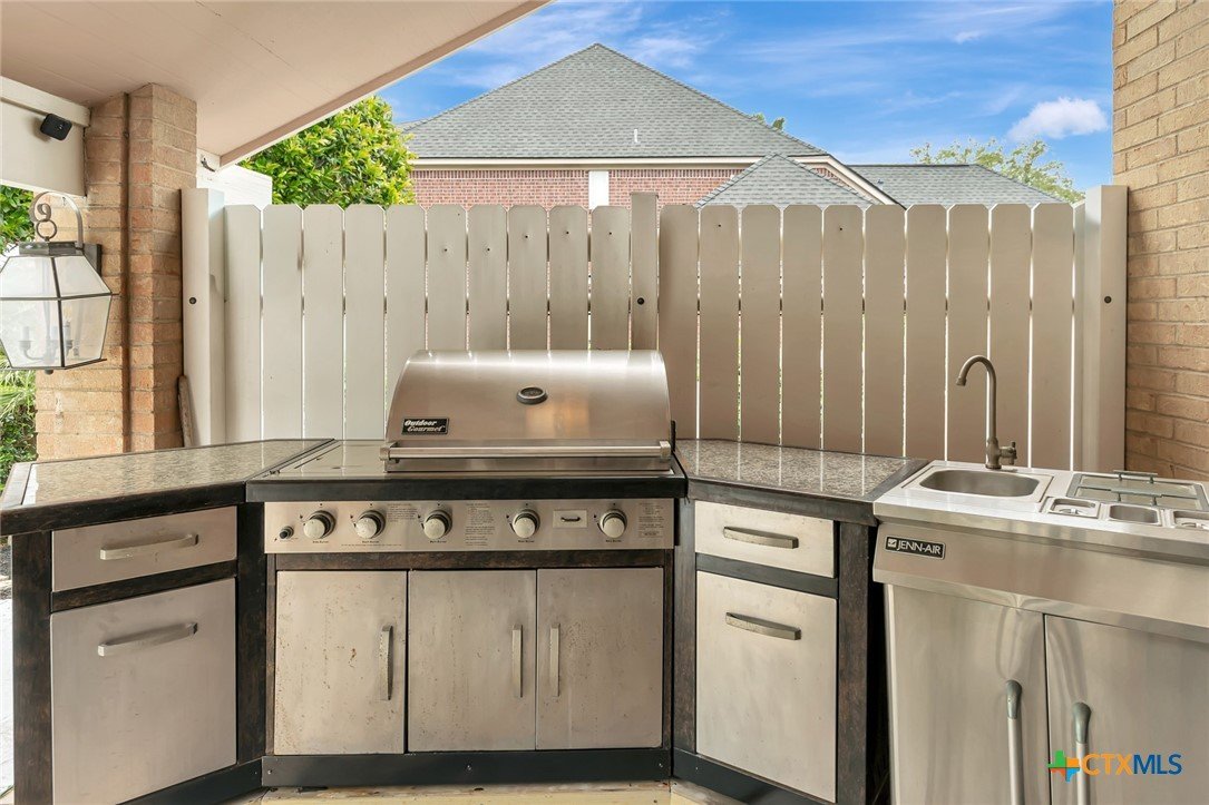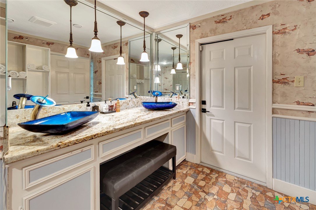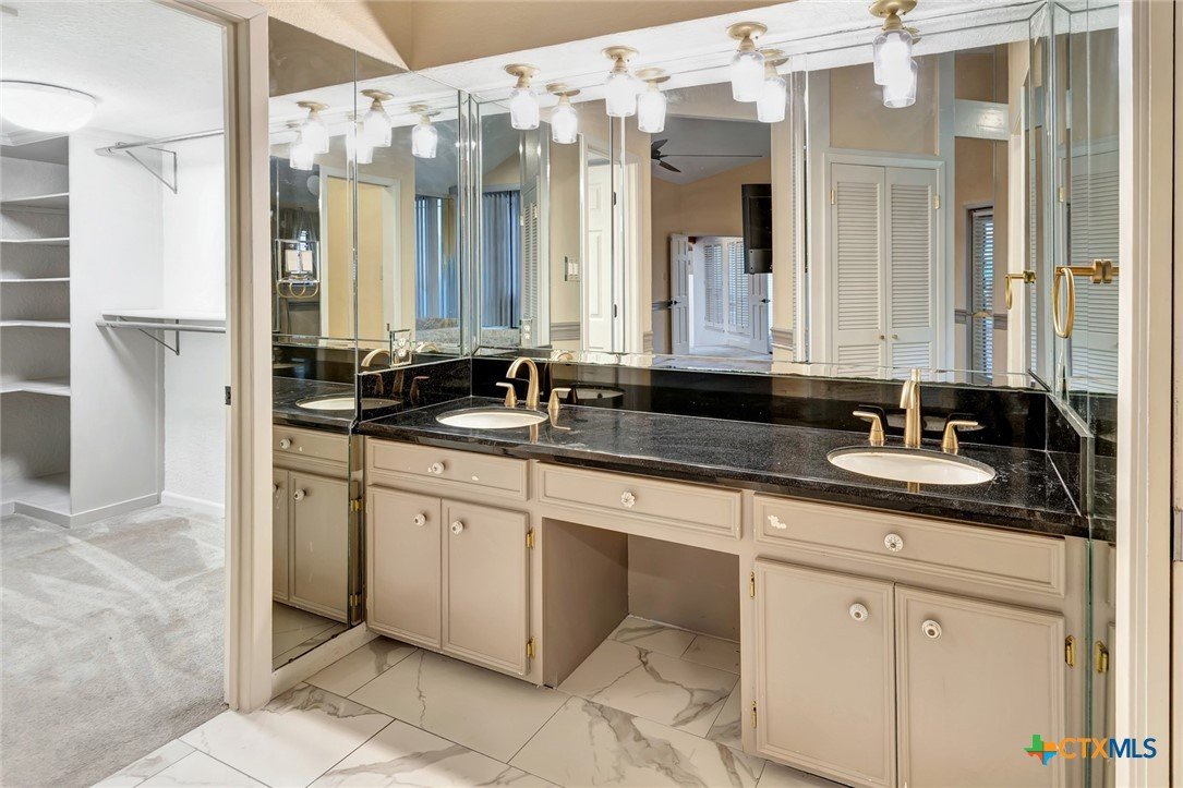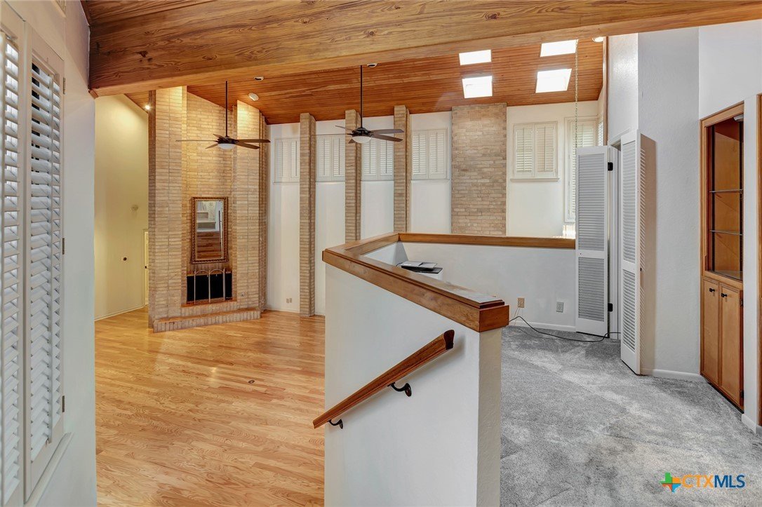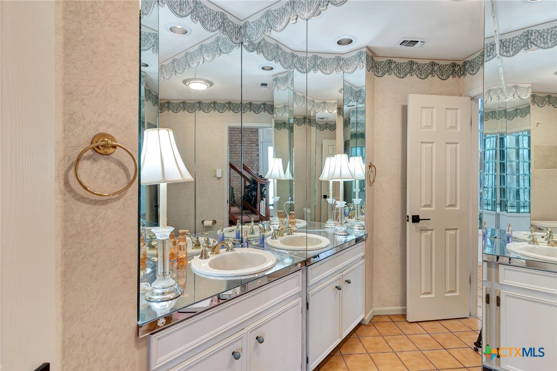Live every day as if you’re on vacation in this architecturally designed, resort-style home overlooking the lush greens of the Victoria Country Club. Tucked away on a quiet cul-de-sac, this dramatic 4-bedroom, 3.5 bath residence offers indoor & outdoor entertaining spaces, two primary suites, and amenities rarely found in one property. The impressive entryway sets the mood for the grand living room with soaring wood-plank cathedral ceilings, abundant skylights, and a massive fireplace. A loft/study overlooks the living area; perfect for an in-home office. A formal dining room adjoins the kitchen with granite counters, a pantry & an island for extra seating. The split-bedroom design enhances privacy with 2 bedrooms off the living room, connected by a Jack-and-Jill bath and walk-in closets. The bath includes an accessible walk-in tub with a low threshold door, and built-in seat—combining safety and comfort for your soaking enjoyment. The primary suite offers an extra-large owner retreat complete with a walk-in closet, wet-bar access, jetted tub, and oversized pebble-floor shower. On the main level, the attached 2.5 car garage has been converted into a private mother-in-law suite with a full bath, roomy walk-in shower, vanity and dressing area, giving direct access to the sauna and pool area. Outdoor amenities include multi-level decks, an stainless kitchen with pass-through access from a wet bar, and a masonry fireplace for those cool evenings. A heated pool with block-glass hot tub overlooks the golf course, while still offering privacy with the lush landscaping and metal & brick column fencing. This spectacular lot offers convenient access to the golf course and the wheelchair ramp makes the pool and outside desks easily accessible. Additional features: two HVAC systems, solar panels for energy savings, Generac generator for stand-by-power, security and sprinkler systems. Recent interior updates including paint, doors, and hardware.