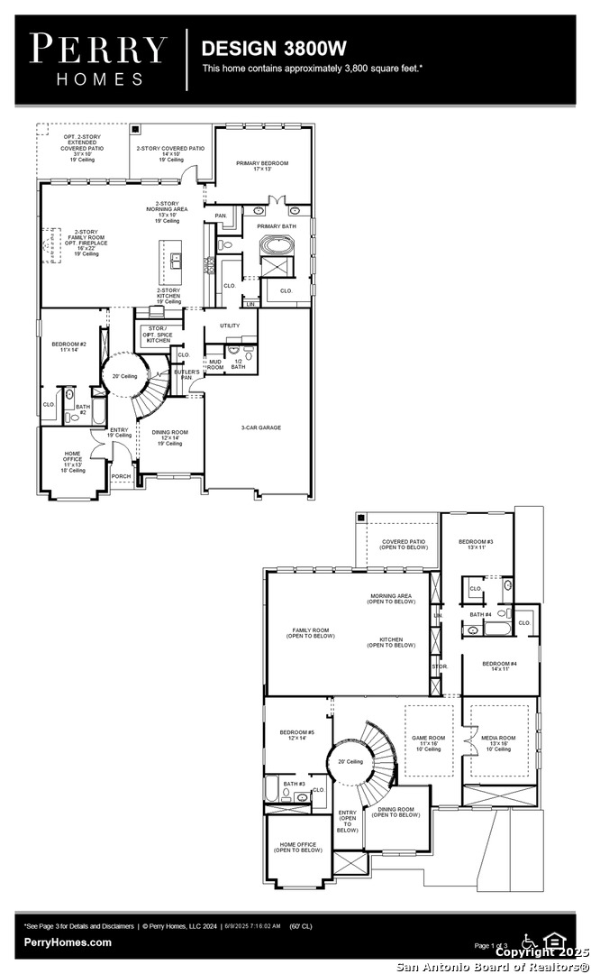 Front porch opens into a grand entryway embraced by a private home office with French doors, a formal dining room, and a spiral staircase. A guest suite is off the main entrance and features a full bathroom and walk-in closet. The two-story family room boasts a 19-foot ceiling, a wood mantel fireplace and a sliding glass door. The kitchen hosts a morning area, an island with built-in seating, 5-burner gas cooktop, walk-in pantry, butler's pantry and additional storage space. The primary bedroom features a wall of windows. The primary bedroom hosts dual vanities, freestanding tub, separate glass enclosed shower, two-walk-in closets, a linen closet, and secondary access to the utility room. Upstairs on the second level you are greeted by a game room with French doors leading into a separate media room. Secondary bedrooms featuring walk-in closets and a Hollywood bathroom. An additional private guest suite completes the second floor. Two-story extended covered backyard patio and 6-zone sprinkler system. A mud room with a half-bathroom is located off the three-car garage.