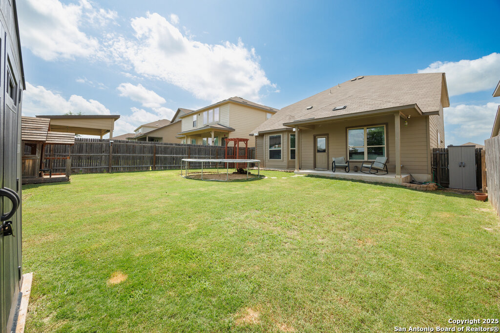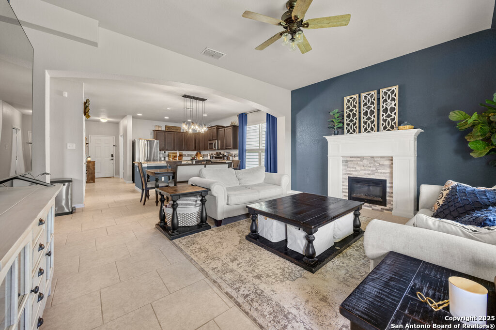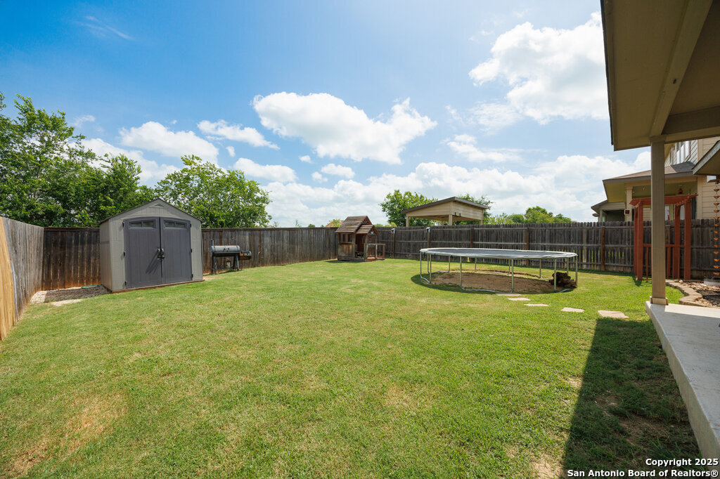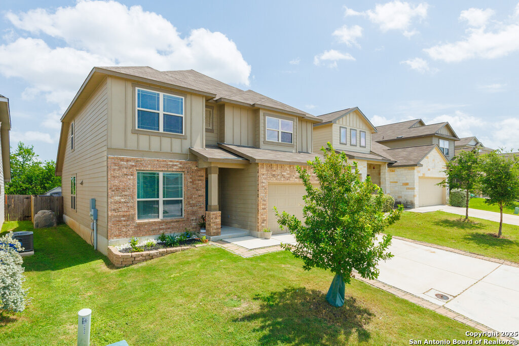 Beautifully decorated 2-story home featuring 4 spacious bedrooms, a study and a gameroom. The open floor plan is enhanced by upgraded lighting fixtures that add a stylish touch throughout. The kitchen boasts granite countertops, stainless steel appliances, and an island with a breakfast bar. Unwind in the primary suite, complete with a garden tub for relaxing soaks. Secondary bedrooms are all sizeable. Cozy up in the living area with a charming mantle and a built-in electric fireplace. Privacy-fenced backyard with a storage shed. Easy access to Loop 1604 and IH-10. Minutes to Randolph AFB, shopping, food and entertainment.