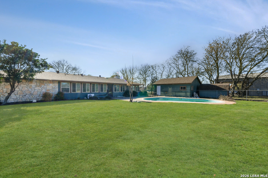 Country living on 1 peaceful acre in the heart of Schertz! Minutes to RAFB, shopping, YMCA, senior center etc. Adorable single story featuring a wraparound porch plus an inground swimming pool. The oversized Florida room complete with bar is ideal for entraining! Inside is an Open floor plan with a spacious kitchen & cozy fireplace. The primary suite is huge! featuring dual walk in closets for plenty of storage. Circular drive with room for boat/RV parking & no HOA!!! Truly unique property! Schedule your showing today! Agents see assoc. docs for list of recent improvements.