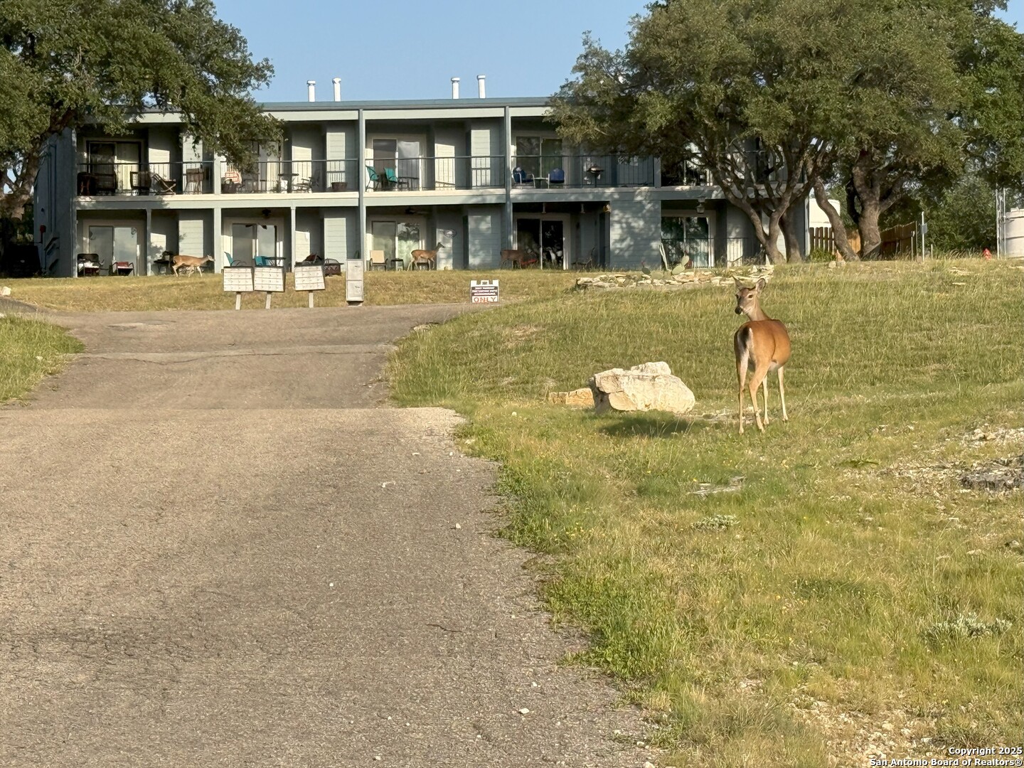 Charming 2-Bed, 2-Bath First-Floor Condo Near Canyon Lake welcomes you to your peaceful retreat in the heart of nature! This beautifully maintained first-floor condo offers 2 spacious bedrooms and 2 full bathrooms, perfect for full-time living or weekend getaways. Enjoy the ease of in-unit laundry and two sets of large sliding glass doors: one from the living area and another from a bedroom, both opening to a private outdoor patio, ideal for relaxing or entertaining. Surrounded by natural beauty, the property is home to abundant local wildlife, providing a serene, picturesque setting. The community features two fenced swimming pools, multiple BBQ pits, and plenty of open space to unwind with friends and family. Located just minutes from Canyon Lake, this condo is a rare blend of comfort, nature, and convenience. Whether you're grilling under the Texas sky or enjoying your morning coffee while deer roam nearby, this is Hill Country living at its finest.