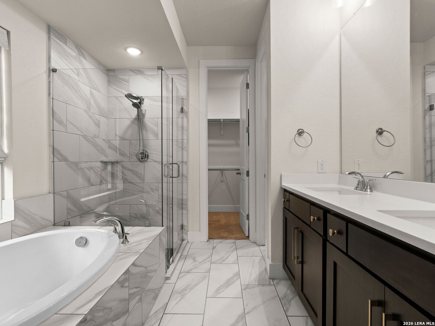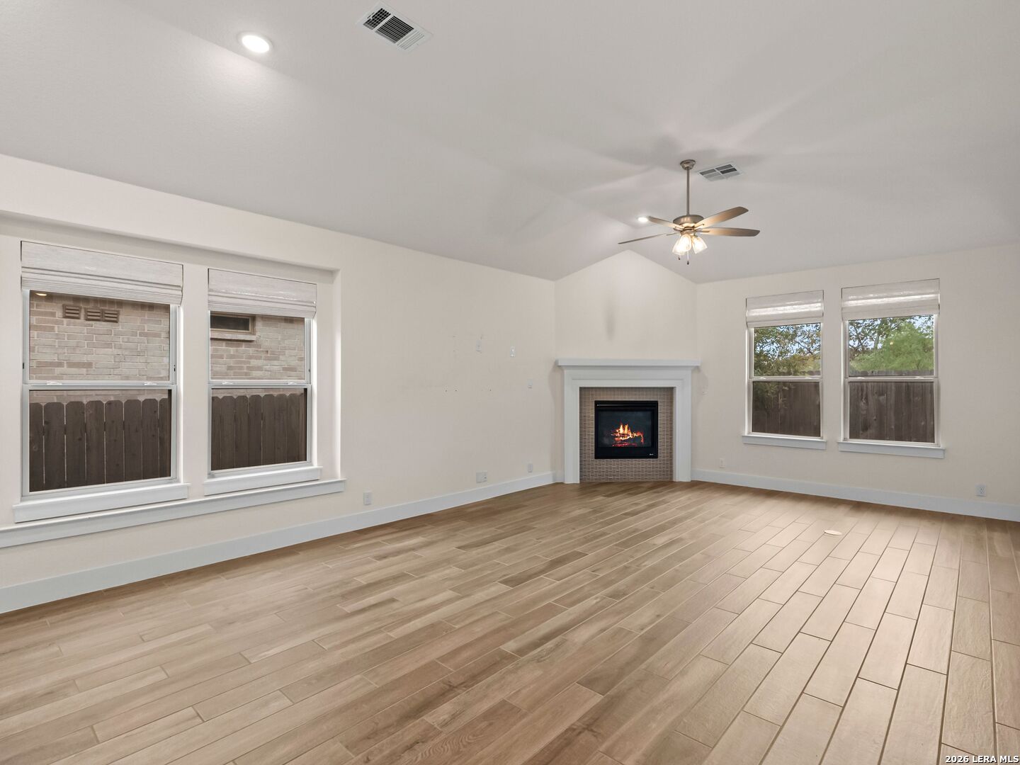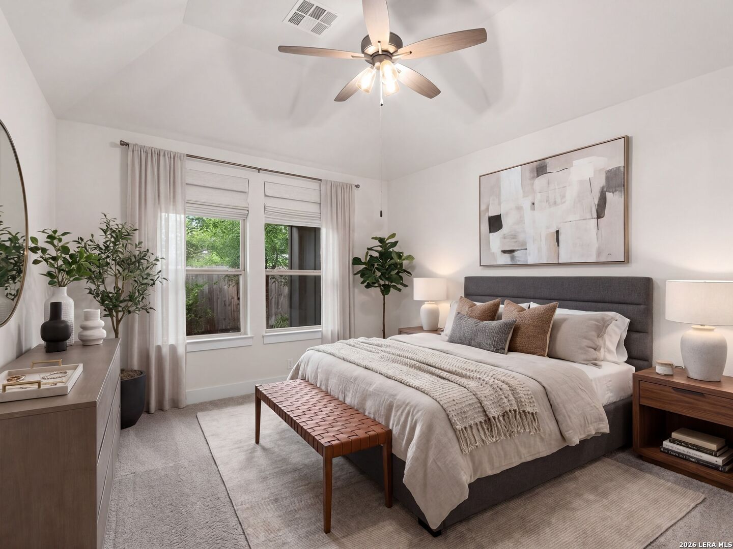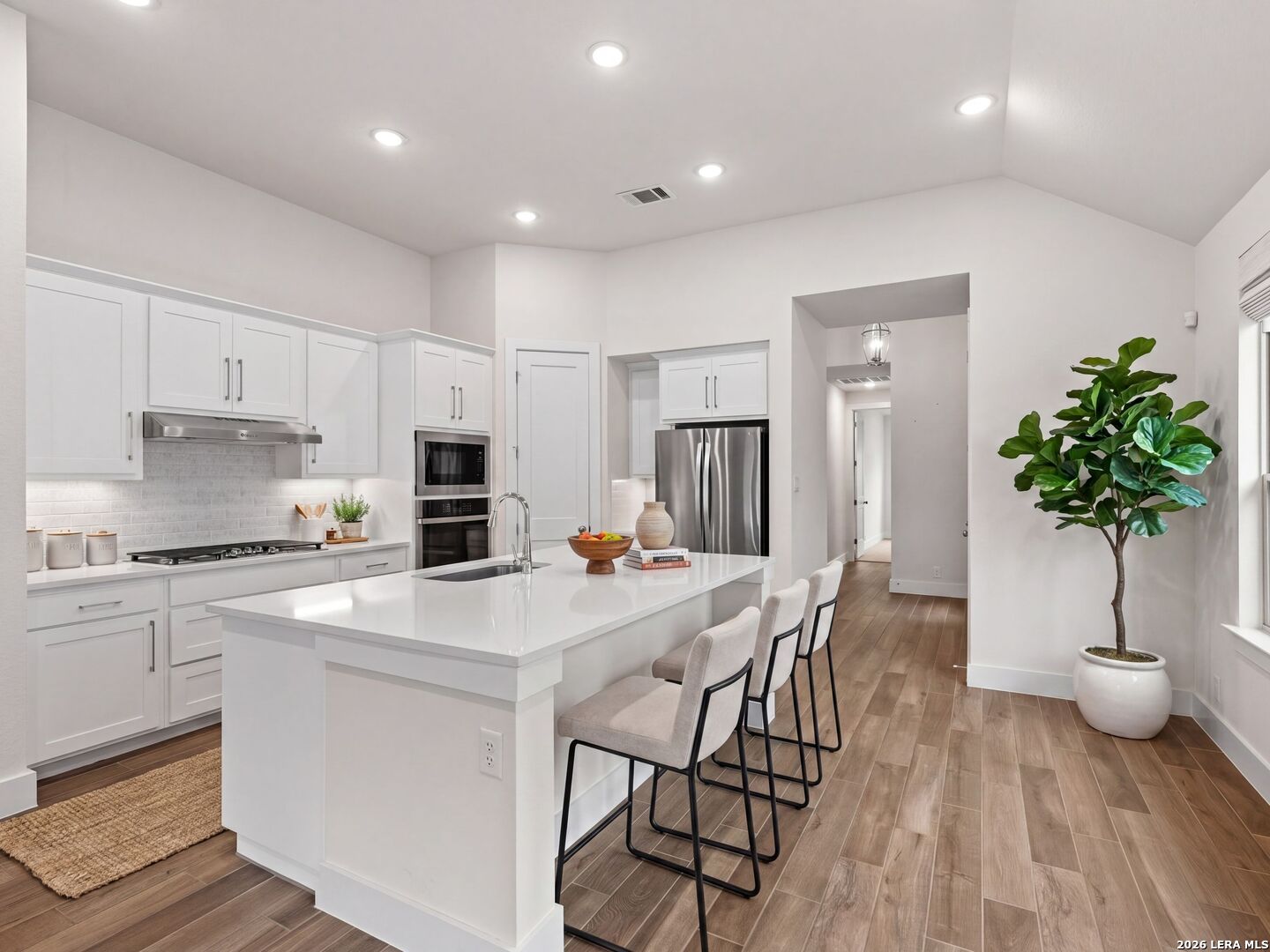 A golf cart ride to the vibrant heart of downtown NB and Gruene places this refined garden home moments from iconic dining, live music, and the timeless charm of the Hill Country. This 3 bedroom, 2 bath residence showcases wood-look tile flooring throughout the main living and dining spaces, creating a seamless and sophisticated flow. The island kitchen features gas cooking, built-in stainless steel appliances, and a walk in pantry all opening effortlessly to the main living area for elevated everyday living and entertaining. The primary suite offers a serene, spa inspired retreat, featuring a soaking tub, and separate shower. The backyard offers a peaceful setting for morning coffee or evening gatherings, complemented by a low-maintenance yard ideal for a lock-and-leave lifestyle. A rare blend of location, design, and ease this home delivers understated luxury in one of New Braunfels' most desirable settings.
