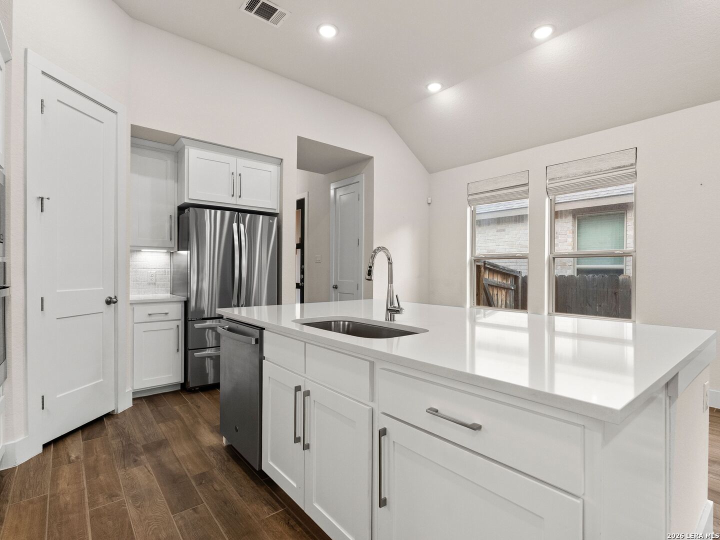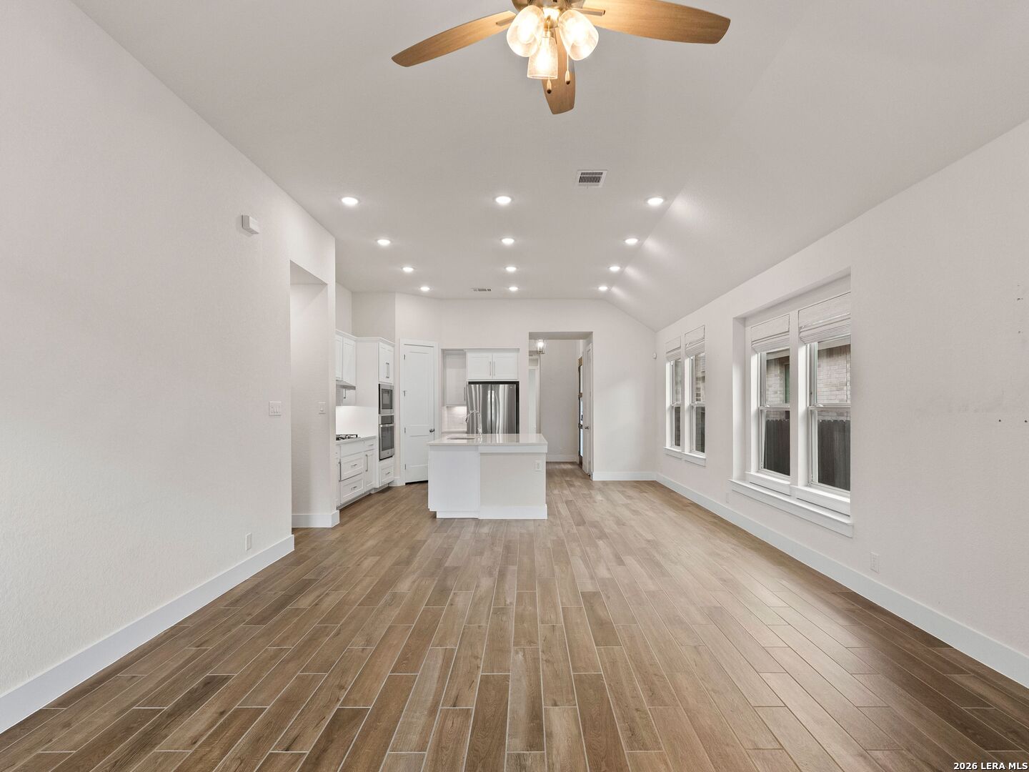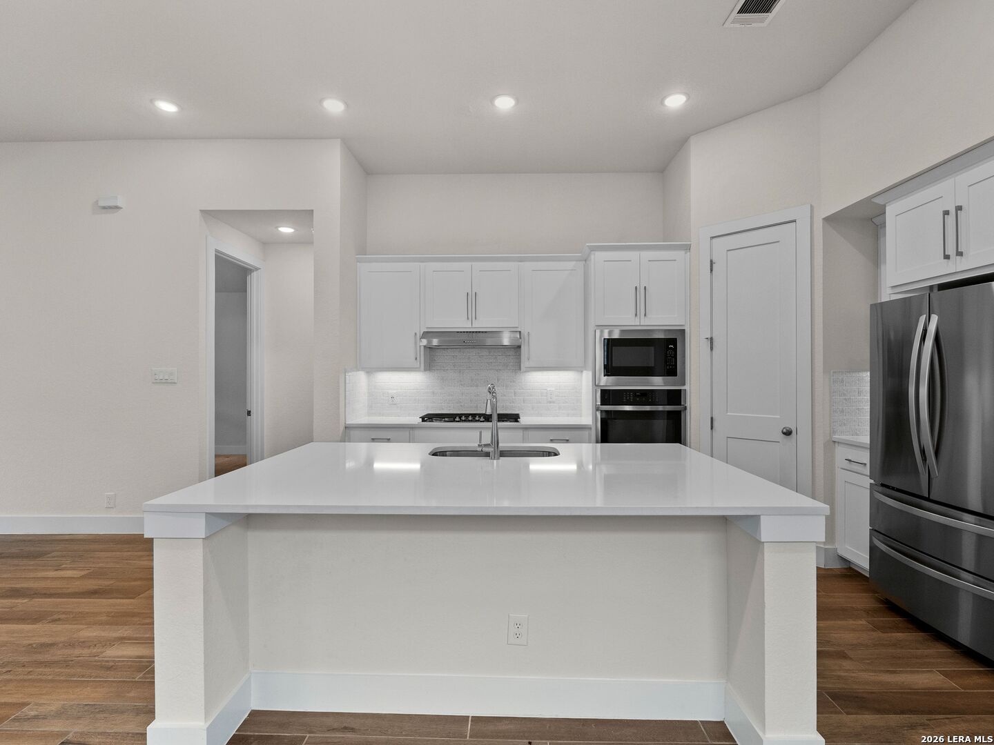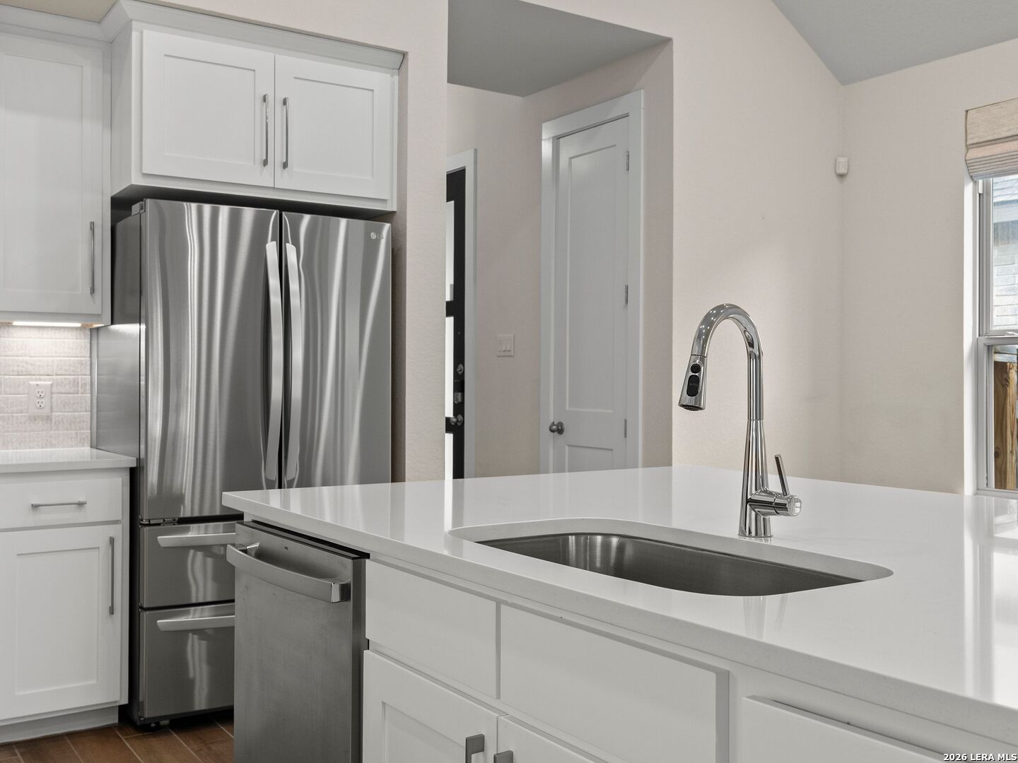 A golf cart ride to the vibrant heart of downtown NB and Gruene places this refined garden home moments from iconic dining, live music, and the timeless charm of the Hill Country. This 3 bedroom, 2 bath residence showcases wood-look tile flooring throughout the main living and dining spaces, creating a seamless and sophisticated flow. The island kitchen features gas cooking, built-in stainless steel appliances, and a walk in pantry all opening effortlessly to the main living area for elevated everyday living and entertaining. The primary suite offers a serene, spa inspired retreat, featuring a soaking tub, and separate shower. The backyard offers a peaceful setting for morning coffee or evening gatherings, complemented by a low-maintenance yard ideal for a lock-and-leave lifestyle. A rare blend of location, design, and ease this home delivers understated luxury in one of New Braunfels' most desirable settings.