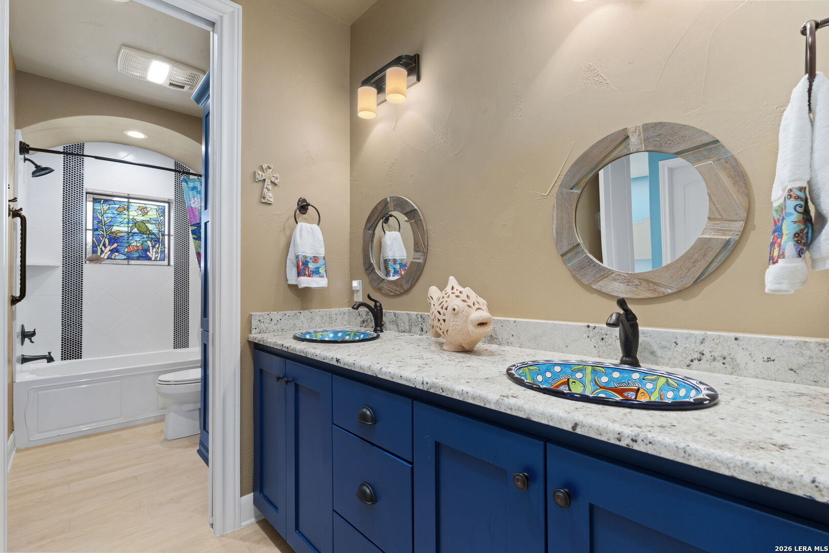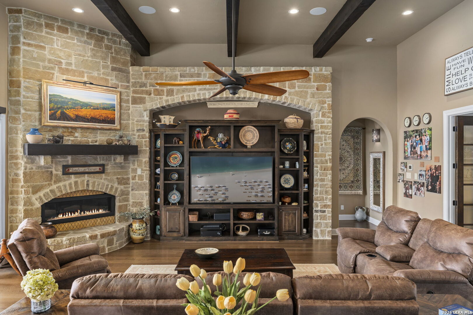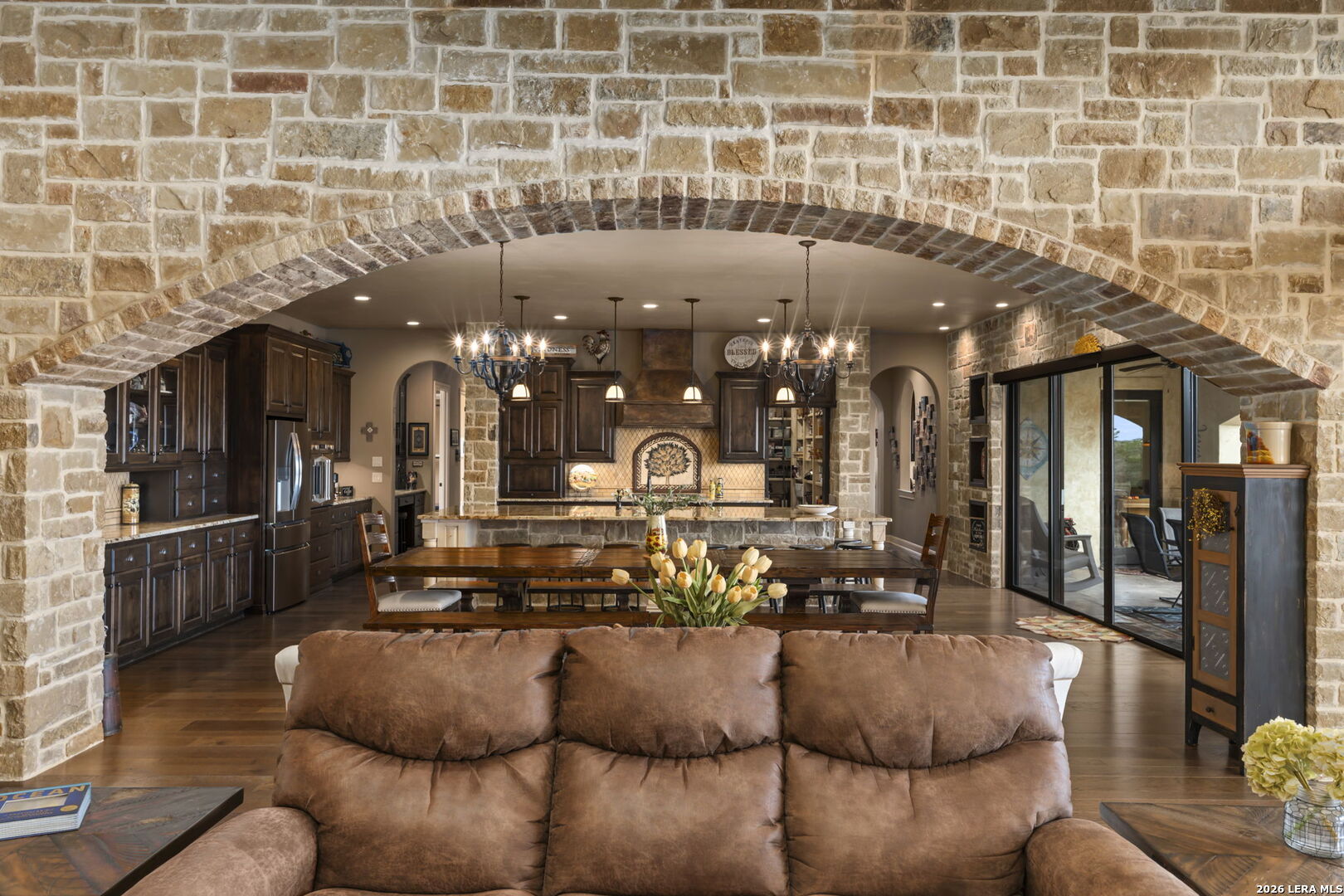 Set on 3.14 private acres within Mystic Shores, 1039 Bluewater Place offers an exceptional Hill Country living experience with sweeping canyon vistas, tranquil water views of Canyon Lake, and thoughtfully designed spaces across three levels and more than 8,000 square feet. This 5 bedroom, 6 bath residence blends architectural presence with everyday livability. The open concept living, dining, and kitchen areas are framed by soaring 10' ceilings, rich stonework, and expansive windows that capture long-range views. The chef's kitchen centers around an exceptional 14-foot granite island, custom cabinetry, artisan finishes, a warming drawer, a drawer microwave, instant hot and cold filtered water at the sink, and is complemented by a spacious walkthrough pantry with its own prep island-beautifully designed to anchor both entertaining and everyday living. Designed for flexibility, the home includes a library office, a third level studio workspace, a game room, exercise room, wine grotto, and a bunk room that comfortably sleeps eight. Each bedroom features its own private bathroom and walk-in closet, enhancing comfort and privacy for family and guests. Elevator access connects all three levels, complemented by two staircases for ease of movement throughout. The primary suite offers a peaceful retreat with a private sitting room, and a spa inspired bath featuring towel warmers and an expansive walk-in shower. A custom walk-in closet completes the suite, showcasing extensive built-ins and a large center island with deep drawers for elevated everyday living. Additional conveniences include a large laundry room with an upper-level chute, whole house audio, custom built-ins and granite throughout, and climate controlled third level storage, also known as a Texas Basement. Outdoor living spans two levels of covered porches overlooking the canyon and lake, along with a resort style pool and spa, expansive cool deck, firepit with seating, and outdoor kitchen. Additional features include a 4 bay garage, pool equipment room, four HVAC systems, a transferable preventative termite barrier system, two wall safes, and a remote monitored fire and security system. The property has recently been independently appraised at $3.5 million, reflecting the scale, design, and setting of this Hill Country estate. Located within Mystic Shores, residents enjoy access to Canyon Lake, community amenities, nature preserves, and trails while remaining within reach of San Antonio, New Braunfels, and Austin.