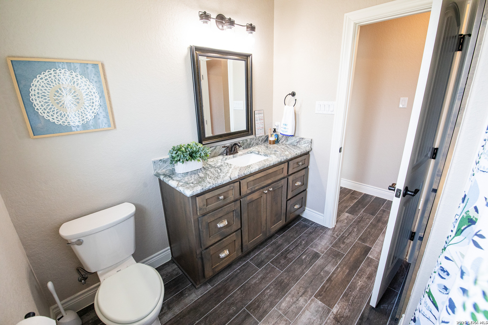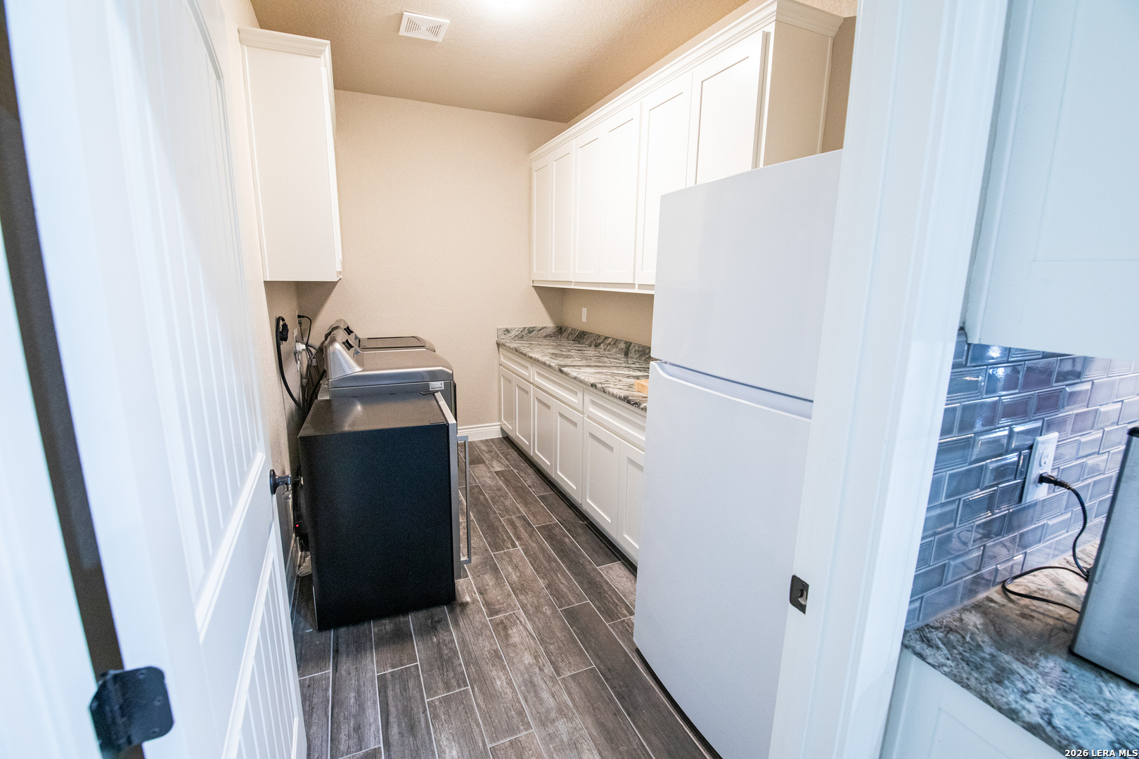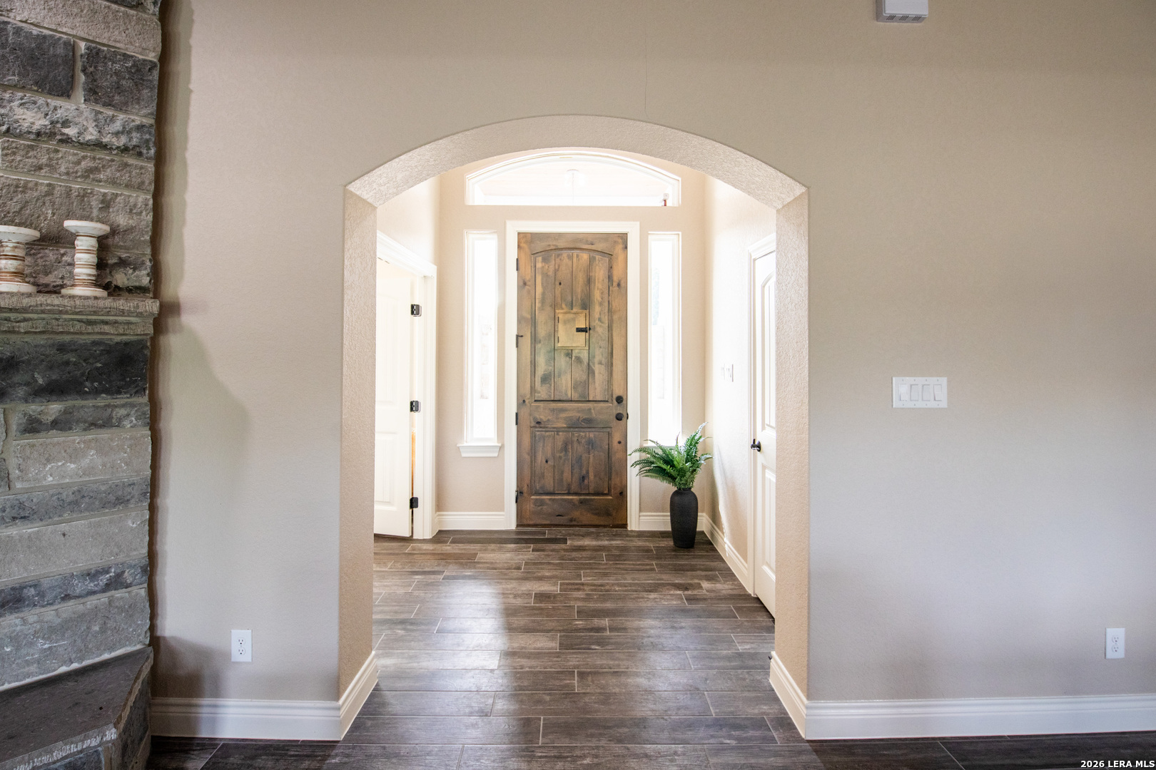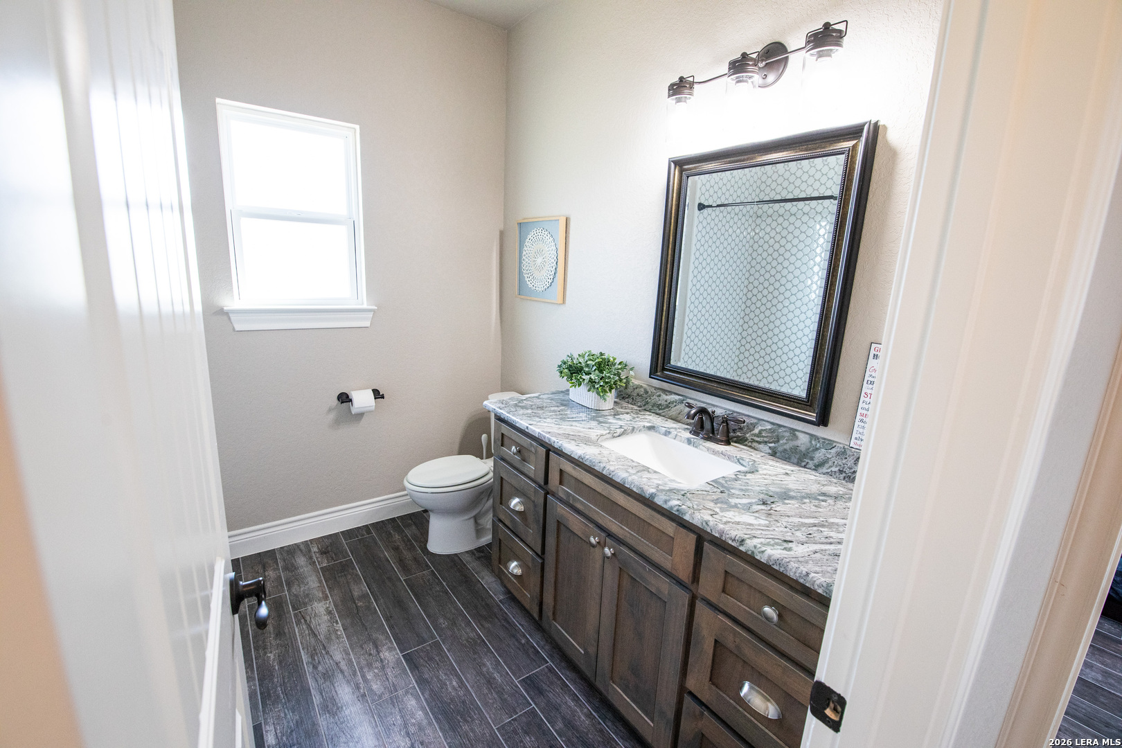 Discover this Lightly-Lived-In, 2021-built Stone & Stucco Home on 1.44 Acres of Texas Countryside in The Settlement neighborhood of La Vernia! The Generous concrete Driveway & Sidewalk allow for Ample Parking and welcome you to the Fashionable Residence. With 4 Bedrooms (one of which is an ideal study/office), 2.5 Baths, and an Open Layout with Beautiful Wood-Tile Floors throughout (easy care, no carpet!) ... this home offers flexibility & ease for your lifestyle. Double French Doors off the entry open to the Study/4th bedroom, with grand windows graced by plantation shutters - and Fiber Internet makes remote work a breeze! In the Living Room, the stone fireplace creates a focal point for gatherings, and abundant windows showcase country views. The Island Kitchen features chic dual-finish cabinetry topped by Gorgeous Granite Counters, with stainless steel GE appliances including a separate cooktop + built-in oven. Journey into the Spacious Master Retreat with Lavish Bath: Double Vanity w/Marble Counter, Soaking Tub set into a Marble Surround + Decorative Tile Accent, Walk-In Shower, and Huge Closet. The secondary bedrooms are likewise roomy, and don't miss the stylish tile around the tub! Chores are a Delight in the sizable Laundry Room with multiple cabinets, granite counter, and space for a 2nd refrigerator! You'll appreciate the efficiency of 2 water heaters. The half-bath opens directly to the back patio - ideal for outdoor activities! Enjoy the pleasant Back Patio as you overlook the private back yard with several Heritage Oaks providing shade & beauty. Schedule to see this exceptional property today!