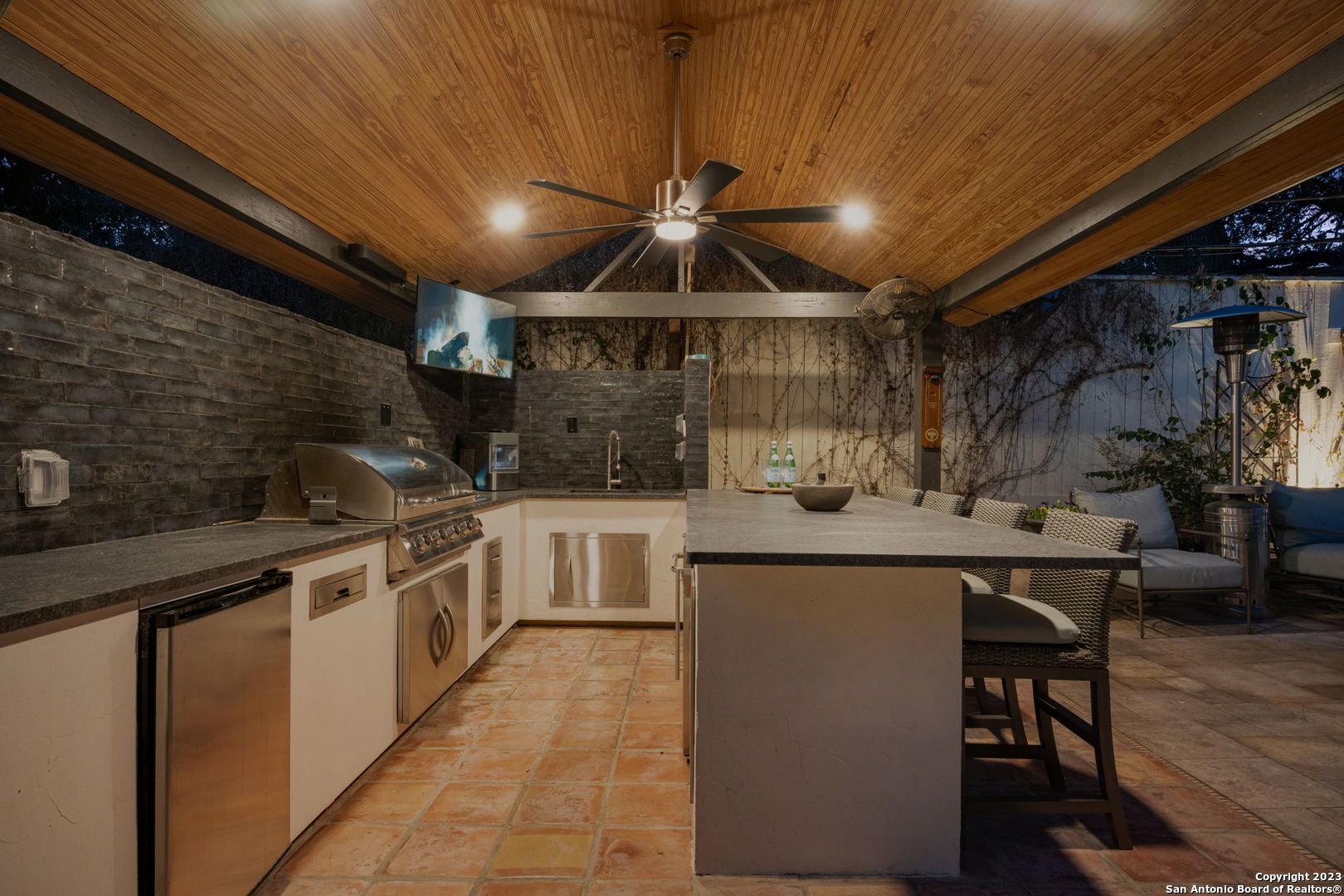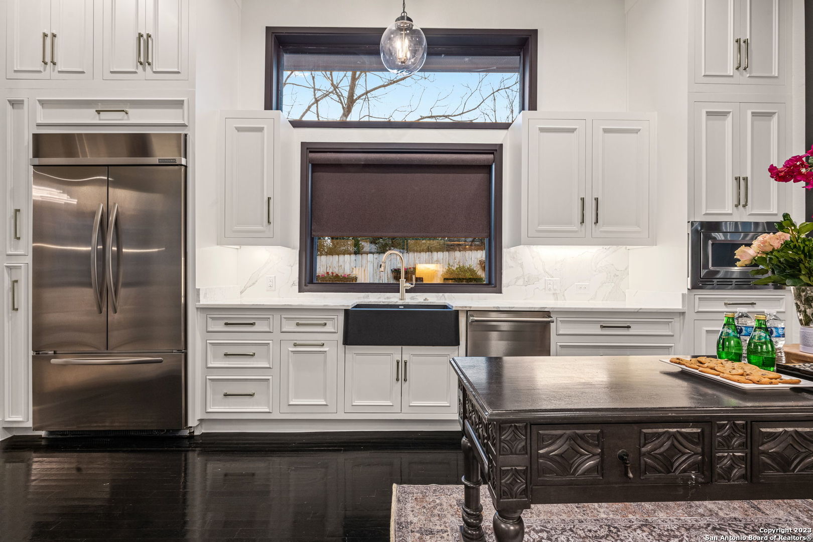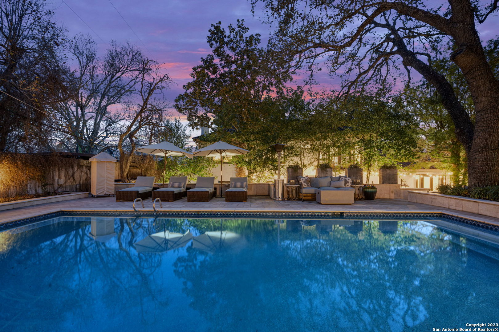Furnished listing in AHISD. Highly qualified tenants only. Pets will be considered case by case. Terms will be set at the owners discretion. Pool and lawn maintenance included. Experience luxury living in this stunning custom-built home, boasting exceptional architectural details, situated on a sprawling and secluded oversized lot in prestigious Terrell Hills. The downstairs primary suite is a lavish retreat, featuring dual baths with multiple closets, high design, a sitting area, and a cozy fireplace. The top-of-the-line custom kitchen is a chef's dream, complete with a butler's pantry with wet bar, and a gourmet gas stove with double ovens. Calcutta gold marble countertops and a