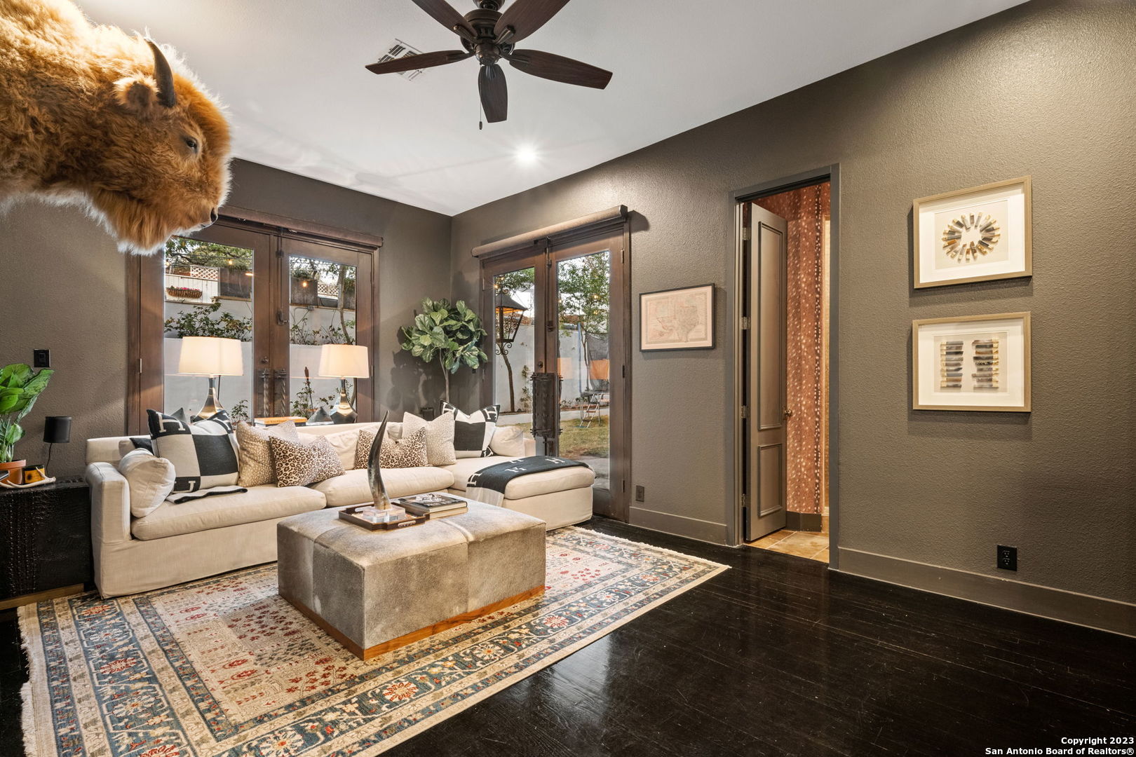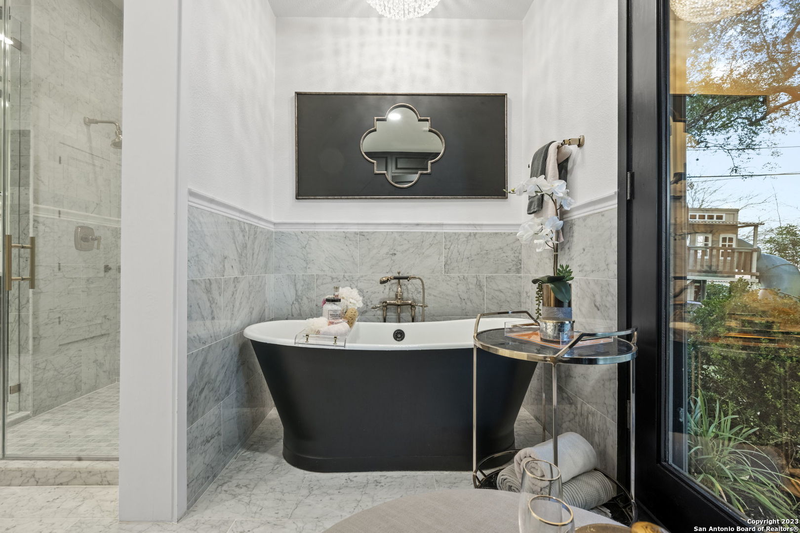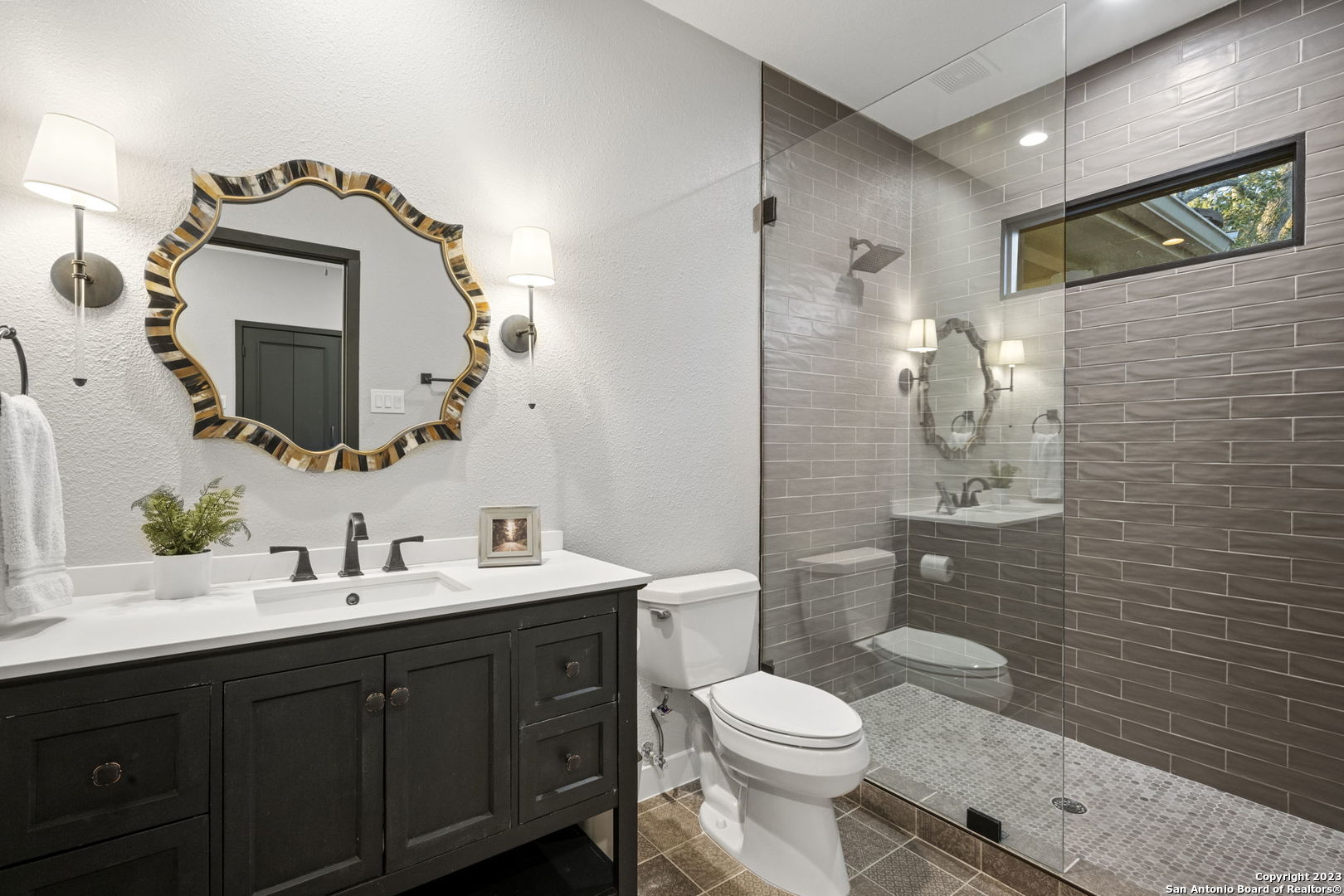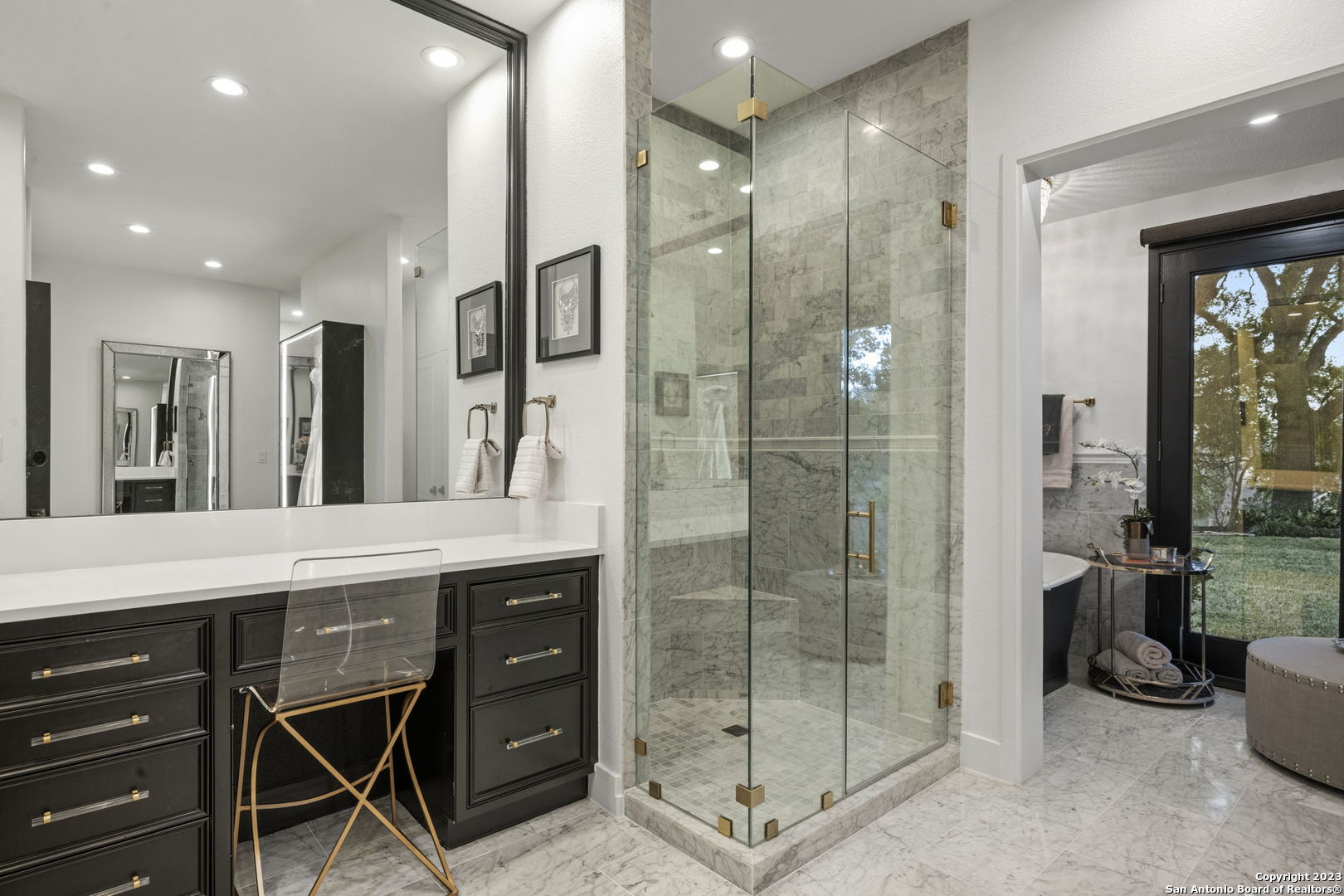 Furnished listing in AHISD. Highly qualified tenants only. Pets will be considered case by case. Terms will be set at the owners discretion. Pool and lawn maintenance included. Experience luxury living in this stunning custom-built home, boasting exceptional architectural details, situated on a sprawling and secluded oversized lot in prestigious Terrell Hills. The downstairs primary suite is a lavish retreat, featuring dual baths with multiple closets, high design, a sitting area, and a cozy fireplace. The top-of-the-line custom kitchen is a chef's dream, complete with a butler's pantry with wet bar, and a gourmet gas stove with double ovens. Calcutta gold marble countertops and a