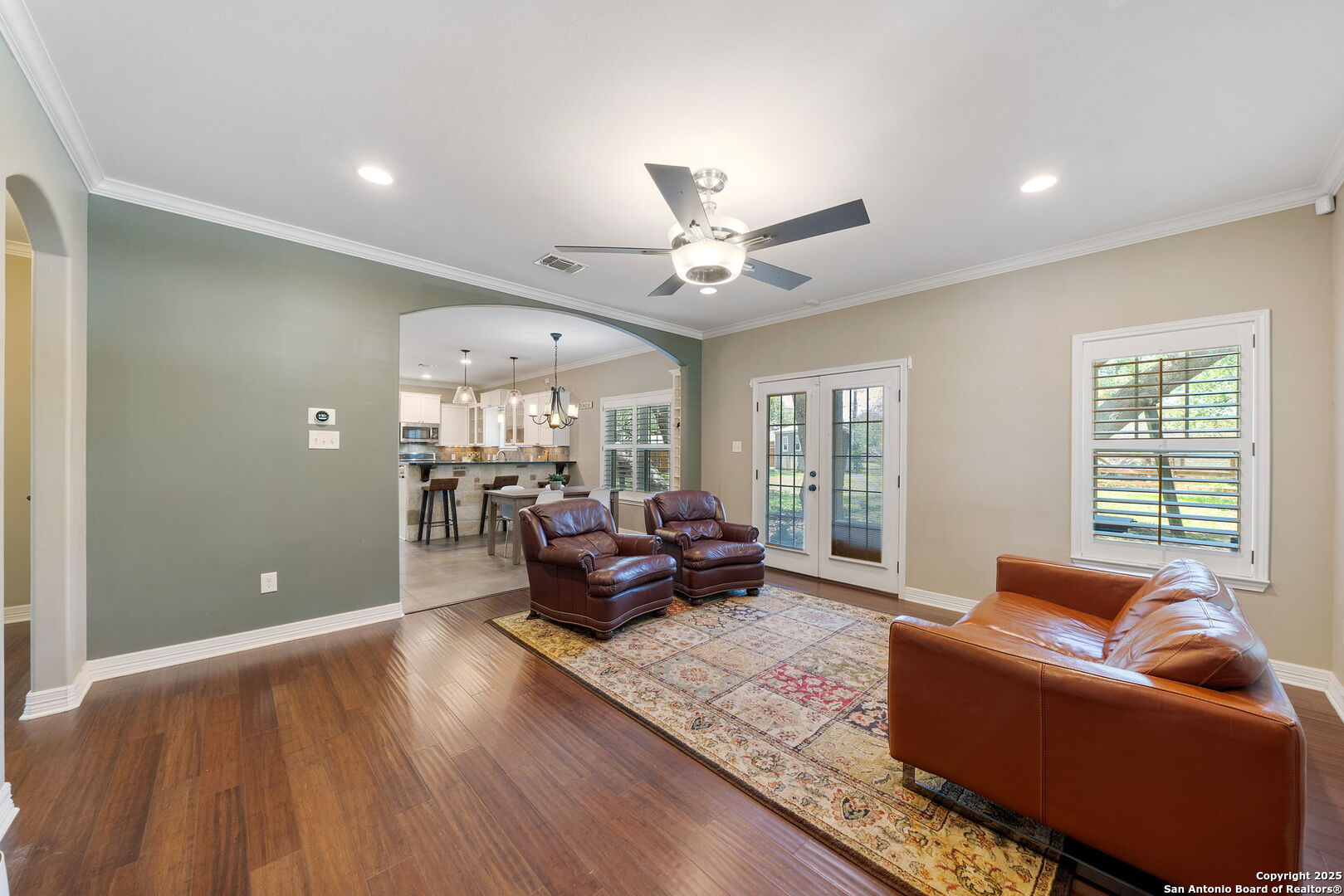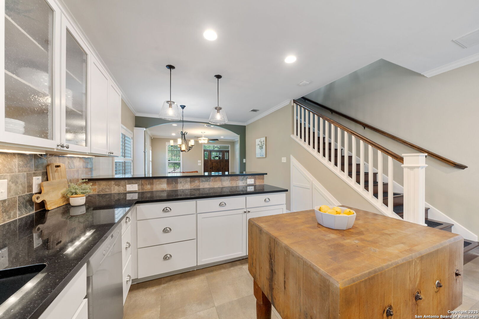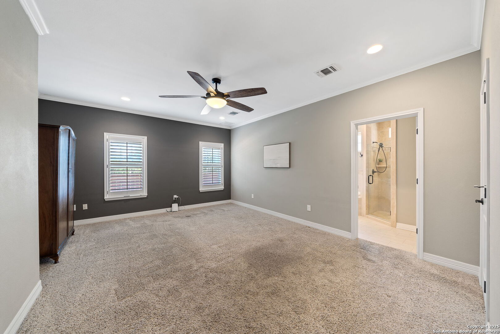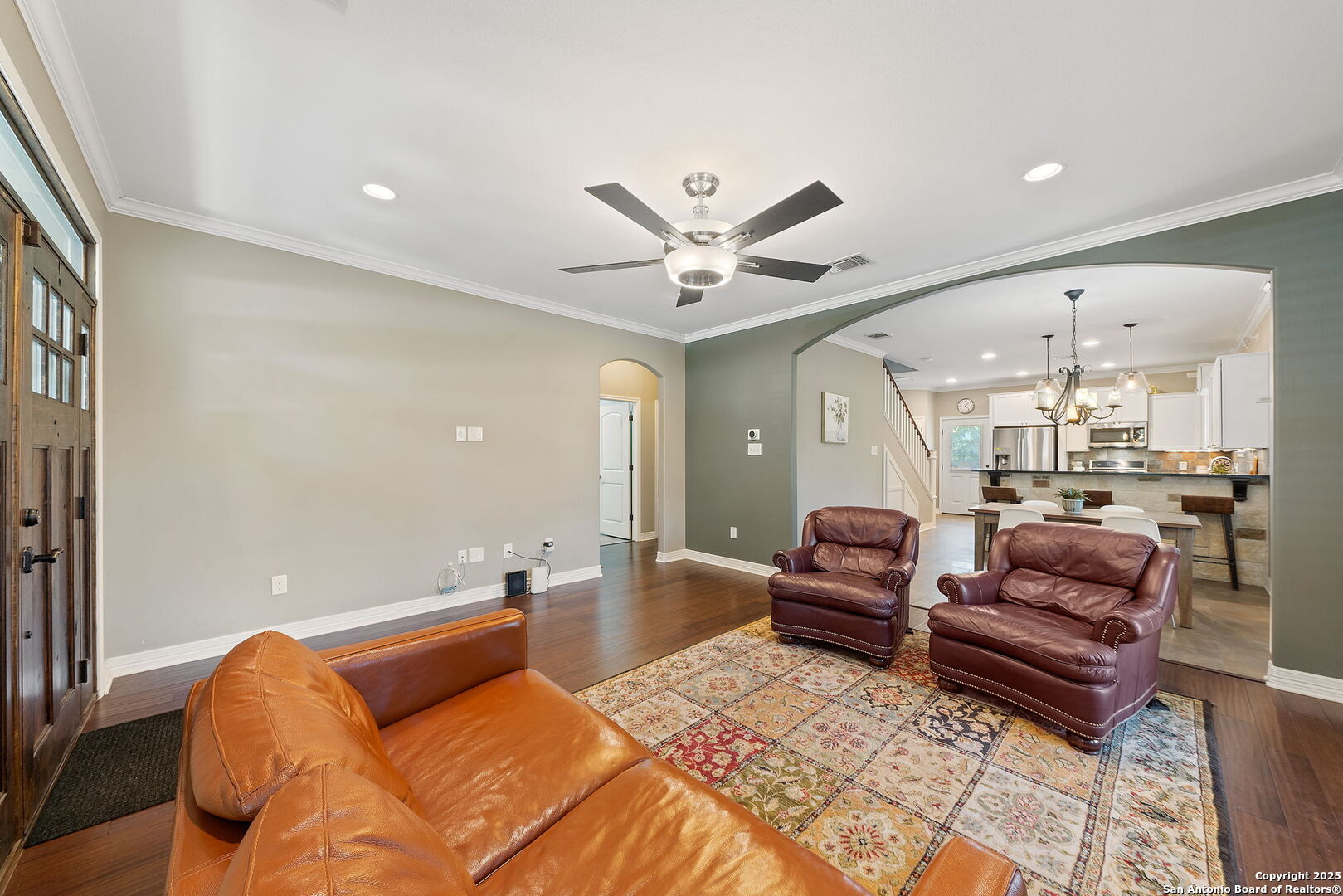 OPEN HOUSE Saturday 6/21 1-4pm!!! Nestled on a stunning, oversized lot with mature trees, this exceptional 4-bedroom, 3.5-bath home offers beauty, space, and functionality in a highly sought-after Northside ISD neighborhood. The open floor plan is perfect for entertaining, with a beautifully updated island kitchen featuring stainless steel appliances and gorgeous granite countertops. The downstairs primary suite is a true retreat, boasting a spa-like bath with a separate garden tub, standing shower, and an expansive double vanity with ample counter space. A second primary suite upstairs adds flexibility for multi-generational living. Secondary bedrooms are generously sized, and the secondary bath also features a double vanity for added convenience. Enjoy serene outdoor spaces, abundant natural light, and the perfect blend of comfort and elegance. Additional highlights include a durable metal roof and a whole-home generator for peace of mind, not to mention 9 places to park vehicles. This rare gem offers both style and practicality- Don't miss this rare opportunity-schedule your showing today!
