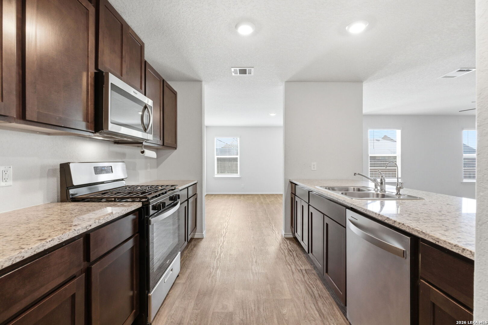 Welcome to this spacious and well maintained two story home that offers comfort, functionality, and plenty of room to spread out. The open concept main living area features durable wood look flooring and flows seamlessly into a modern kitchen with granite countertops, stainless steel appliances, generous cabinet space, and a large center island that is perfect for cooking and entertaining. Upstairs you will find a large second living area that can serve as a game room, media space, or home office. The oversized primary suite provides a relaxing retreat with a spacious bathroom and ample closet space, while the additional bedrooms offer flexibility for family, guests, or work from home needs. Step outside to a private backyard with a covered patio that is ideal for relaxing evenings, weekend barbecues, or enjoying time outdoors. The yard provides plenty of space for play, gardening, or simply unwinding after a long day. Conveniently located near shopping, dining, and major commuter routes, this home combines space, comfort, and accessibility, making it an excellent place to call home.