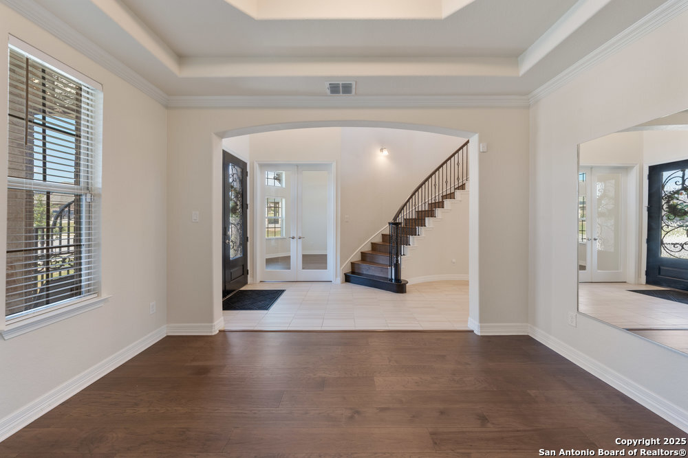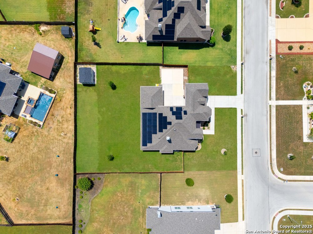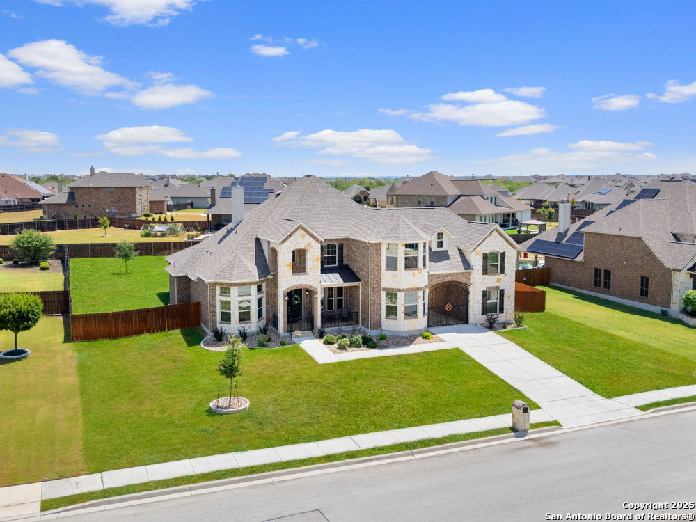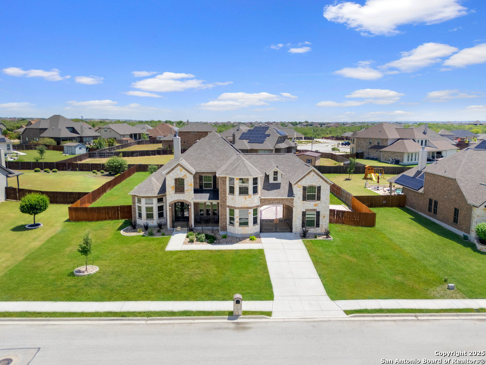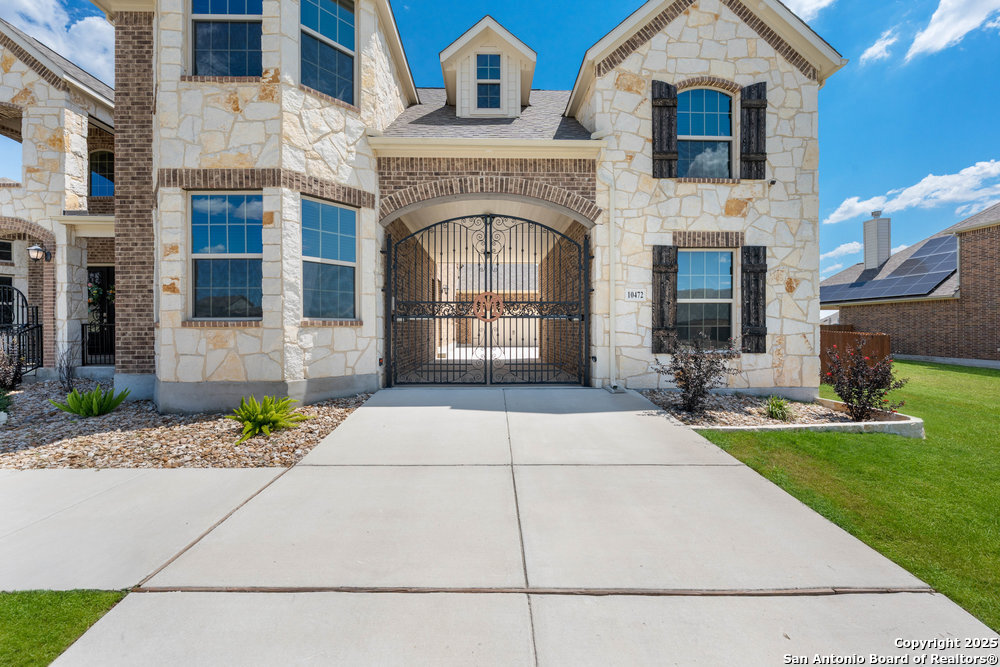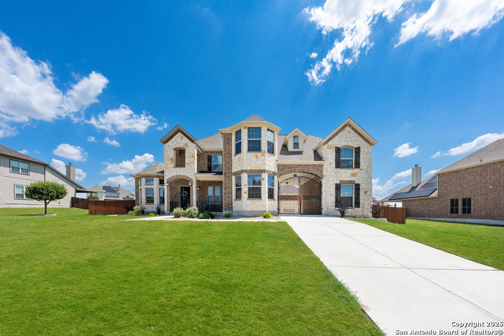 Welcome to "The Castle". Step into elegance with this stunning stone and brick estate that looks like it was pulled straight from a fairytale. Featuring turret-style architecture, a grand gated entry, and timeless design, this home perfectly combines the charm of a castle with the luxuries of modern living. The Castle is a one of a kind home equipped with its very own private theater, office space, private motor port, and paid off solar panels, making it one of the most efficient, sustainable and all inclusive estates in the neighborhood. You never need to leave home! Inside, discover expansive living spaces filled with natural light, soaring ceilings, and a seamless blend of sophistication and comfort. This home is conveniently located near Randolph AFB, and less than 10 minutes from all grocery, retail, and entertainment.