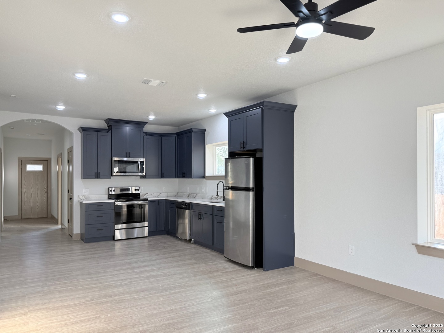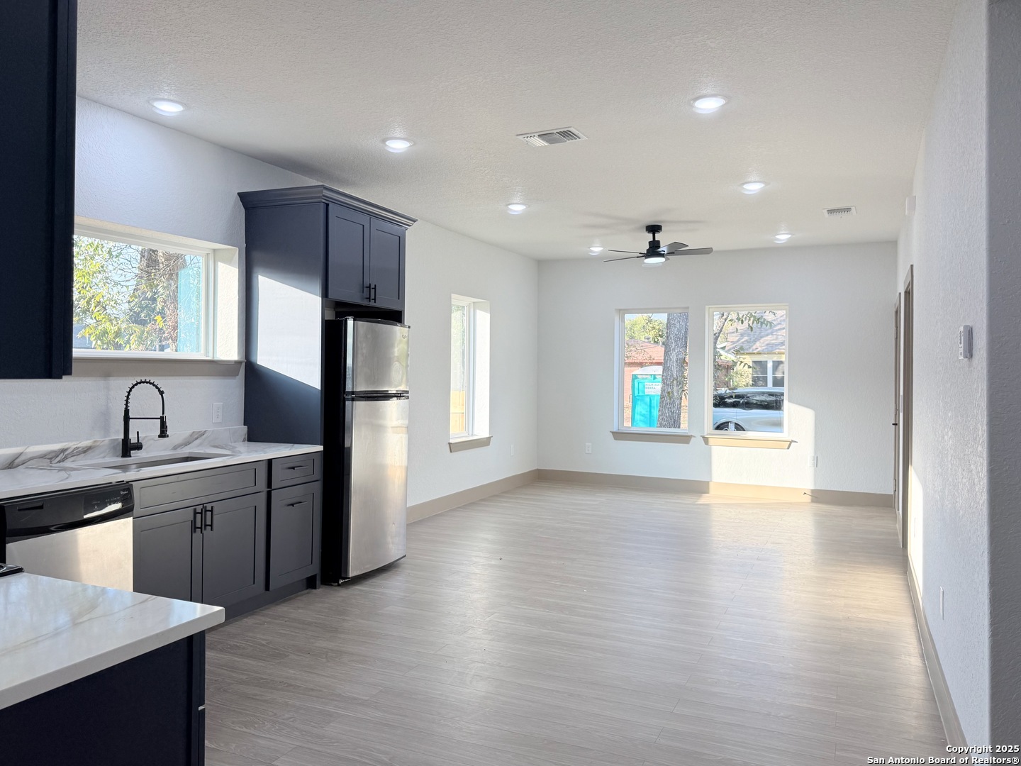 COMPLETELY REBUILT & PERMITTED, LIKE-NEW Home Near Downtown San Antonio! This home has been fully renovated from the ground up with all work properly permitted and up to code. Every major system is brand new, including roof, HVAC, electrical, plumbing, and drywall, offering true peace of mind. Inside features new flooring, modern lighting and plumbing fixtures, brand-new cabinets, and beautifully updated bathrooms. The refrigerator, washer, and dryer are included, making this home move-in ready. Located on a spacious corner lot with a large fenced yard, and just minutes from Downtown, the Alamodone, The Pearl, and major highways, this home delivers modern living and prime location.