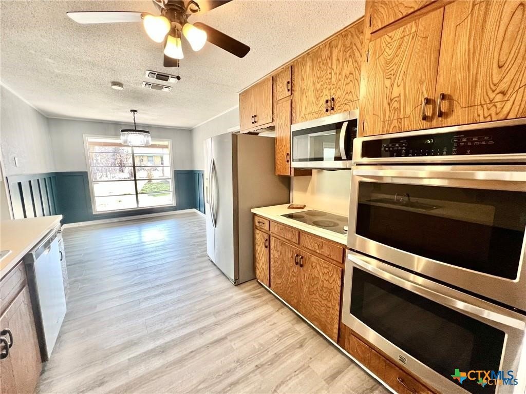 Welcome to this charming 3-bedroom, 2-bath one-story home! The cozy entry features Arabesque tile, leading to spacious living and dining areas filled with natural light. The kitchen offers a double oven, electric cooktop, and opens to a large living room with a wood-burning fireplace. All bedrooms include walk-in closets, and both bathrooms showcase stylish tile work. The spacious backyard features a versatile shed—ideal for an office, playroom, or storage. Enjoy nearby Walker Park with a pool, tennis courts, and playground.