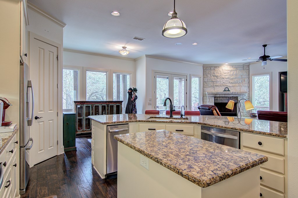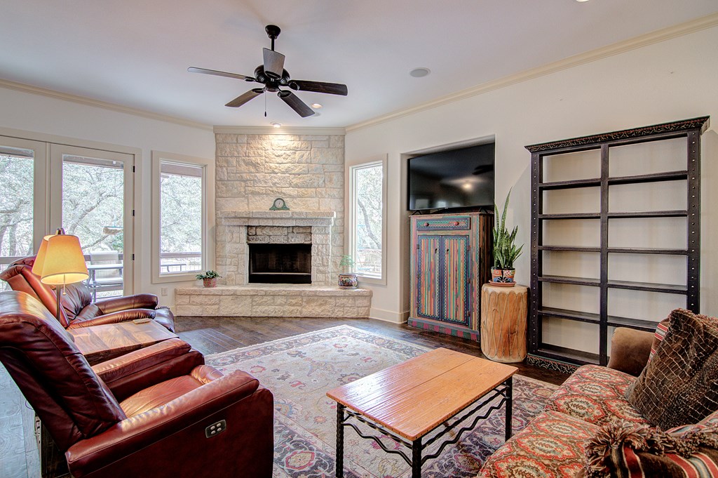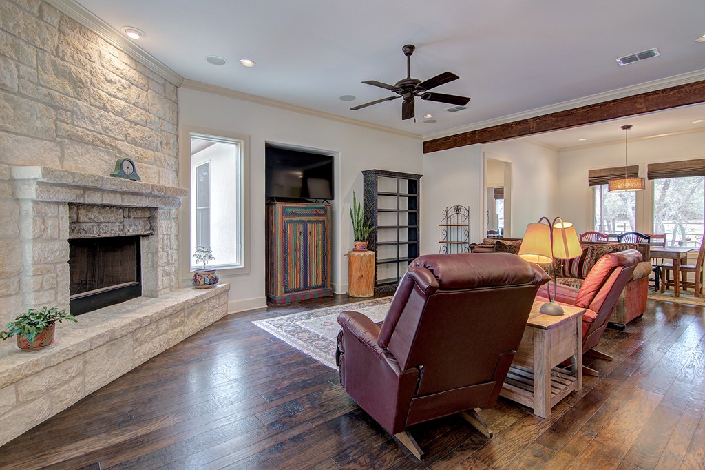 Fantastic, custom built 3/2/2 home in private cul du sac w/ limestone exterior, on two wooded acres in desirable Cielo Springs subdivision. Elegantly designed wood burning FP, Gorgeous hardwood floors. Interior attic staircase leads to extra large room, could be finished out for office or fourth bedroom. Extended kitchen appliance warranties, hot water recirculating system provides on demand hot water throughout home. New roof, gutters & garage door, 2020. Complete RV hookup & cleanout. 8 x 12 Tuff Shed conveys. Excellent location near town, easily commutable to SA & surrounding towns.