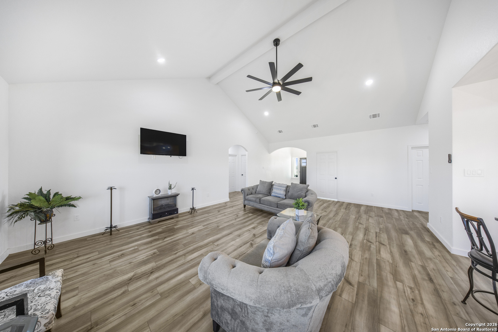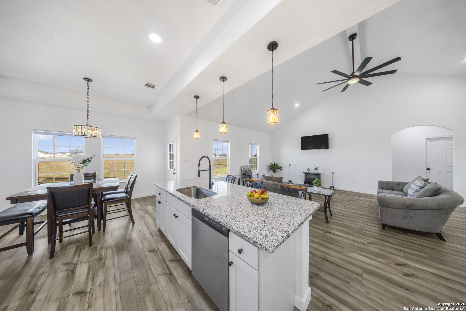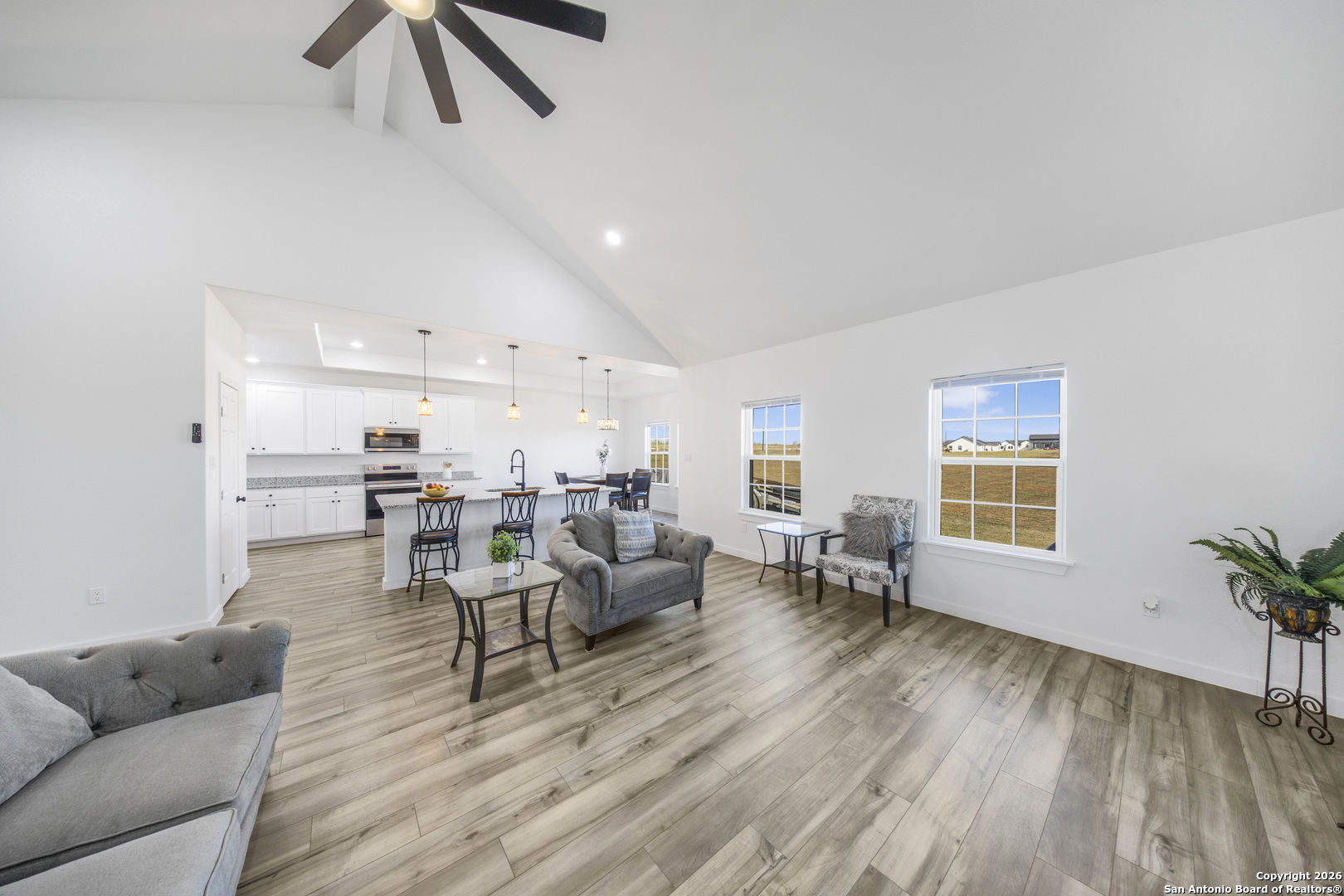 eautifully designed 4-bedroom, 2.5-bath home situated on a spacious 1.09-acre lot with no HOA, offering privacy, freedom, and modern living. This home features an open floor plan ideal for both everyday living and entertaining, with durable vinyl plank flooring throughout the main areas. The living room is highlighted by vaulted ceilings that create an open, airy feel, while the primary bedroom also features vaulted ceilings, adding to the sense of space and comfort. Generously sized bedrooms, functional layout, and ample outdoor space make this property a rare find. Enjoy the flexibility of acreage living with no HOA restrictions and room to customize to your needs. A must-see home with space inside and out.