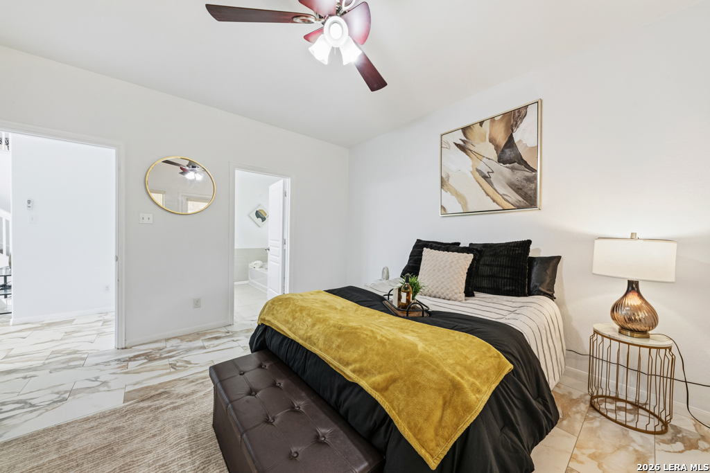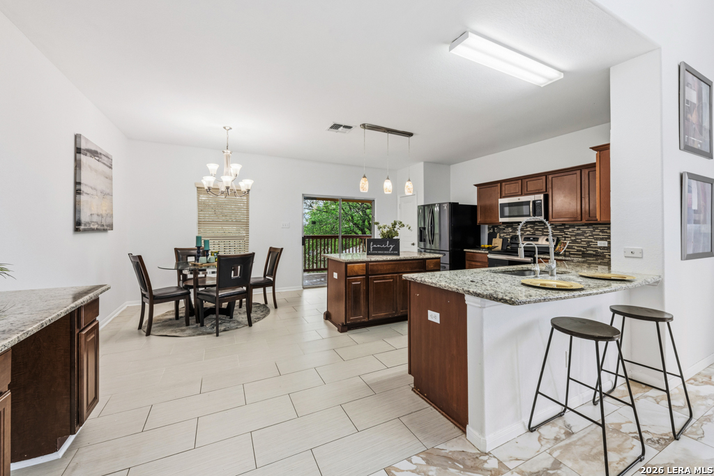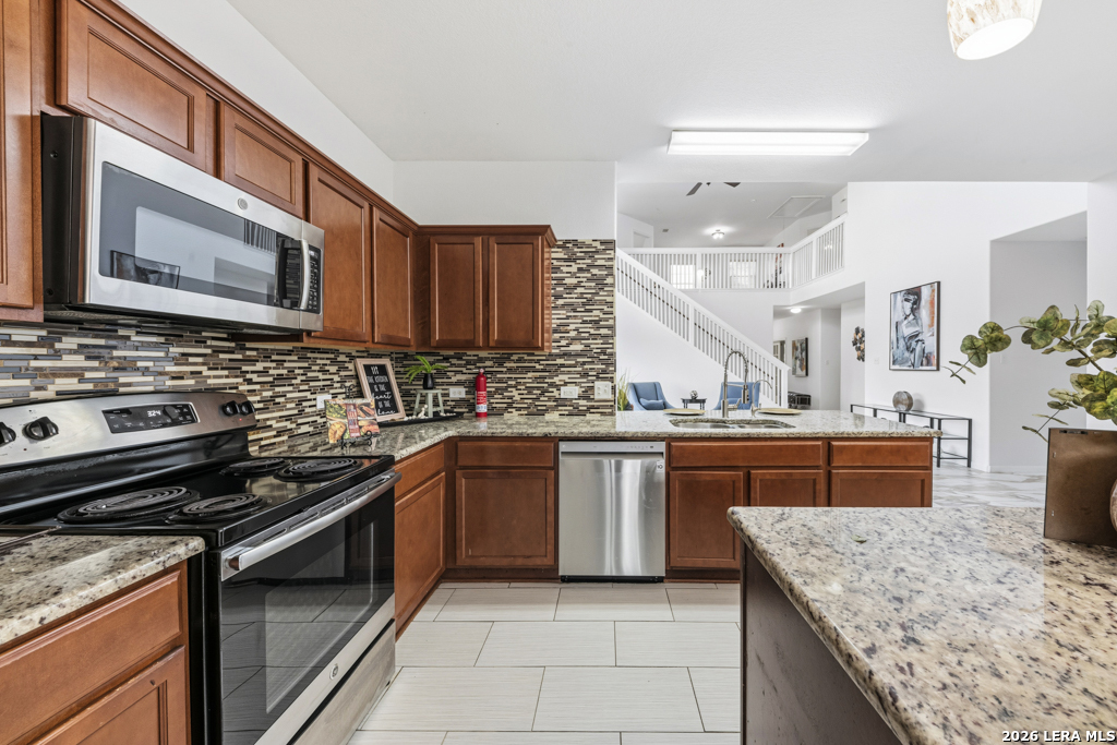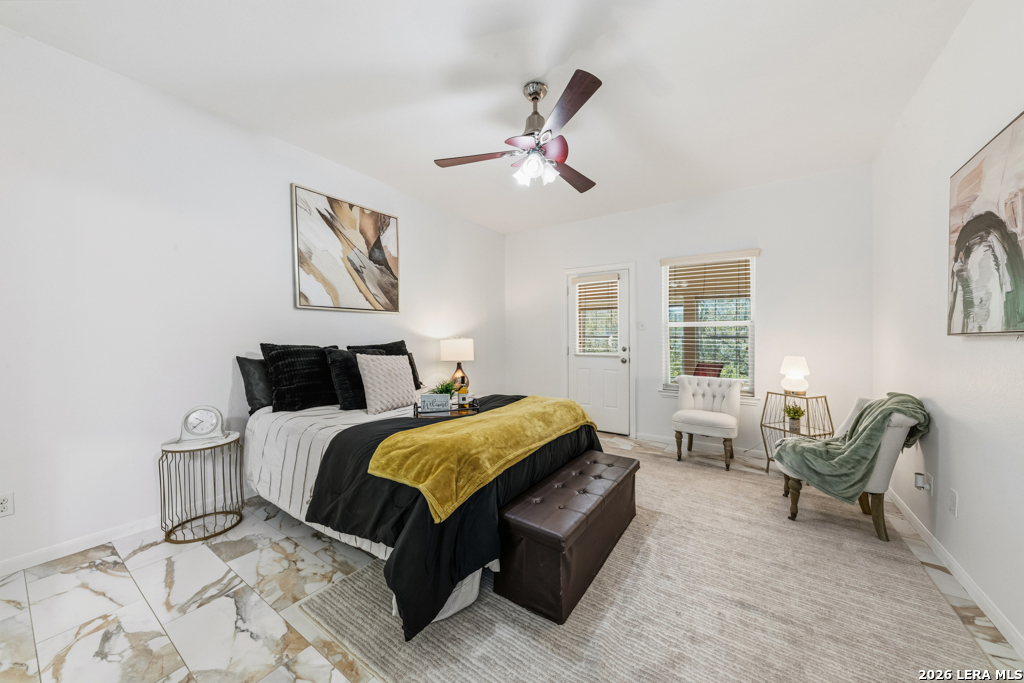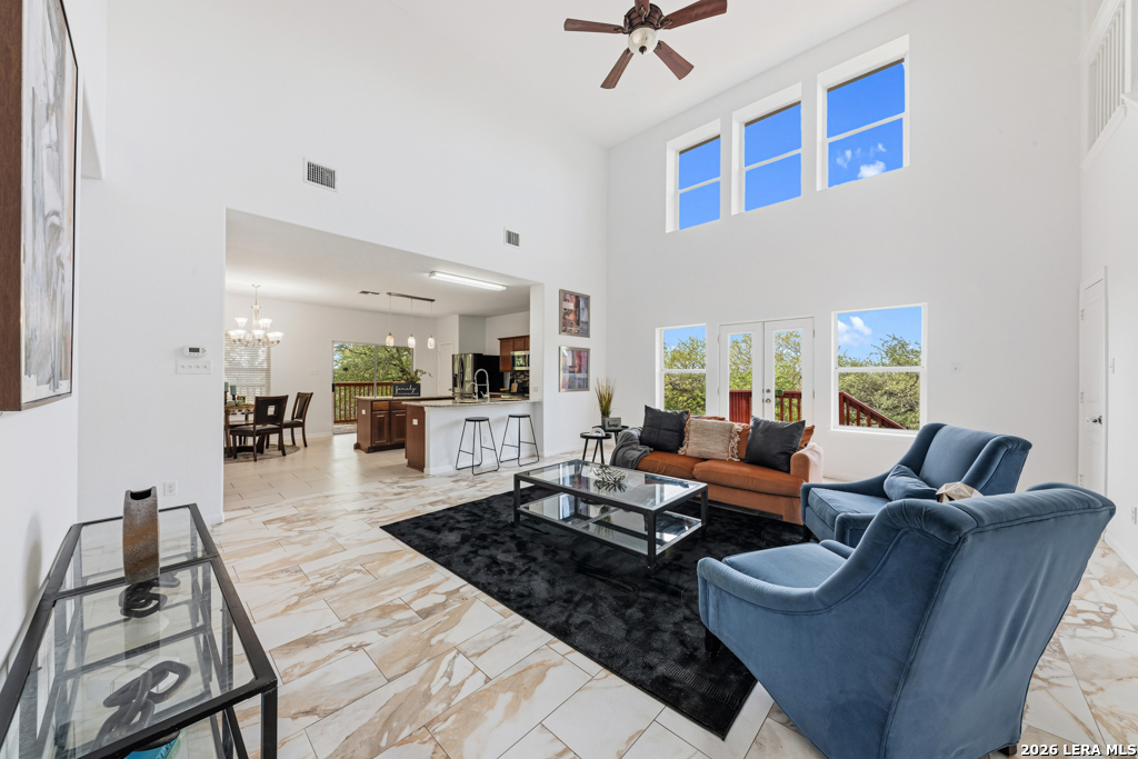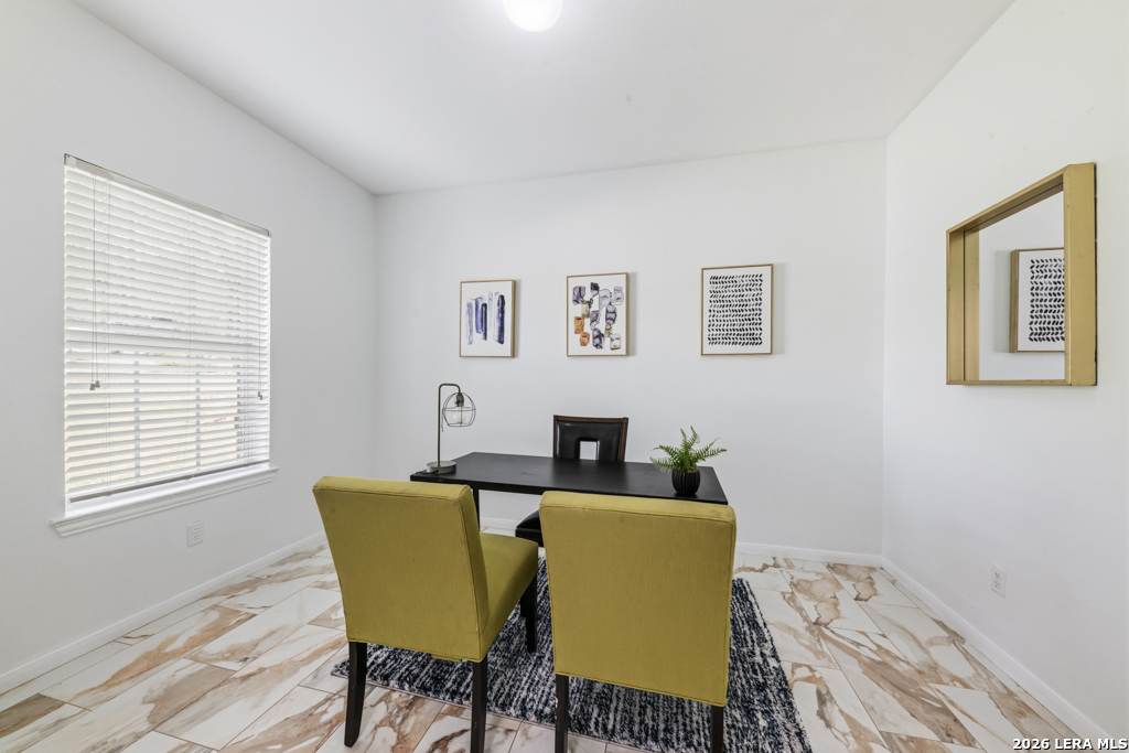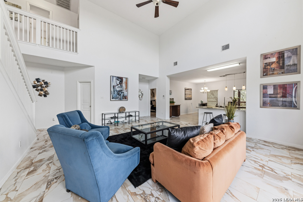 Welcome to this beautifully maintained two-story home nestled in a desirable community in San Marcos, TX. This spacious residence features an open-concept floor plan with soaring ceilings and abundant natural light, creating an inviting and airy atmosphere throughout. The main living area seamlessly flows into a well-appointed kitchen complete with granite countertops, ample cabinetry, and a large center island-perfect for entertaining and everyday living. A dedicated dining area overlooks the backyard, offering a peaceful setting for meals and gatherings. The primary suite provides a comfortable retreat with generous space, while additional bedrooms offer flexibility for guests, home office, or growing households. Enjoy the convenience of multiple living areas, including an upstairs loft overlooking the main floor. Step outside to a covered balcony and extended deck, ideal for relaxing or hosting while taking in the natural surroundings and mature trees. Located just minutes from shopping, dining, and entertainment, and with easy access to major highways including I-35, this home offers both comfort and convenience. Situated near Texas State University, making it an excellent option for a variety of lifestyles. Don't miss this opportunity to own a well-designed home in the heart of San Marcos!
