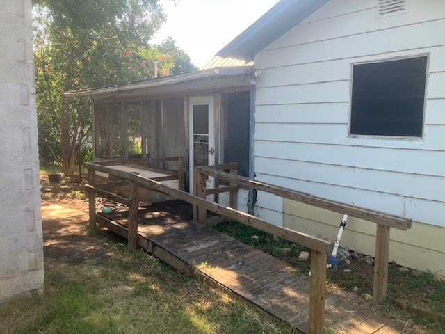 Presently a blank canvas ready for a personal renovation touch. This 2 bedrooms, 2 baths "fixer upper" is on a great corner lot. 2 huge liveoak shade trees add to the potential "end touch" that can make this older home blend in with the beautiful, early 1900s surrounding homes. Spacious living room and kitchen. Some recent plumbing and electrical upgrading. New thermostat control heating unit in living rooom. Screened back porch. Early 1900s concrete block tank house.. Wood storage building. Detached car shed. Deep corner lot with extra room to park an RV, boat, or trailers. Recently installed new window screens, smoke alarms, attic insulation, and attic fan.