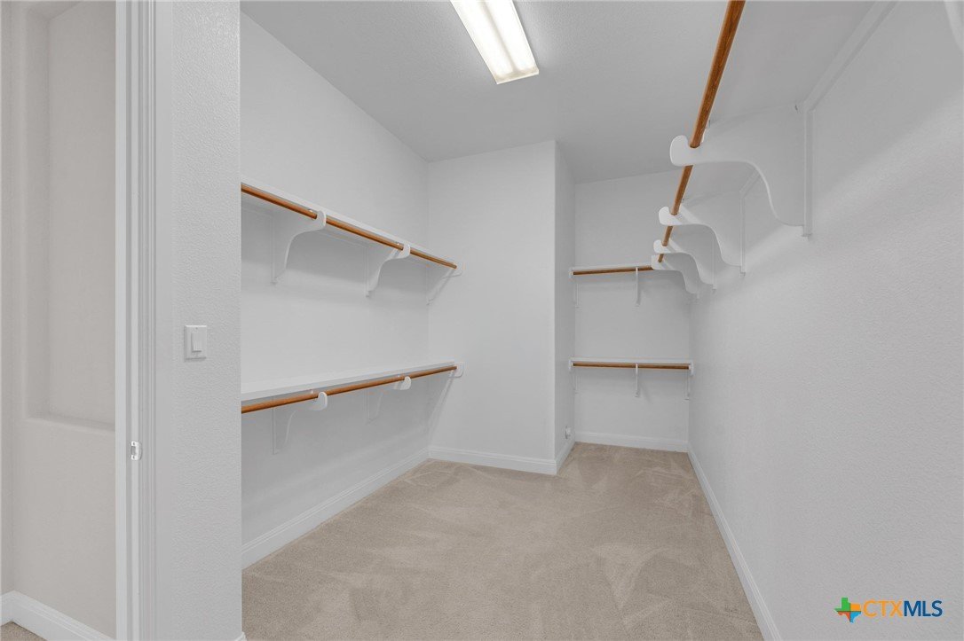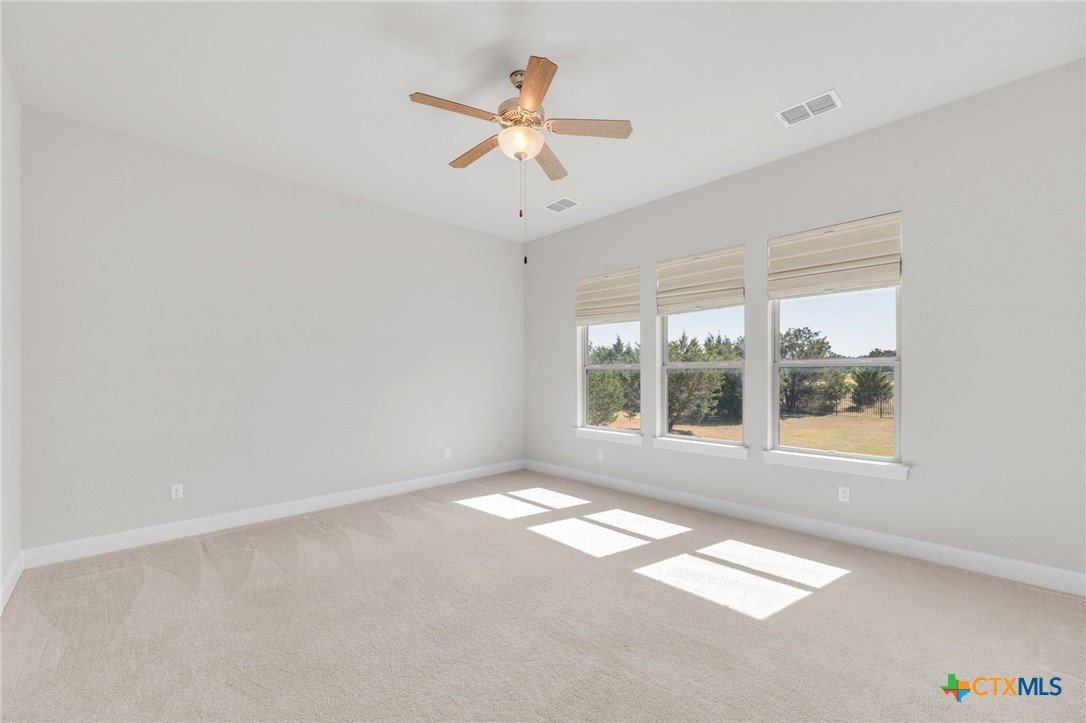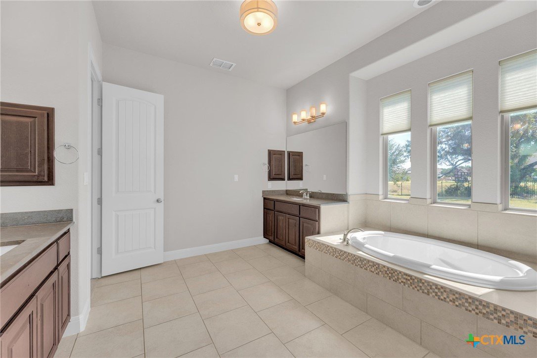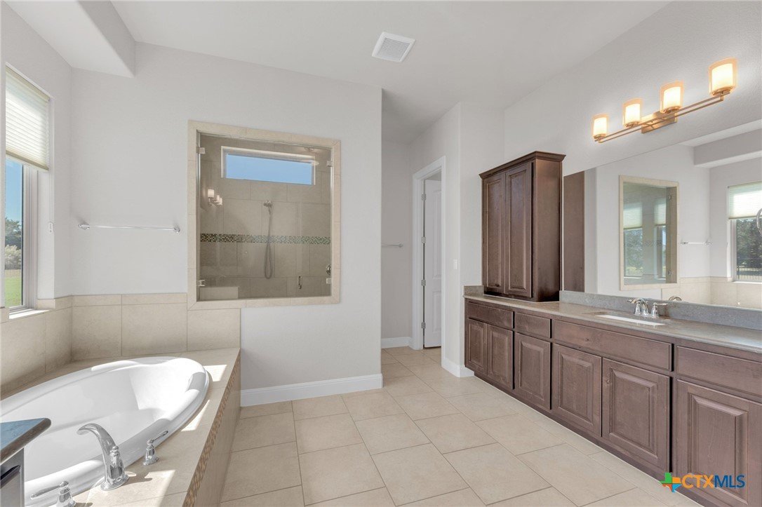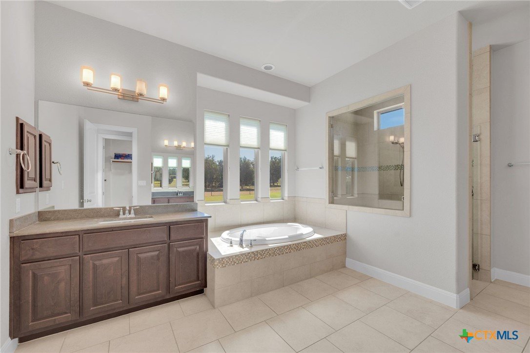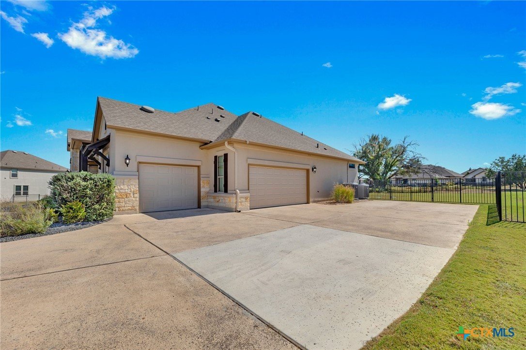 Immaculate Single-Story Home in Clearwater Ranch – Loaded with Upgrades! This beautiful 4-bedroom, 3.5-bath, 3-car garage home offers 3,364 sq. ft. of elegant one-story living on a wide cul-de-sac lot in sought-after Clearwater Ranch. Enjoy the peace of country living with community amenities including a park, walking trails, and picnic area—all within minutes of top-rated Liberty Hill schools. Inside, the open layout features a private study, spacious game room, and inviting family room with a cozy fireplace. The gourmet kitchen includes a large granite island, stainless steel appliances, double ovens, built-in microwave, and ample cabinetry—ideal for entertaining family and friends. The private primary suite offers a spa-like bath with walk-in shower and oversized closet. A secondary bedroom with full en-suite bath provides an ideal guest or multi-generational setup. Each bedroom features generous closet space, and the large utility room includes a built-in bench and hanging area. Extensive upgrades in 2022–2023 include: full perimeter fencing, upgraded landscaping, new exterior paint, 22 SEER Carrier Infinity HVAC system, all-new ducting and attic insulation, new water heater, insulated garage doors with MyQ openers, epoxy-coated garage flooring, overhead storage racks, portable generator hookup, Hunter Douglas window shades, new smoke detectors, and gutters on all sides. Two new septic pumps and a pool-ready backyard complete this move-in-ready home offering comfort, quality, and peace of mind in one of Liberty Hill’s most desirable acreage communities.