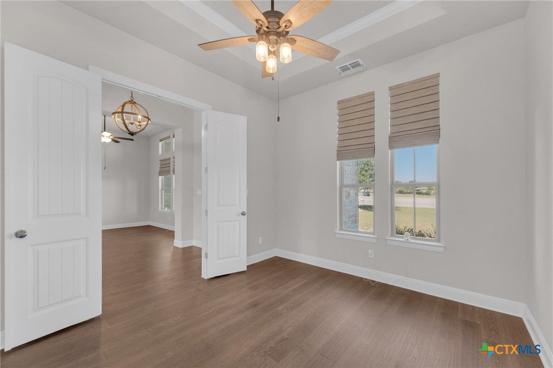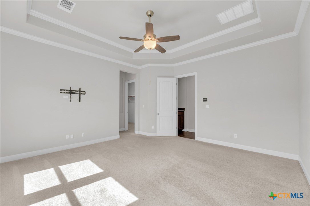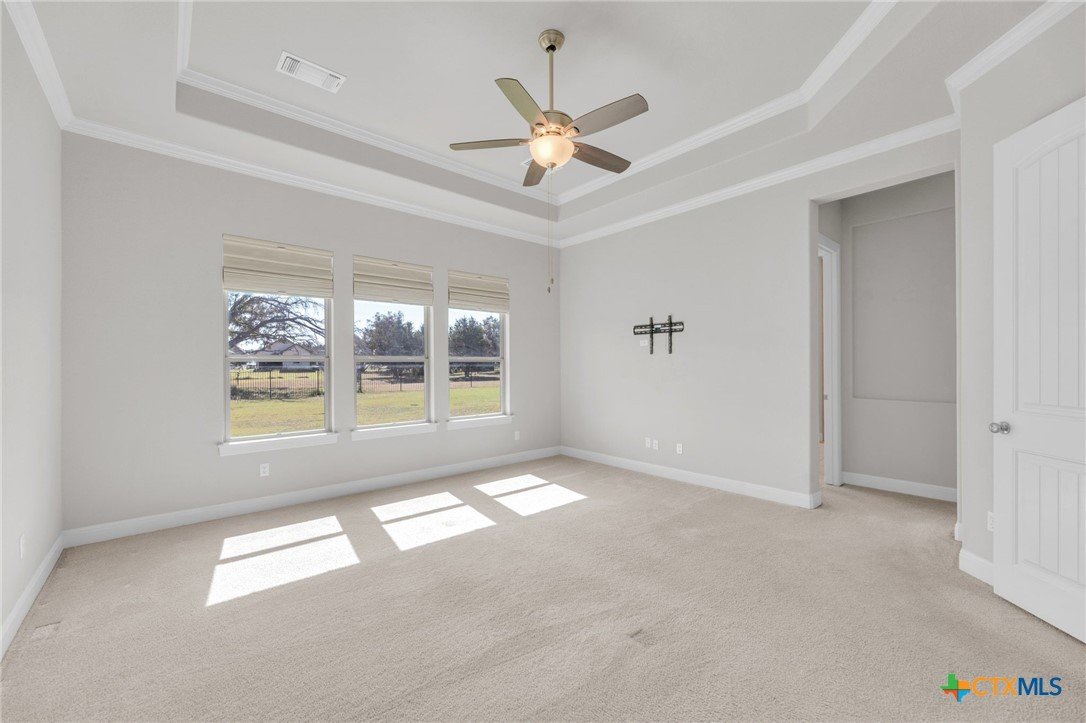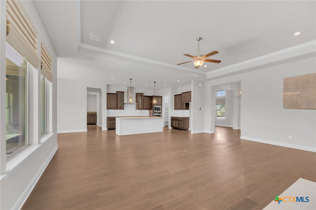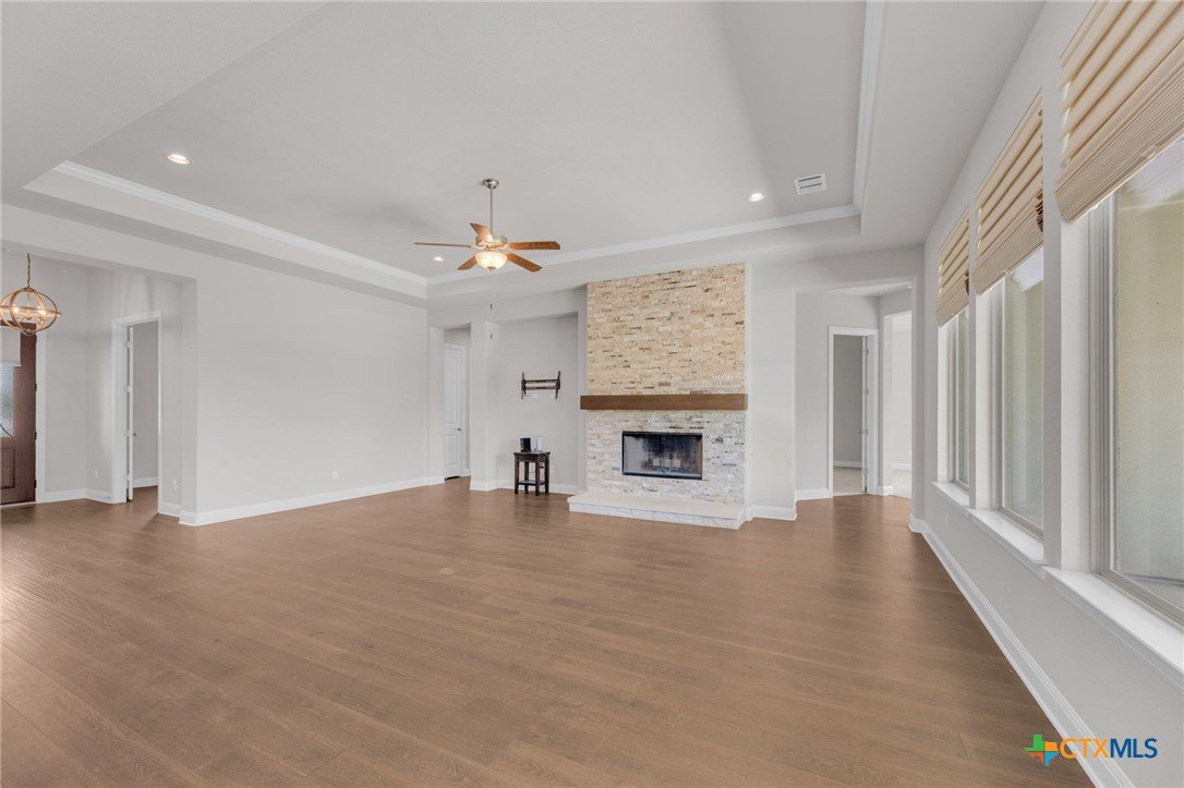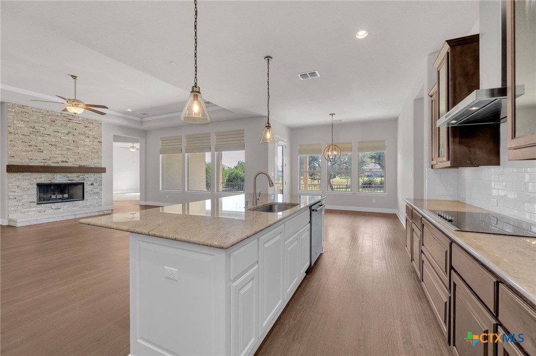 Immaculate Single-Story Home in Clearwater Ranch – Loaded with Upgrades! This beautiful 4-bedroom, 3.5-bath, 3-car garage home offers 3,364 sq. ft. of elegant one-story living on a wide cul-de-sac lot in sought-after Clearwater Ranch. Enjoy the peace of country living with community amenities including a park, walking trails, and picnic area—all within minutes of top-rated Liberty Hill schools. Inside, the open layout features a private study, spacious game room, and inviting family room with a cozy fireplace. The gourmet kitchen includes a large granite island, stainless steel appliances, double ovens, built-in microwave, and ample cabinetry—ideal for entertaining family and friends. The private primary suite offers a spa-like bath with walk-in shower and oversized closet. A secondary bedroom with full en-suite bath provides an ideal guest or multi-generational setup. Each bedroom features generous closet space, and the large utility room includes a built-in bench and hanging area. Extensive upgrades in 2022–2023 include: full perimeter fencing, upgraded landscaping, new exterior paint, 22 SEER Carrier Infinity HVAC system, all-new ducting and attic insulation, new water heater, insulated garage doors with MyQ openers, epoxy-coated garage flooring, overhead storage racks, portable generator hookup, Hunter Douglas window shades, new smoke detectors, and gutters on all sides. Two new septic pumps and a pool-ready backyard complete this move-in-ready home offering comfort, quality, and peace of mind in one of Liberty Hill’s most desirable acreage communities.