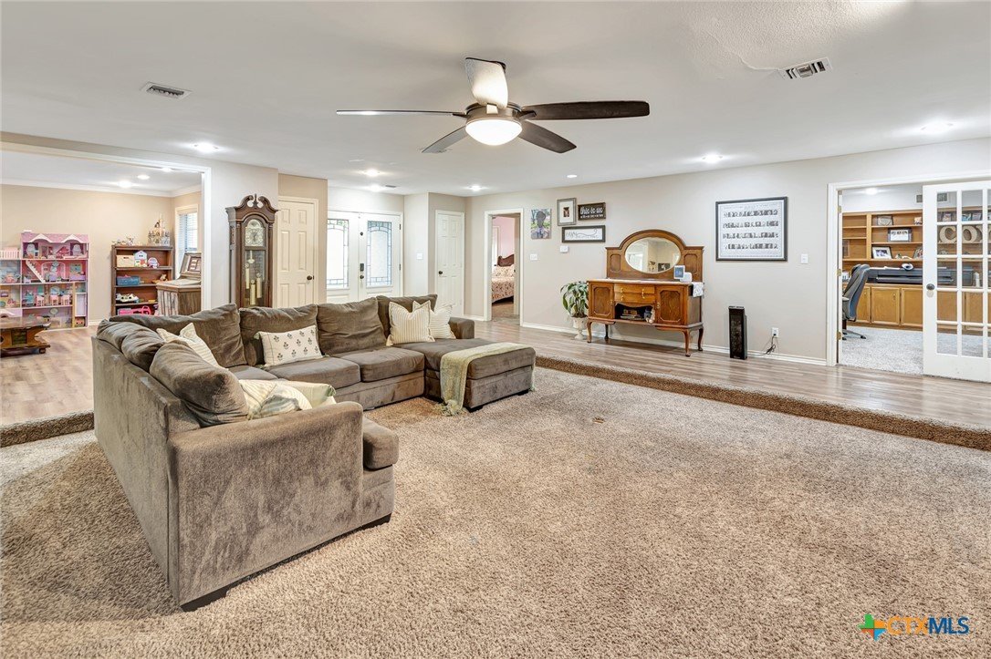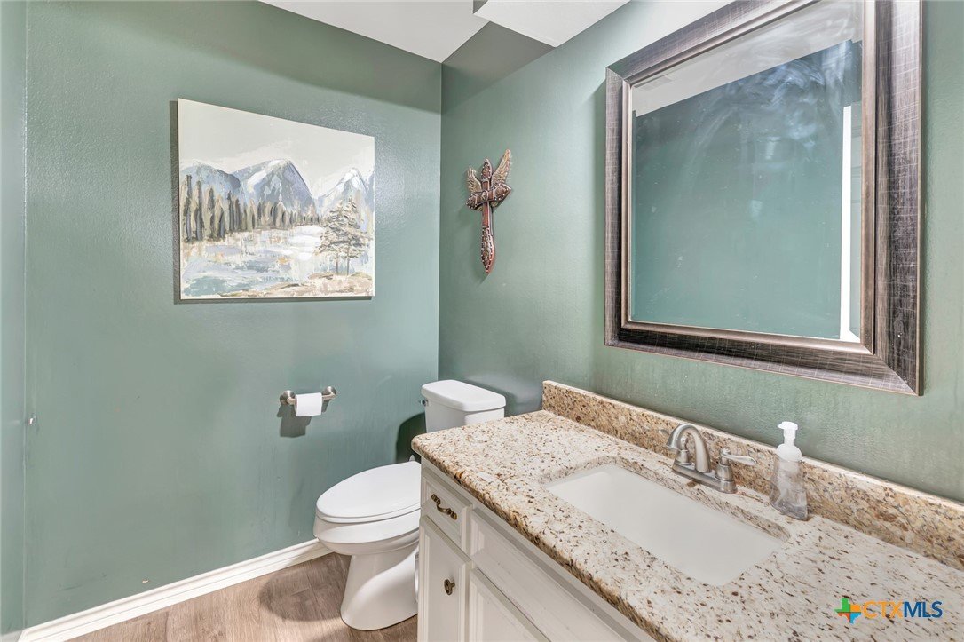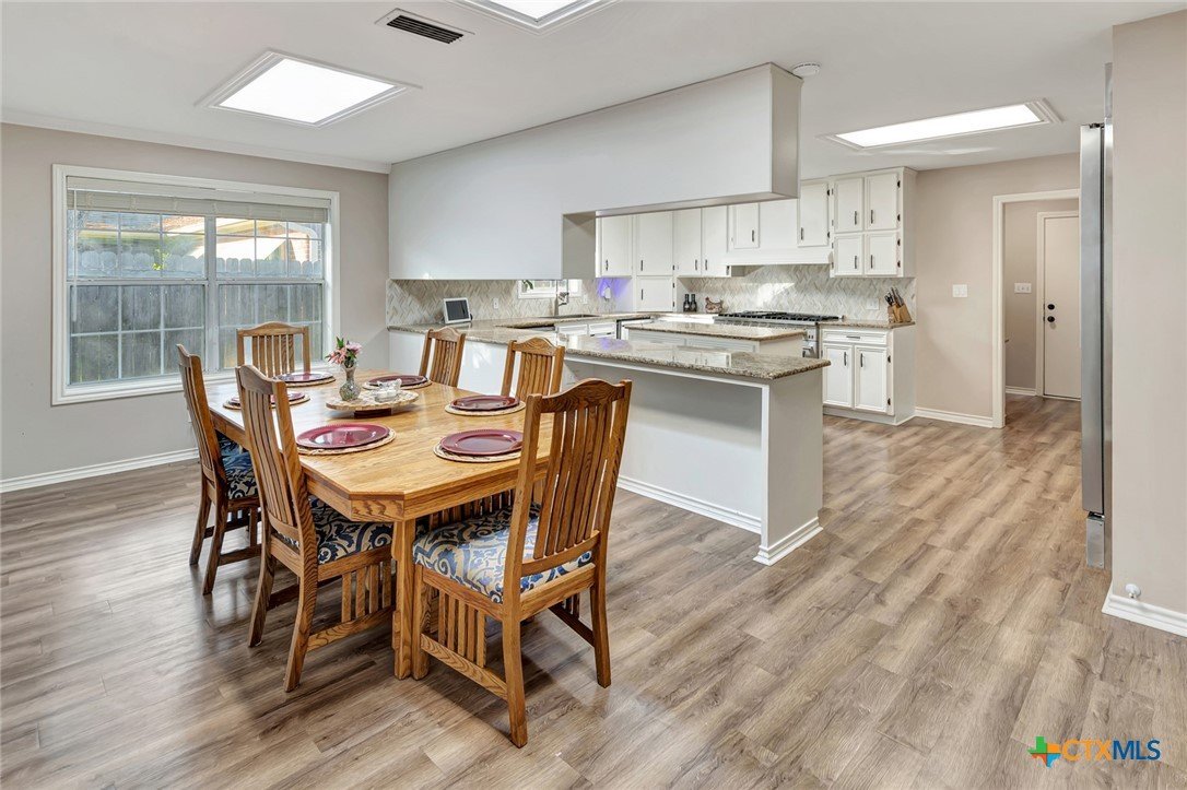 A lovely home located in the desirable neighborhood of Benchmark! Perfect family home with 4 bedrooms, 3.5 bathrooms, 1 spacious living and 2 dining/play room with a large kitchen and office. Recent upgrades to this home beginning with the kitchen includes (2) 60" Forno refrigerator/freezers, 2 dishwashers, 48" gas range. A beautiful walk in pantry with a pot filler. Laundry room large enough for 2 dryers and 2 washers, sink and desk area. A fabulous addition upstairs from just a loft area to a very large bedroom with closets and a nice bathroom or this space could be a 2nd master suite! Fenced tree shaded back yard with a large covered patio, kids play set, nice raised bed gardens. This home is centrally located with quick access to schools, shopping and entertainment! Call today it won't last long!