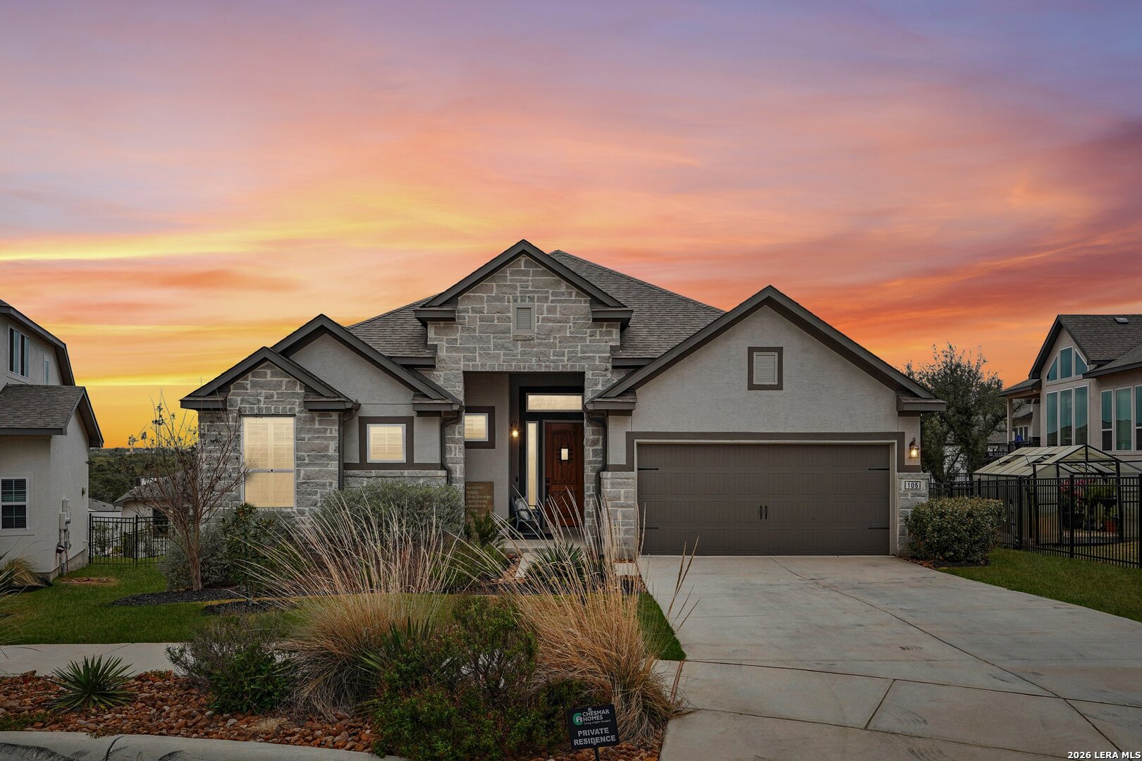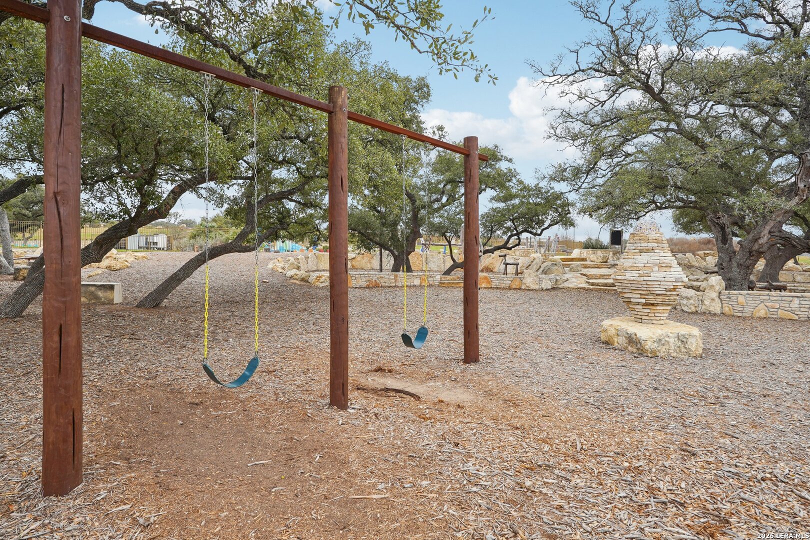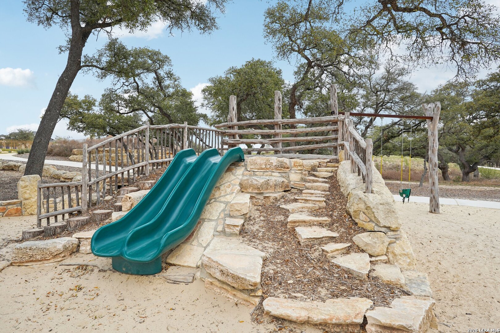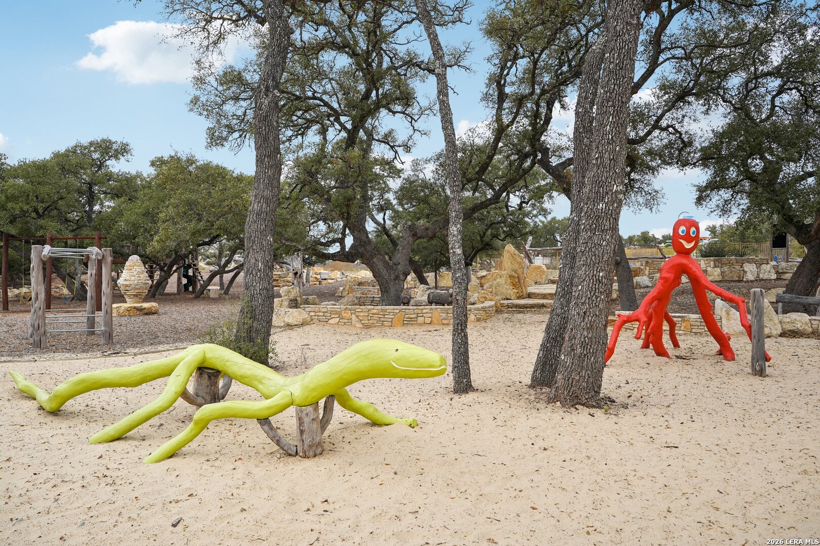 Located on an upgraded cul-de-sac lot in the desirable Esperanza community, this well-appointed one-story home offers 4 bedrooms, 2.5 bathrooms, and a spacious floor plan. The interior features ceramic wood-look flooring, custom wood beams in the foyer and living area, and a comfortable living room anchored by a stone fireplace. The island kitchen is designed with white cabinetry, stainless steel appliances, generous cabinet storage, and includes a built-in wine fridge. The primary suite has bay windows and a recessed ceiling. It includes a spacious closet and an en-suite bath with dual vanities and a large, tiled shower. Each bedroom is equipped with ceiling fans, and the laundry room includes additional cabinetry for extra storage. Step outside to a spacious backyard that's well suited for entertaining or relaxing, with pre-wiring already in place for a hot tub. Plantation shutters and other thoughtful upgrades add to the home's appeal. Residents enjoy access to Esperanza's resort-style amenities, including a pool with a lazy river, parks, and highly regarded Boerne ISD schools. The neighborhood offers a lively community atmosphere and convenient access to nearby state parks.