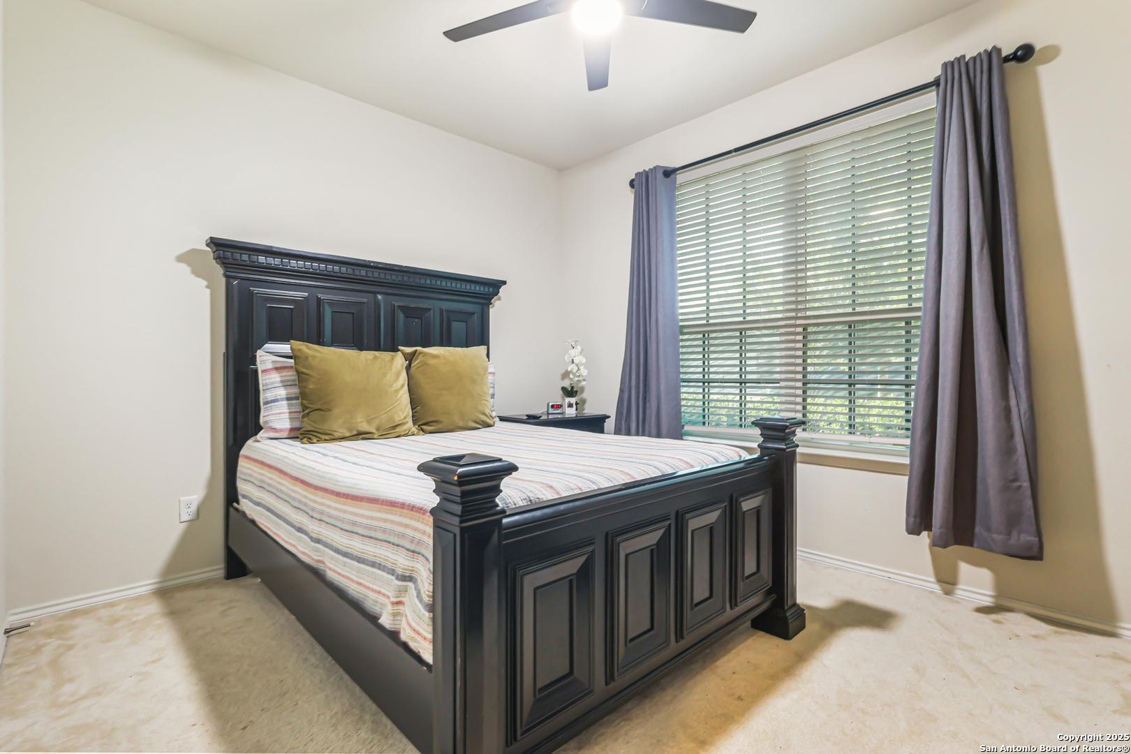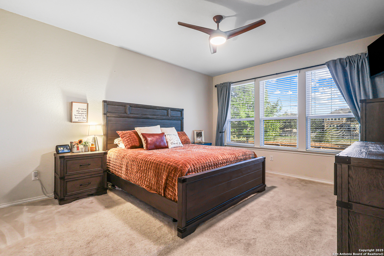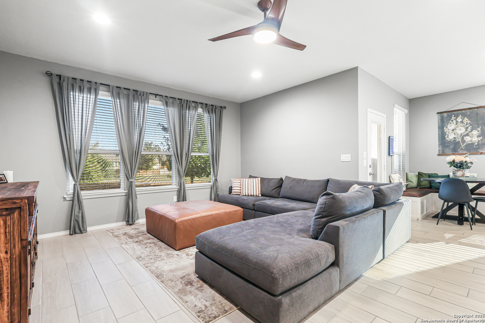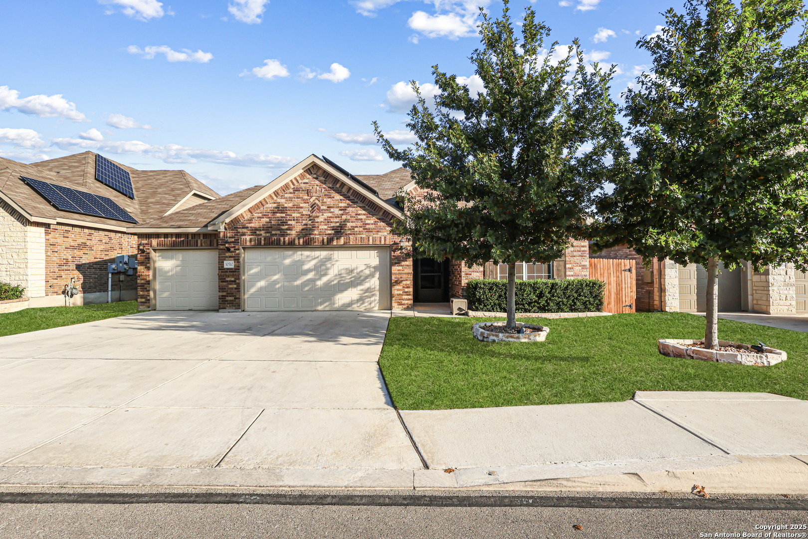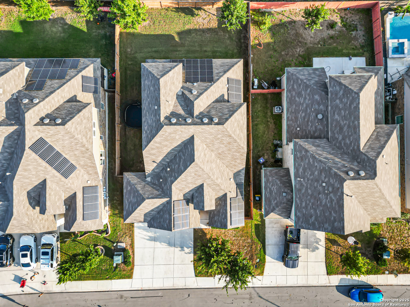 This exceptional four-bedroom, three-bathroom home offers just over 2,900 square feet of thoughtfully designed living space in one of Bexar Counties most desirable neighborhoods. Situated in a community that perfectly balances suburban tranquility with convenient access to the city's premier attractions, this residence presents an outstanding opportunity for discerning buyers seeking both comfort and investment value. The heart of this home features a spacious kitchen anchored by a large island that serves as both a culinary workspace and natural gathering point for meals and entertaining. The open layout flows seamlessly throughout the main living areas, creating an inviting atmosphere that accommodates both daily life and special occasions. Natural light fills the interior spaces, enhanced by solar screens installed on all windows that provide energy efficiency while maintaining the home's bright, welcoming ambiance. One of the most compelling aspects of this property is its commitment to sustainable living and modern technology. The home includes owned solar panels paired with a Tesla battery wall system, offering significant energy savings and environmental benefits. Additionally, an owned water softener and filtration system ensures clean, quality water throughout the residence. These features not only reduce monthly utility costs but also represent a forward-thinking approach to homeownership that many buyers increasingly value. The primary bedroom provides a private retreat with ample space and storage, while three additional bedrooms offer flexibility with one secondary room on main level in addition to the separate dining area and office/study with French doors. Perhaps the most remarkable feature of this property is its exceptional outdoor space and natural setting. The backyard directly borders a greenbelt, creating an unusual level of privacy and tranquility rarely found in suburban settings. This natural buffer provides a sense of seclusion while offering potential wildlife viewing opportunities right from your back windows. The property also features a covered patio area, perfect for outdoor dining and relaxation, along with an enclosed front entrance that adds both curb appeal and practical protection from the elements. The neighborhood itself is conveniently located near government canyon state park. This proximity to protected natural areas ensures that the peaceful, park-like atmosphere surrounding the home will be preserved for years to come. Residents enjoy easy access to hiking trails, nature programs, and outdoor recreation opportunities that make this area particularly attractive to families and outdoor enthusiasts. For entertainment and recreation, this location truly excels. World-class attractions including SeaWorld, Six Flags, La Cantera shopping and dining district, and downtown San Antonio are all easily accessible, offering endless options for family fun, cultural experiences, and urban amenities.