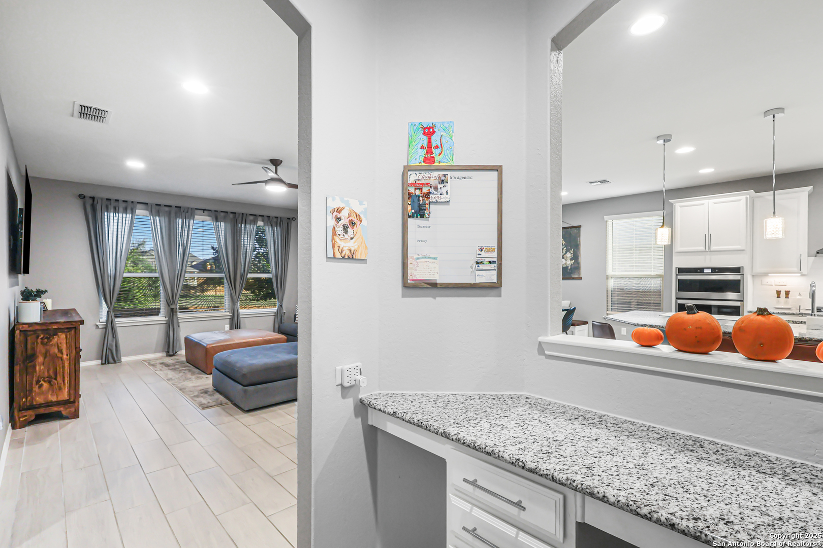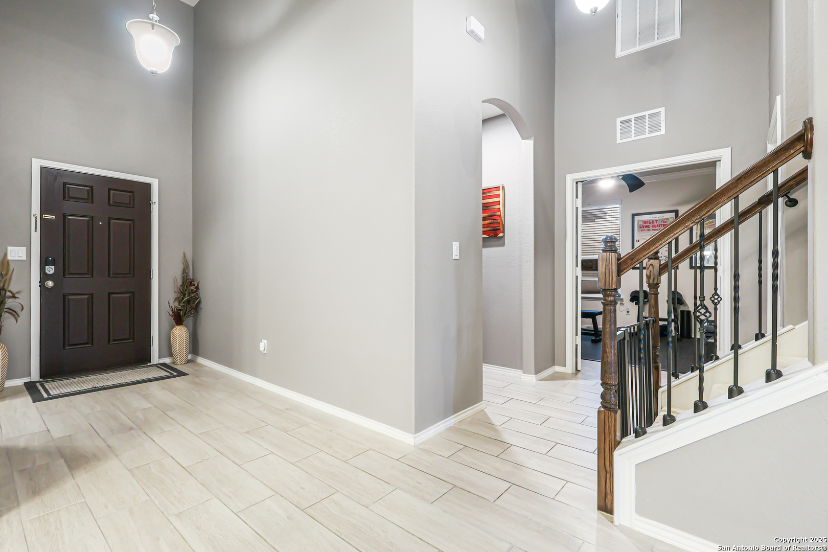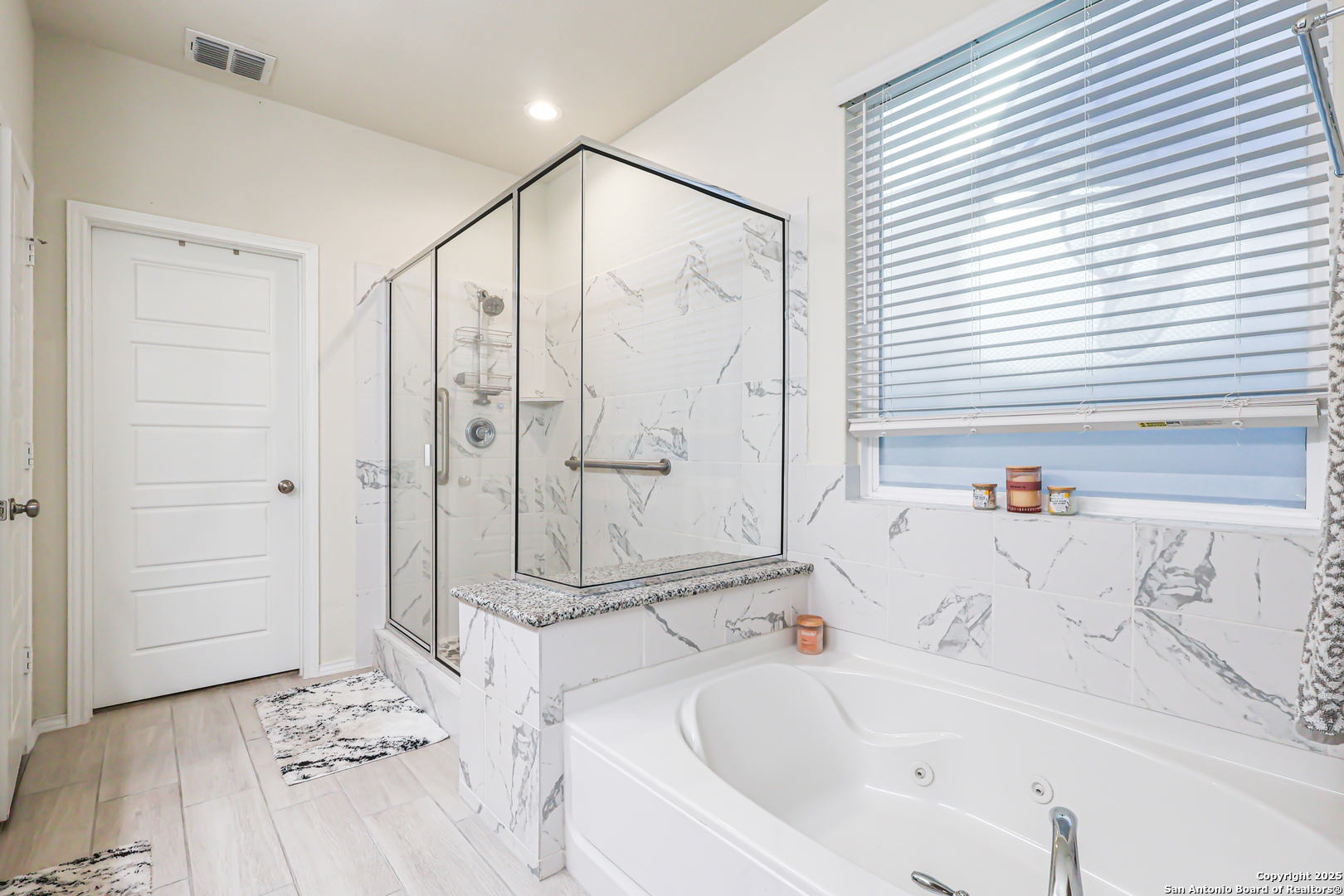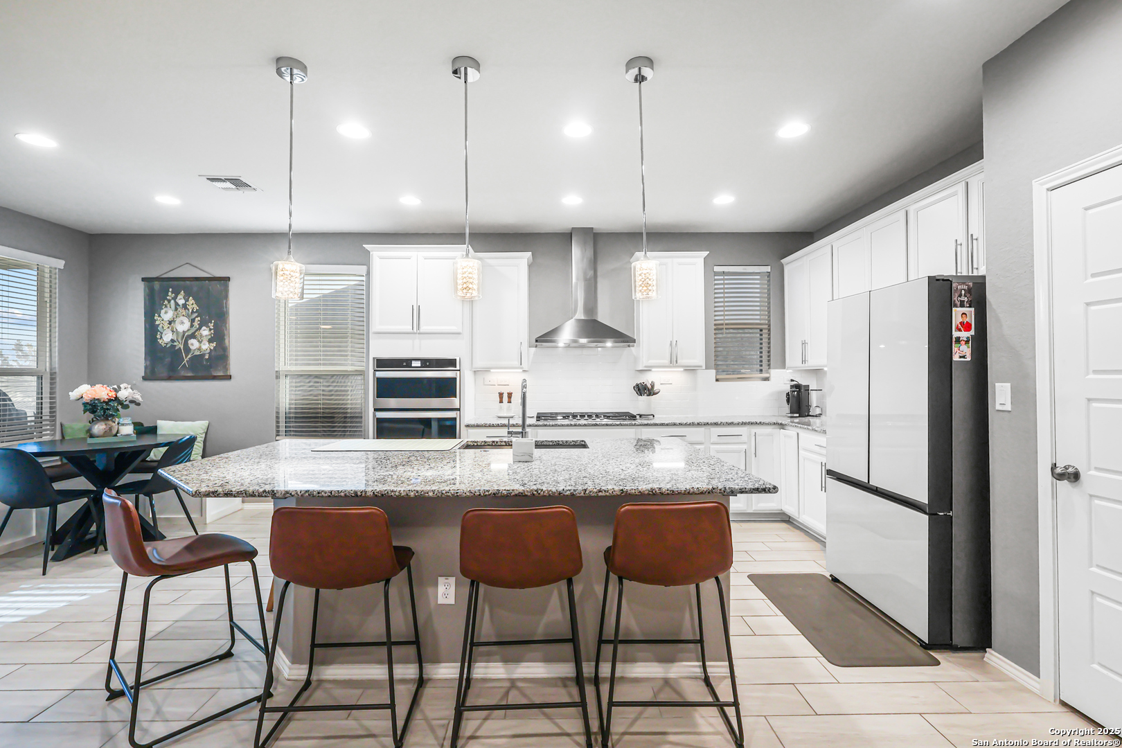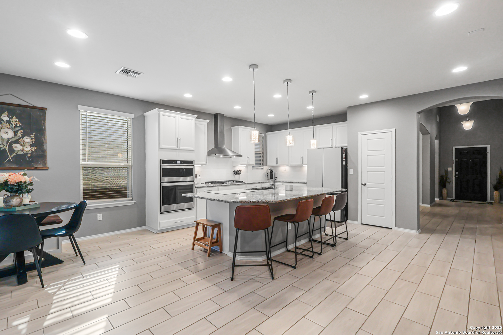This exceptional four-bedroom, three-bathroom home offers just over 2,900 square feet of thoughtfully designed living space in one of Bexar Counties most desirable neighborhoods. Situated in a community that perfectly balances suburban tranquility with convenient access to the city's premier attractions, this residence presents an outstanding opportunity for discerning buyers seeking both comfort and investment value. The heart of this home features a spacious kitchen anchored by a large island that serves as both a culinary workspace and natural gathering point for meals and entertaining. The open layout flows seamlessly throughout the main living areas, creating an inviting atmosphere that accommodates both daily life and special occasions. Natural light fills the interior spaces, enhanced by solar screens installed on all windows that provide energy efficiency while maintaining the home's bright, welcoming ambiance. One of the most compelling aspects of this property is its commitment to sustainable living and modern technology. The home includes owned solar panels paired with a Tesla battery wall system, offering significant energy savings and environmental benefits. Additionally, an owned water softener and filtration system ensures clean, quality water throughout the residence. These features not only reduce monthly utility costs but also represent a forward-thinking approach to homeownership that many buyers increasingly value. The primary bedroom provides a private retreat with ample space and storage, while three additional bedrooms offer flexibility with one secondary room on main level in addition to the separate dining area and office/study with French doors. Perhaps the most remarkable feature of this property is its exceptional outdoor space and natural setting. The backyard directly borders a greenbelt, creating an unusual level of privacy and tranquility rarely found in suburban settings. This natural buffer provides a sense of seclusion while offering potential wildlife viewing opportunities right from your back windows. The property also features a covered patio area, perfect for outdoor dining and relaxation, along with an enclosed front entrance that adds both curb appeal and practical protection from the elements. The neighborhood itself is conveniently located near government canyon state park. This proximity to protected natural areas ensures that the peaceful, park-like atmosphere surrounding the home will be preserved for years to come. Residents enjoy easy access to hiking trails, nature programs, and outdoor recreation opportunities that make this area particularly attractive to families and outdoor enthusiasts. For entertainment and recreation, this location truly excels. World-class attractions including SeaWorld, Six Flags, La Cantera shopping and dining district, and downtown San Antonio are all easily accessible, offering endless options for family fun, cultural experiences, and urban amenities.