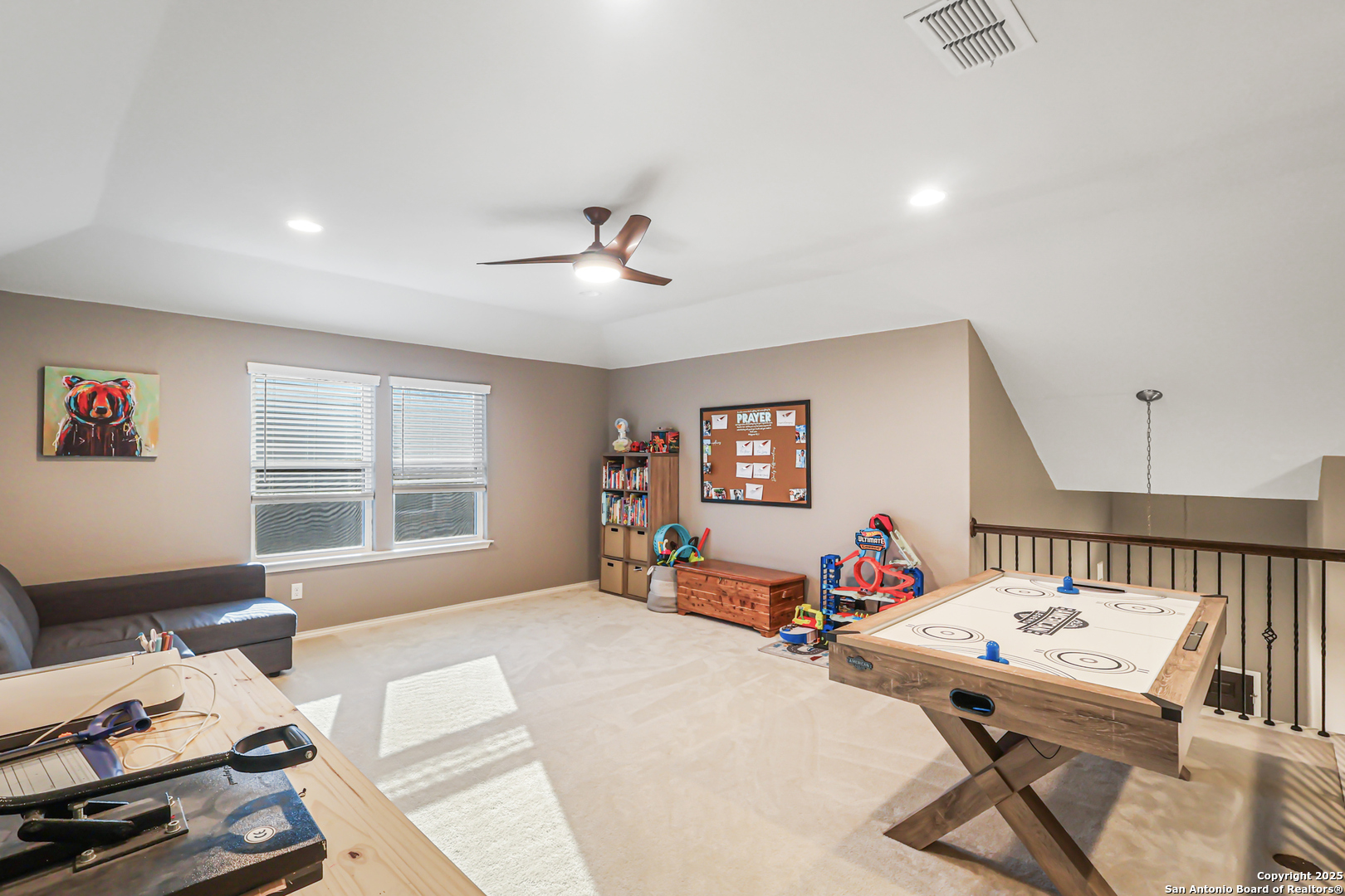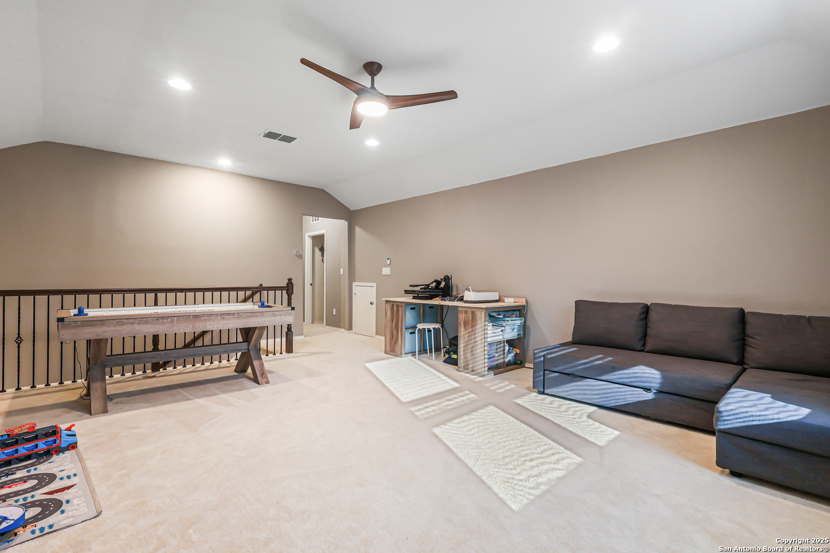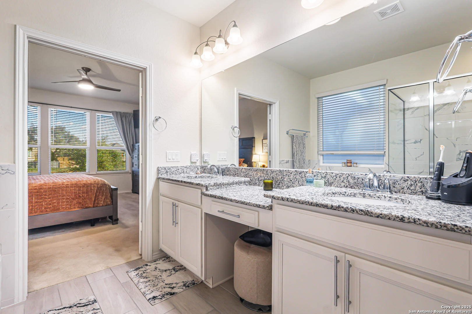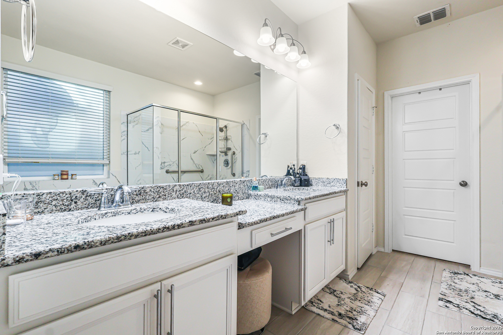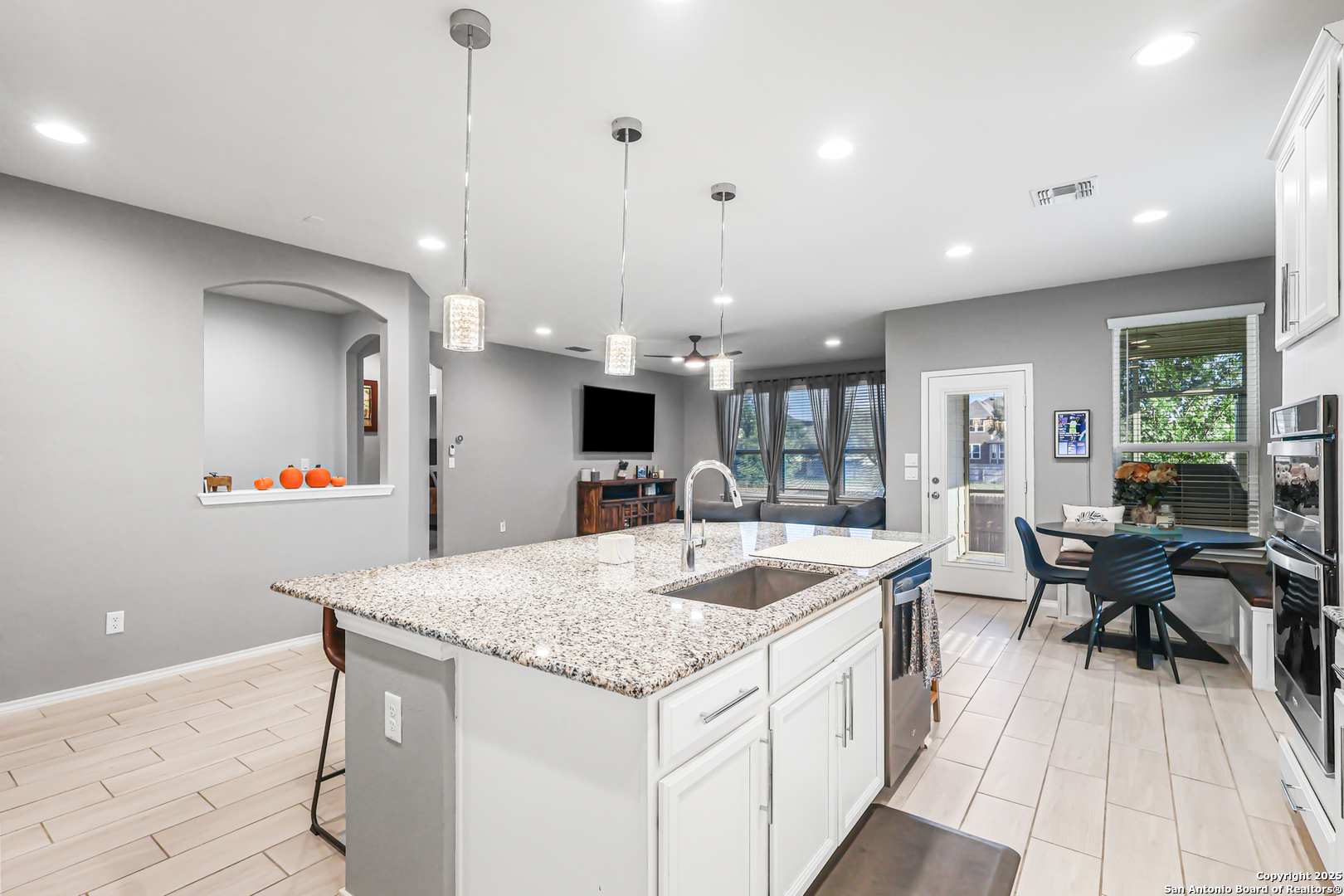 This exceptional four-bedroom, three-bathroom home offers just over 2,900 square feet of thoughtfully designed living space in one of Bexar Counties most desirable neighborhoods. Situated in a community that perfectly balances suburban tranquility with convenient access to the city's premier attractions, this residence presents an outstanding opportunity for discerning buyers seeking both comfort and investment value. The heart of this home features a spacious kitchen anchored by a large island that serves as both a culinary workspace and natural gathering point for meals and entertaining. The open layout flows seamlessly throughout the main living areas, creating an inviting atmosphere that accommodates both daily life and special occasions. Natural light fills the interior spaces, enhanced by solar screens installed on all windows that provide energy efficiency while maintaining the home's bright, welcoming ambiance. One of the most compelling aspects of this property is its commitment to sustainable living and modern technology. The home includes owned solar panels paired with a Tesla battery wall system, offering significant energy savings and environmental benefits. Additionally, an owned water softener and filtration system ensures clean, quality water throughout the residence. These features not only reduce monthly utility costs but also represent a forward-thinking approach to homeownership that many buyers increasingly value. The primary bedroom provides a private retreat with ample space and storage, while three additional bedrooms offer flexibility with one secondary room on main level in addition to the separate dining area and office/study with French doors. Perhaps the most remarkable feature of this property is its exceptional outdoor space and natural setting. The backyard directly borders a greenbelt, creating an unusual level of privacy and tranquility rarely found in suburban settings. This natural buffer provides a sense of seclusion while offering potential wildlife viewing opportunities right from your back windows. The property also features a covered patio area, perfect for outdoor dining and relaxation, along with an enclosed front entrance that adds both curb appeal and practical protection from the elements. The neighborhood itself is conveniently located near government canyon state park. This proximity to protected natural areas ensures that the peaceful, park-like atmosphere surrounding the home will be preserved for years to come. Residents enjoy easy access to hiking trails, nature programs, and outdoor recreation opportunities that make this area particularly attractive to families and outdoor enthusiasts. For entertainment and recreation, this location truly excels. World-class attractions including SeaWorld, Six Flags, La Cantera shopping and dining district, and downtown San Antonio are all easily accessible, offering endless options for family fun, cultural experiences, and urban amenities.