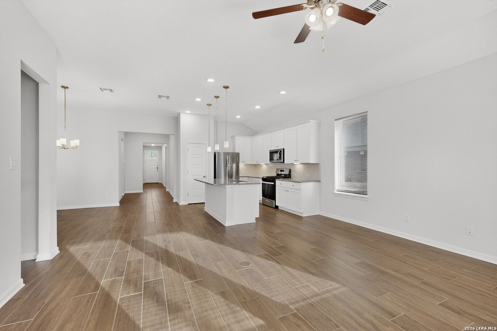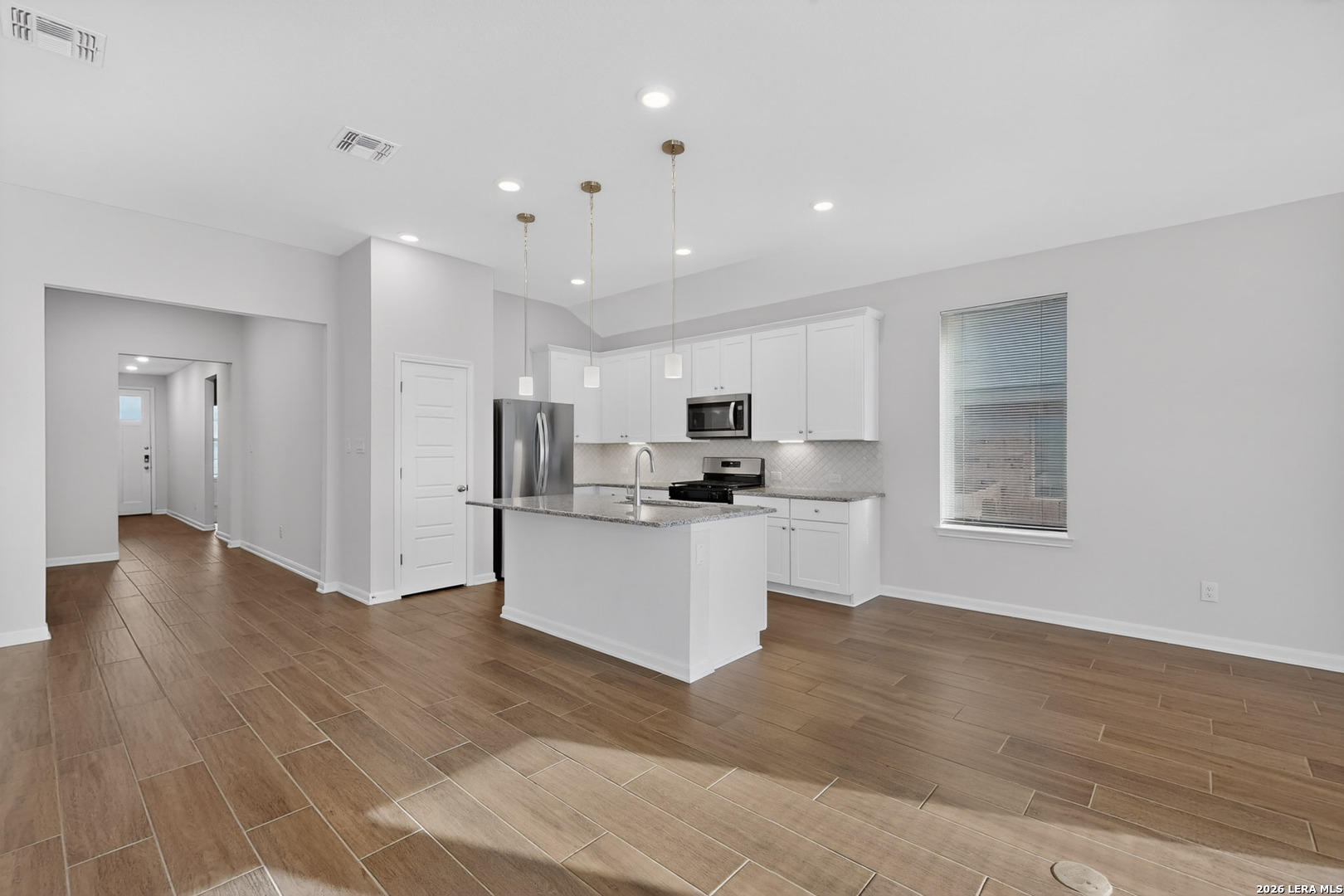 Like-new single-story home built in 2024, located in the desirable Bricewood subdivision in Northwest San Antonio. Offering 1,881 square feet of thoughtfully designed living space, this 4-bedroom, 2-bath home features an open floor plan ideal for both everyday living and entertaining. The spacious island kitchen includes granite countertops, a breakfast bar, and a walk-in pantry, with a separate dining area for added flexibility. The primary suite and secondary bedrooms provide comfort and functionality for a variety of lifestyles. Enjoy the added value of a washer, dryer, and refrigerator-all conveying with the sale. Exterior highlights include four sides masonry for durability and curb appeal. Bricewood residents enjoy fantastic neighborhood amenities, including a park, playground, jogging trails, and sports court.
