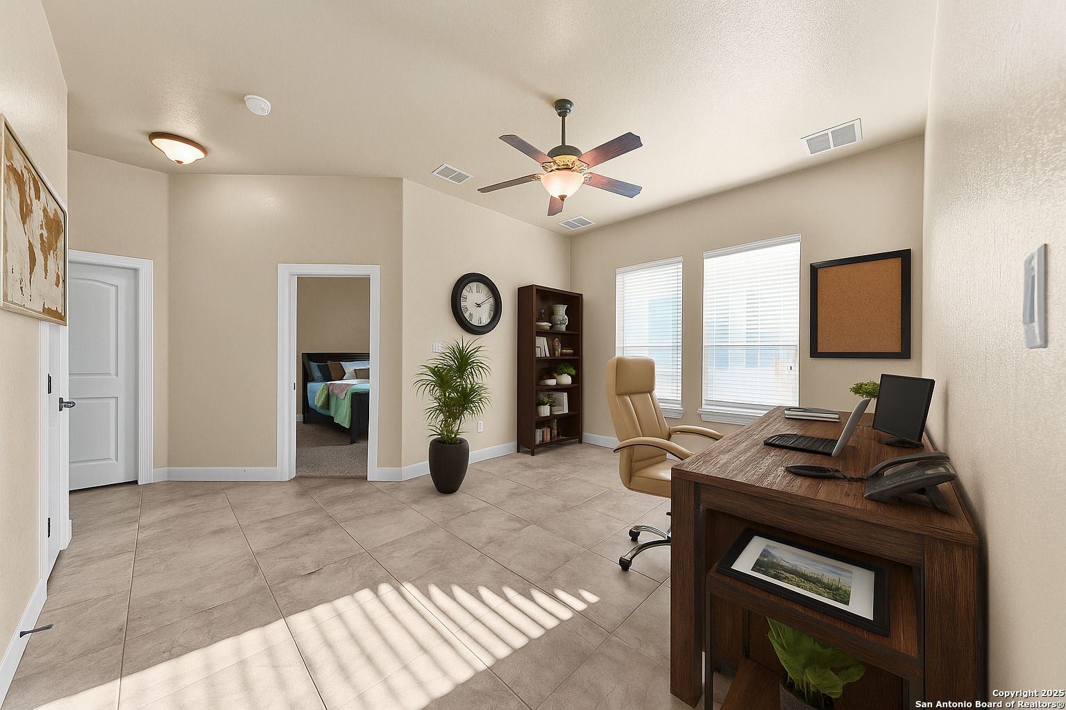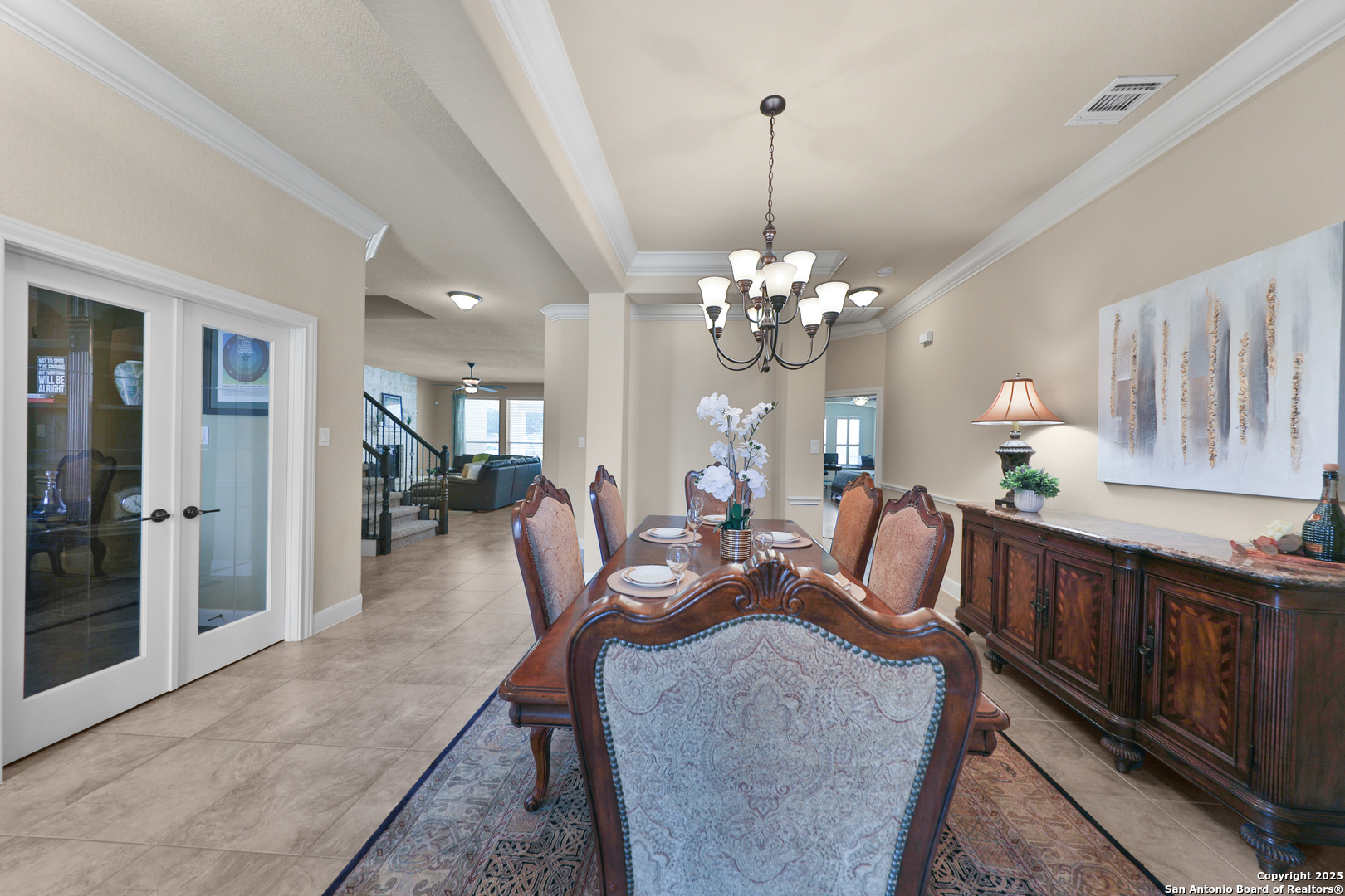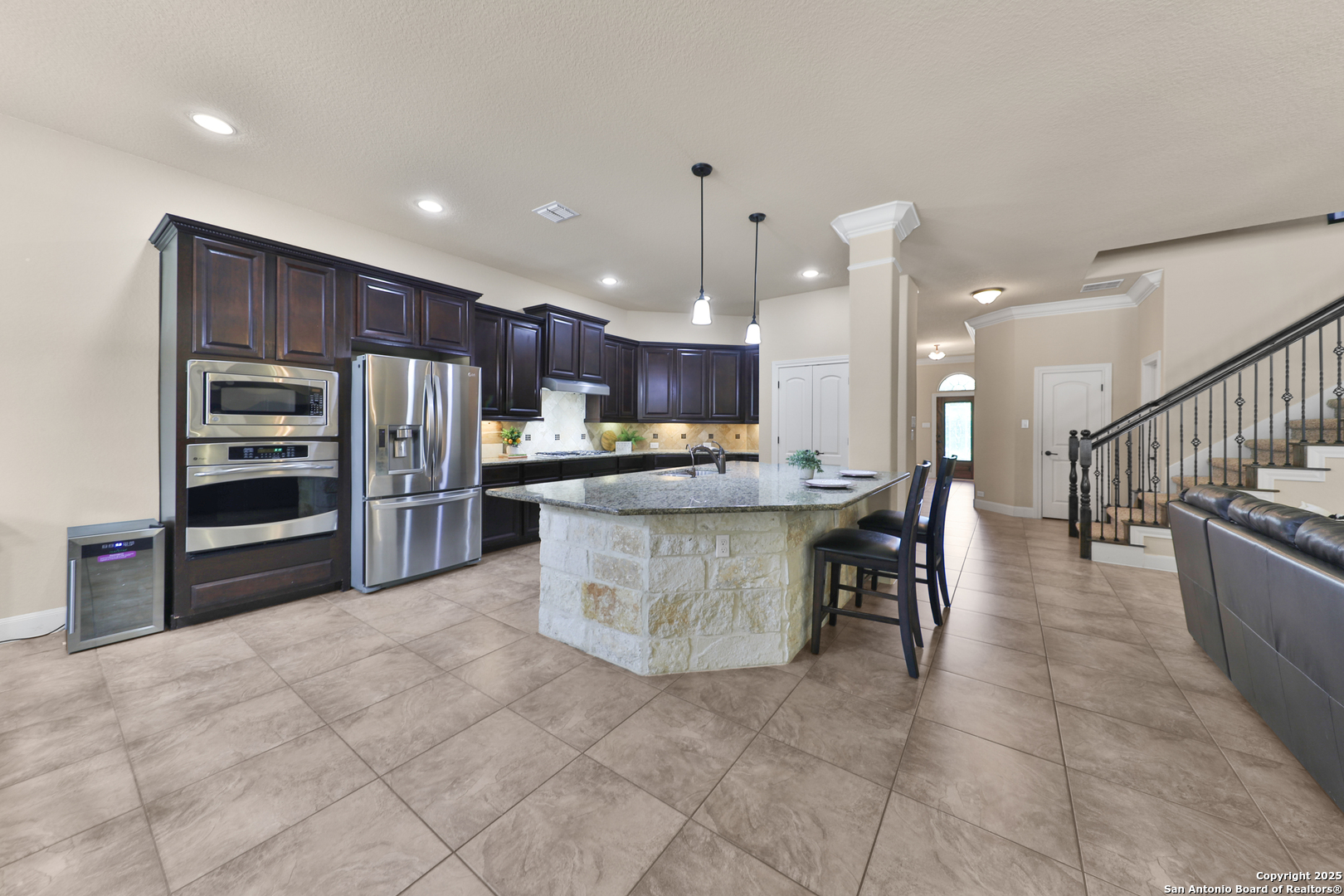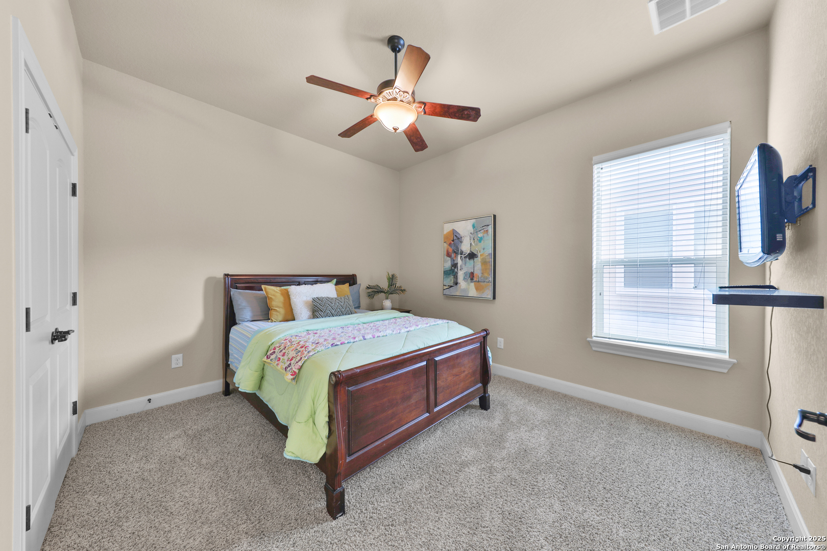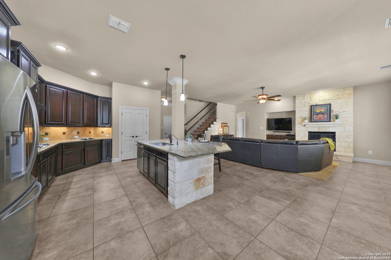 SELLER CONCESSIONS TOWARD CLOSING COSTS: $10,000! Welcome to this stunning David Weekley custom pool home in the prestigious, gated community of Triana! This beautifully designed 1 1/2 story home offers over 3,800 sq ft of luxury living, combining style, comfort, and functionality on an expansive 0.28-acre premium lot backing to a tranquil greenbelt. Boasting 4 spacious bedrooms, 3 1/2 bathrooms all on the main floor, this home provides the perfect layout for individuals and families of all sizes. The private office with a custom built-in bookshelf makes working from home both productive and inspiring. A versatile flex room is ideal for a secondary office, playroom, or home gym. Step outside to your backyard oasis-a 13,500 gallon, custom Cody pool featuring resort-style outdoor living on a permanent greenbelt. The sparkling pool includes a sun shelf, elegant waterfall, custom lighting, and cool deck surround. Unwind under the expansive 32' x 20' covered patio, featuring stylish stained concrete, offering serene views and total privacy, enhanced by a freshly stained fence (May 2025). This outdoor space sets the scene for outdoor dining, entertaining, or peaceful evenings under the stars. Inside, you'll find fresh paint, abundant natural light throughout and gorgeous custom shutters. The chef's kitchen is the heart of the home, complete with an oversized stone-clad island, granite countertops, stainless steel appliances, 42" cabinetry with under-cabinet lighting, ideal for entertaining and culinary creations. The living room is spacious with crown molding, recessed lighting, huge windows overlooking the pool and a stunning floor-to-ceiling stone fireplace. Retreat to the luxurious primary suite, offering a spacious sitting area, spa-like bath with dual vanities, jetted garden tub, separate shower, and a massive custom closet. Upstairs, enjoy an impressive 600 sq ft game room and half bath-a perfect space for movie nights, game days, or a teen hangout. Solar panels are fully paid off - request the utility bills and enjoy energy savings from day one. Located in the highly sought-after gated community of Triana, this home offers security, charm, and access to top-rated NISD schools. Don't miss your chance to own this one-of-a-kind dream home in Helotes! Schedule a private showing today before this gem is gone!