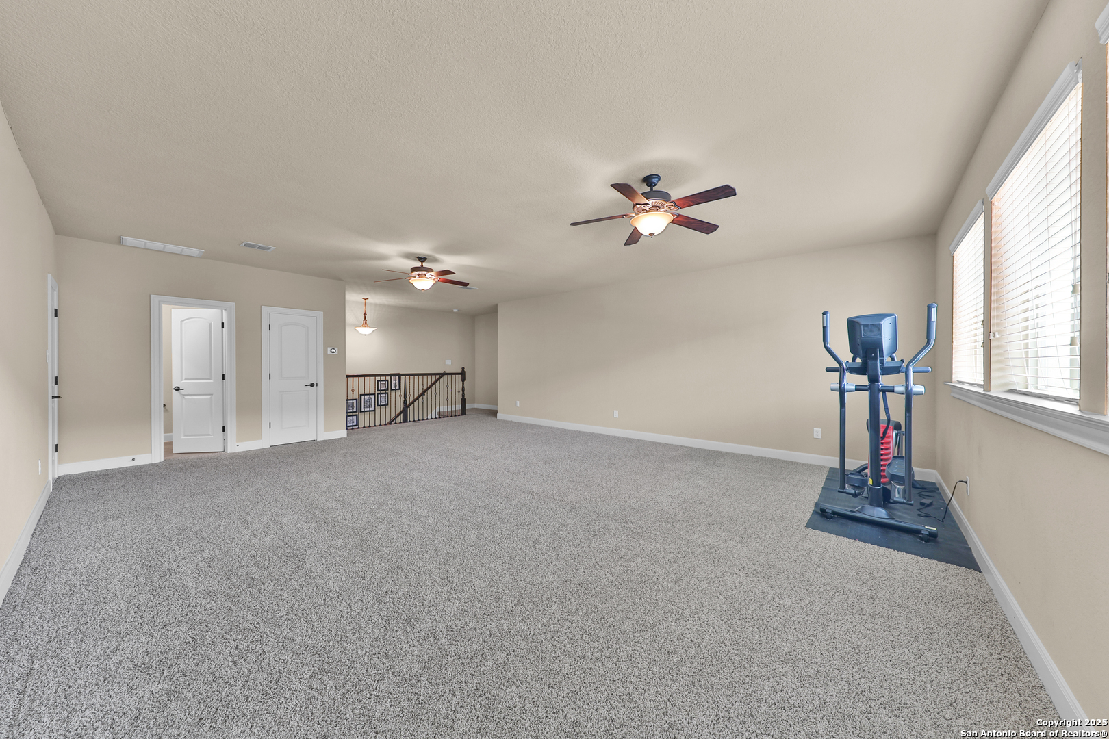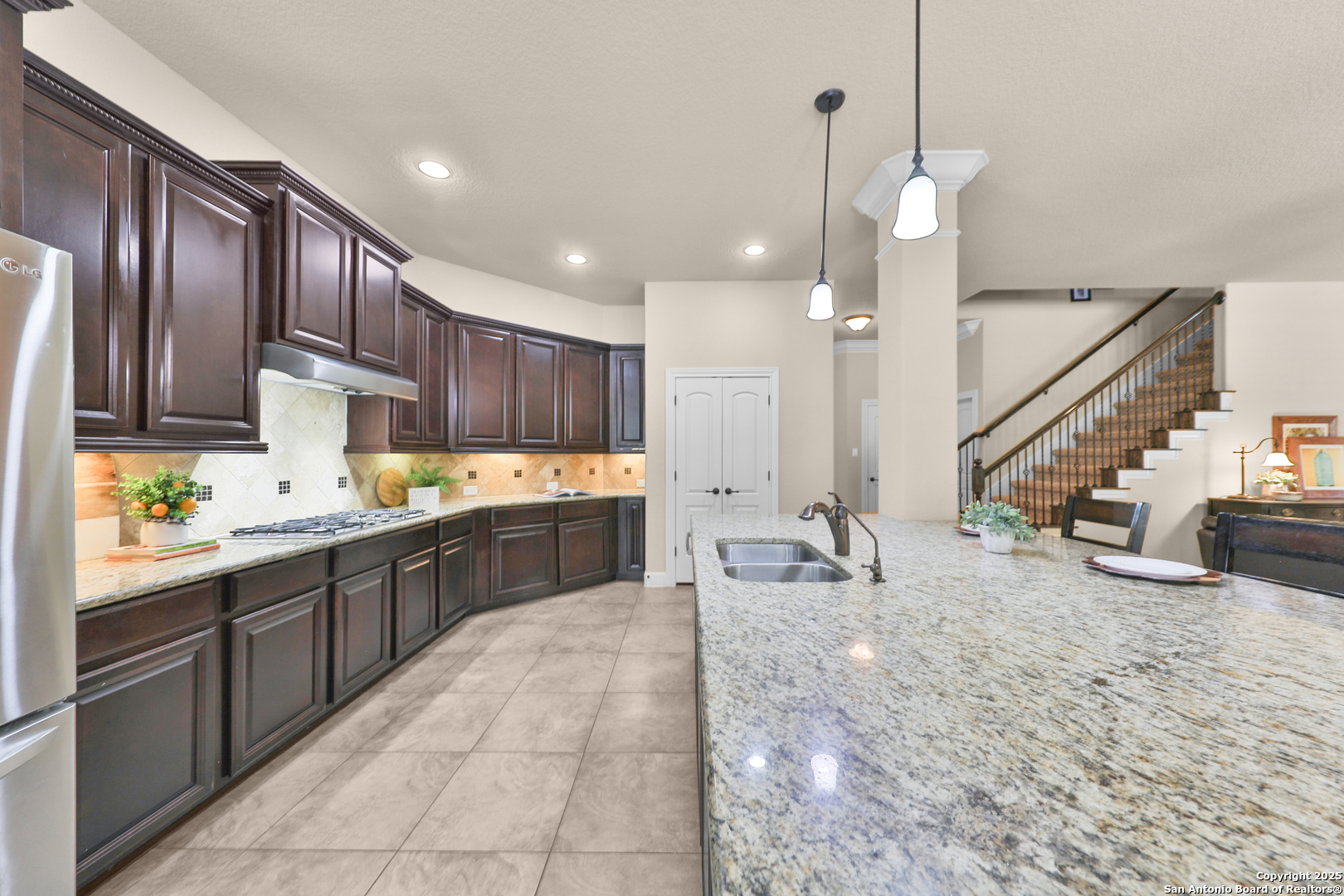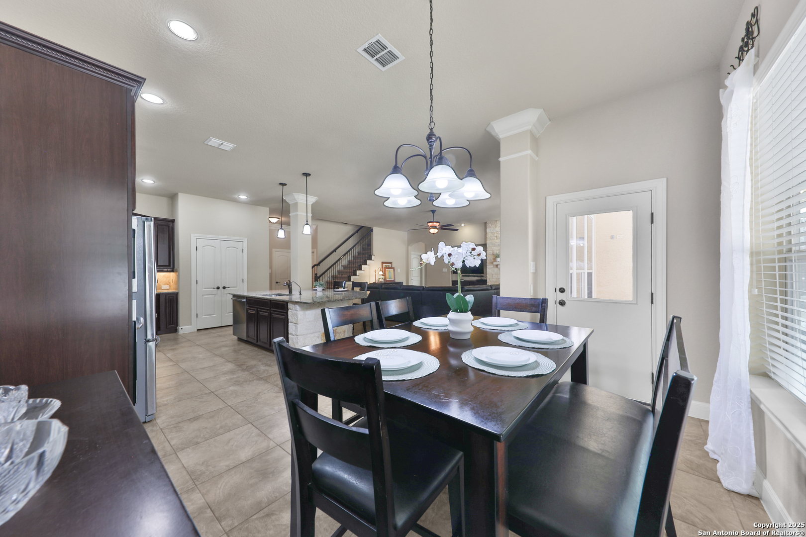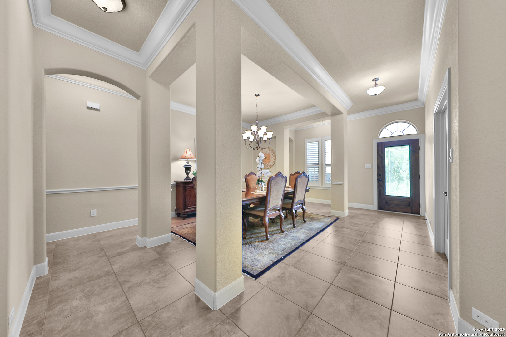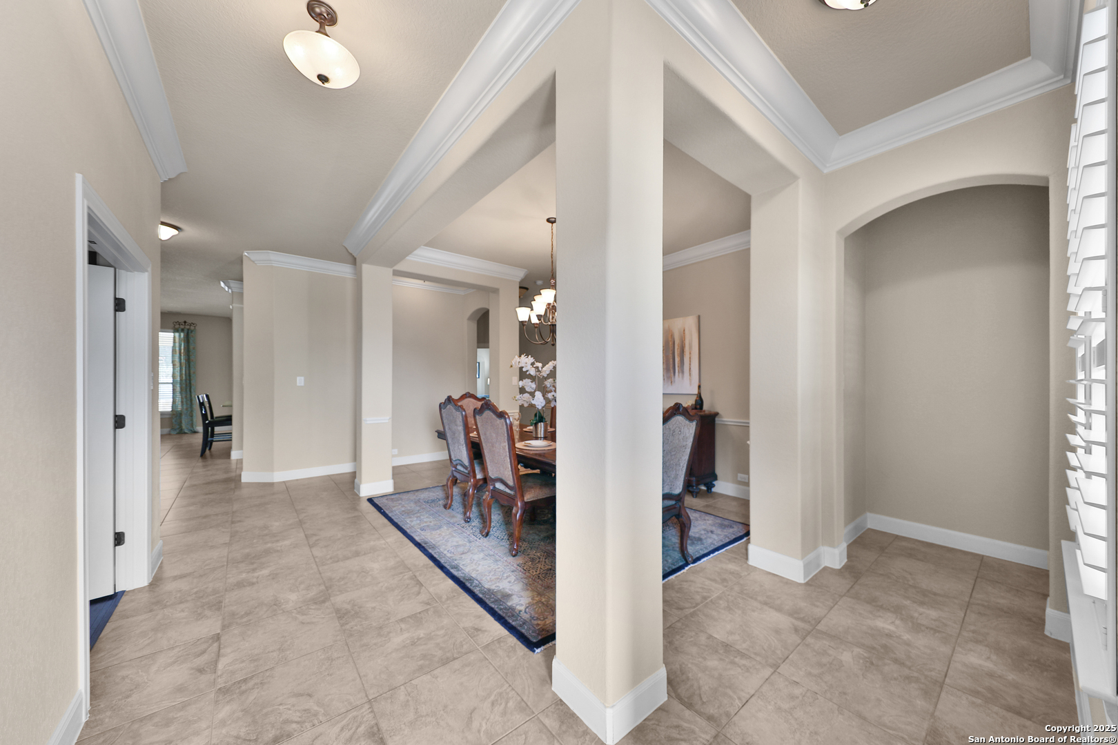 SELLER CONCESSIONS TOWARD CLOSING COSTS: $10,000! Welcome to this stunning David Weekley custom pool home in the prestigious, gated community of Triana! This beautifully designed 1 1/2 story home offers over 3,800 sq ft of luxury living, combining style, comfort, and functionality on an expansive 0.28-acre premium lot backing to a tranquil greenbelt. Boasting 4 spacious bedrooms, 3 1/2 bathrooms all on the main floor, this home provides the perfect layout for individuals and families of all sizes. The private office with a custom built-in bookshelf makes working from home both productive and inspiring. A versatile flex room is ideal for a secondary office, playroom, or home gym. Step outside to your backyard oasis-a 13,500 gallon, custom Cody pool featuring resort-style outdoor living on a permanent greenbelt. The sparkling pool includes a sun shelf, elegant waterfall, custom lighting, and cool deck surround. Unwind under the expansive 32' x 20' covered patio, featuring stylish stained concrete, offering serene views and total privacy, enhanced by a freshly stained fence (May 2025). This outdoor space sets the scene for outdoor dining, entertaining, or peaceful evenings under the stars. Inside, you'll find fresh paint, abundant natural light throughout and gorgeous custom shutters. The chef's kitchen is the heart of the home, complete with an oversized stone-clad island, granite countertops, stainless steel appliances, 42" cabinetry with under-cabinet lighting, ideal for entertaining and culinary creations. The living room is spacious with crown molding, recessed lighting, huge windows overlooking the pool and a stunning floor-to-ceiling stone fireplace. Retreat to the luxurious primary suite, offering a spacious sitting area, spa-like bath with dual vanities, jetted garden tub, separate shower, and a massive custom closet. Upstairs, enjoy an impressive 600 sq ft game room and half bath-a perfect space for movie nights, game days, or a teen hangout. Solar panels are fully paid off - request the utility bills and enjoy energy savings from day one. Located in the highly sought-after gated community of Triana, this home offers security, charm, and access to top-rated NISD schools. Don't miss your chance to own this one-of-a-kind dream home in Helotes! Schedule a private showing today before this gem is gone!