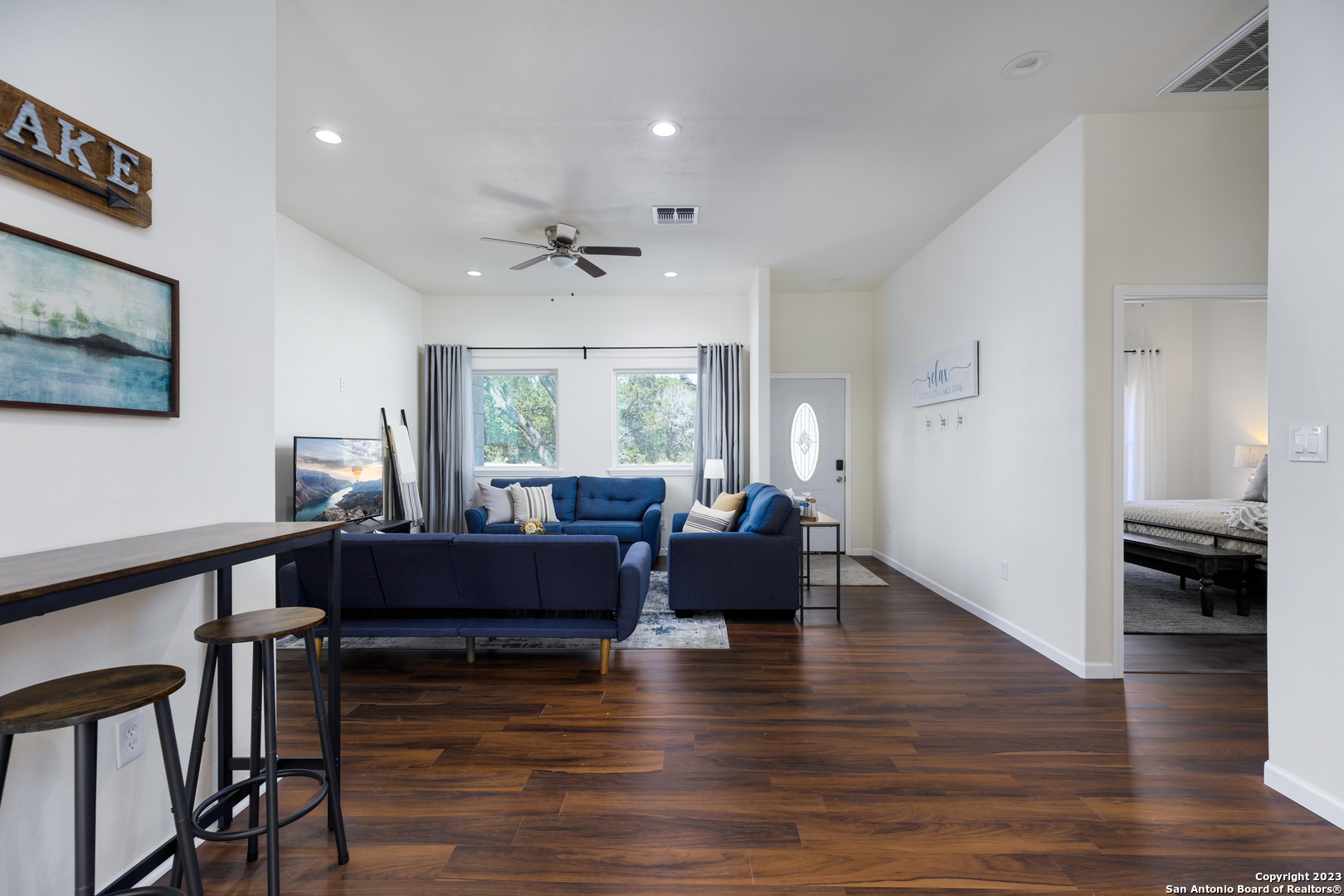 Discover the beauty of a serene life by the lake. Welcome to this fully furnished rental, where luxury meets comfort. From the breathtaking views of Canyon Lake to the modern open floorplan, this home is tastefully designed to make your living experience extraordinary. Being freshly built and customized, this property doesn't just offer a living space, but a lifestyle. Its design embodies modern elegance, enhanced by the beauty of its natural surroundings, thereby giving you more than just a taste of premium living. The house boasts three bedrooms and two bathrooms, perfect for families or groups of friends. With enough space to comfortably sleep ten people, the house encapsulates the best of both worlds - spacious yet cozy. Furnished to perfection, each piece of furniture has been chosen with utmost care to blend seamlessly with the overall aesthetics. The home matches functionality with style, ensuring that every corner has something unique to offer. One of the many exceptional features of this property is the open floorplan. This design allows you to experience a spacious and free-flowing living area, creating an inviting atmosphere for enjoyable living and entertaining. Another standout feature of this home is its practicality. With amenities such as a washer and dryer included, the house truly caters to your everyday needs. These features not only ensure your comfort but also provide the convenience that is desired in a modern home. While pets are a joy and comfort to many, in order to maintain the pristine condition of this property, we have implemented a strict no-pet policy. This ensures that the home remains allergen-free and clean.