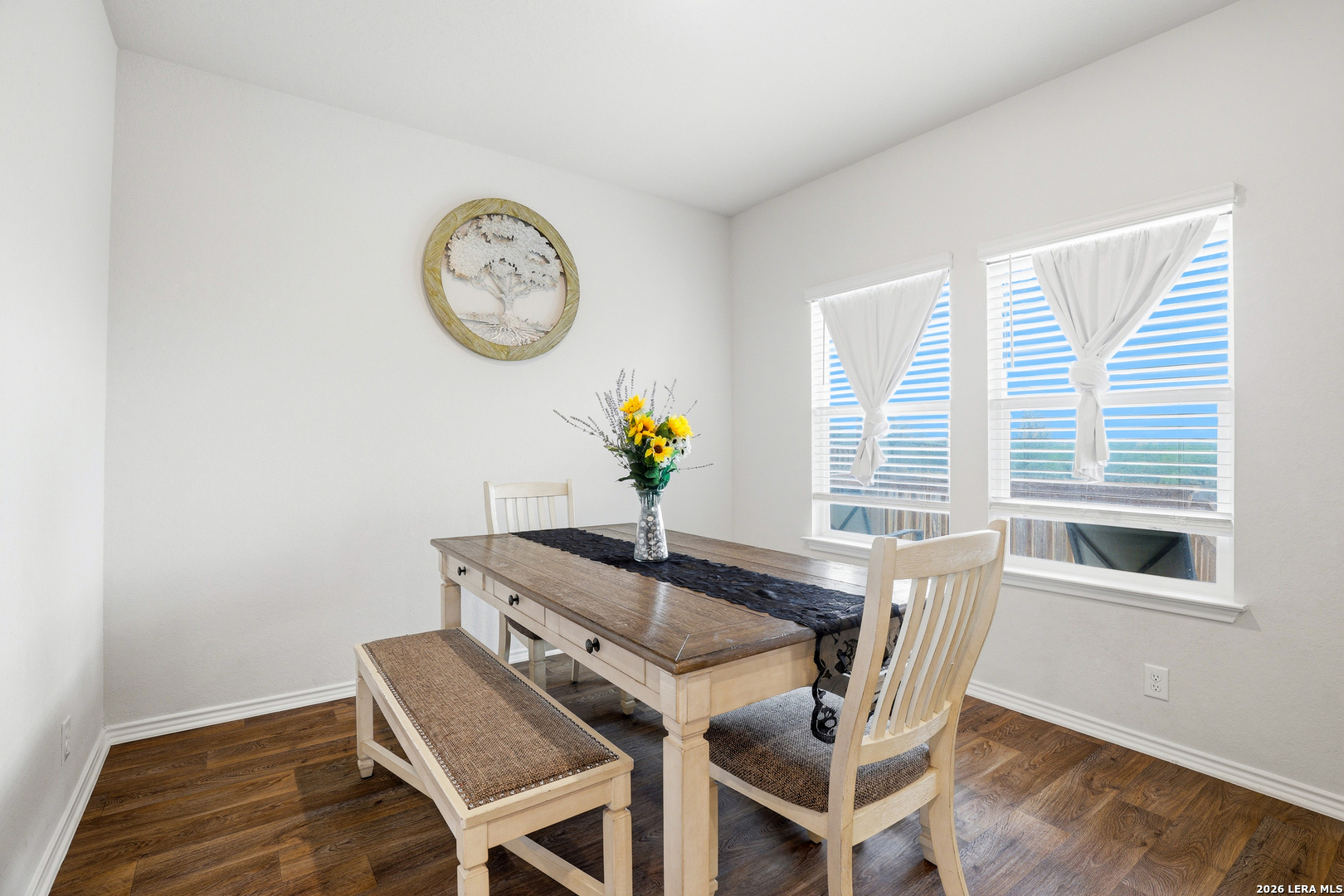 Conveniently located near JBSA- Lackland and all the west side of San Antonio has to offer, this home is ideal for those looking for easy access to base while still enjoying a newer construction home with modern finishes. This 2,223 sqft, 2-story home features a bright, open-concept main floor where the kitchen, dining, and family room all connect seamlessly. Large windows bring in tons of natural light, while LVP flooring throughout the main living areas makes everyday living both stylish and low maintenance. The kitchen is complete with granite countertops, stainless steel appliances, and a large island with a breakfast bar that's perfect for entertaining or casual meals. The open concept floor plan brings functionality to this beautifully designed area. Upstairs, all 4 bedrooms are thoughtfully positioned alongside a spacious loft that offers flexible use as a second living area, home office, or game room. Step outside to a covered patio overlooking a fully fenced backyard with a wooden privacy fence, providing the perfect setup for pets, entertaining, or relaxing evenings at home with no backyard neighbors.