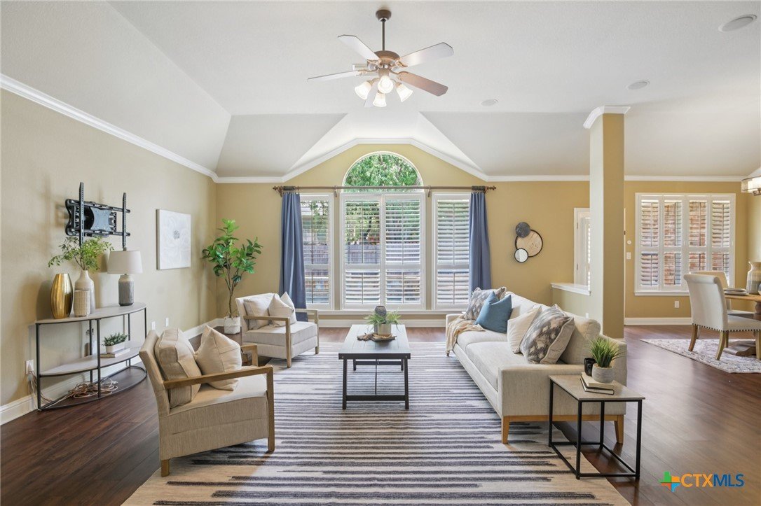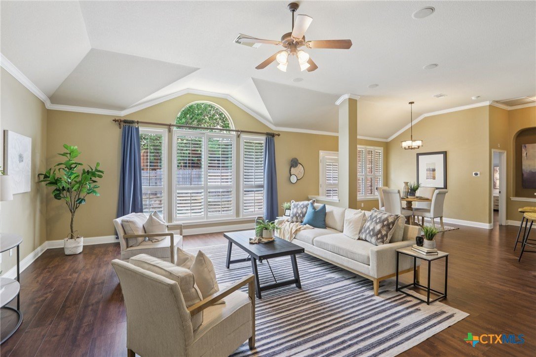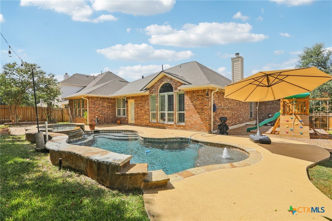Nestled in the heart of Austin’s highly desirable Avery Ranch Brookside community, 10525 Roy Butler Drive is a beautifully maintained single-family home offering the perfect blend of comfort, style, and convenience. Step inside and be greeted by a soaring vaulted ceiling and a warm fireplace that create a welcoming living space ideal for entertaining or relaxing. The chef’s kitchen is a true highlight, featuring stone countertops, a stylish backsplash, double ovens, a stovetop, a spacious island, and a convenient breakfast bar. A built-in dry bar in the dining area adds both charm and functionality, perfect for hosting. The private primary suite is a retreat of its own, complete with a tray ceiling, spa-inspired ensuite bath with a tiled walk-in shower, double vanity, and a generous walk-in closet. This home offers flexibility with four well-sized bedrooms plus an upstairs bonus room with a full bathroom—perfect for use as a fifth bedroom, guest suite, or dedicated study. Everyday living is made easy with a functional laundry room, tankless water heater, and a three-car garage with extra storage. Outdoor living shines with a private fenced backyard, sparkling heated pool, in-ground hot tub, and an open patio designed for year-round enjoyment. Located in Avery Ranch, a golf course community known for its scenic trails, pools, clubhouse, and easy access to shopping, dining, and top-rated schools, this property delivers the lifestyle so many buyers are searching for in North Austin. Schedule your private showing today and experience all this incredible home has to offer.