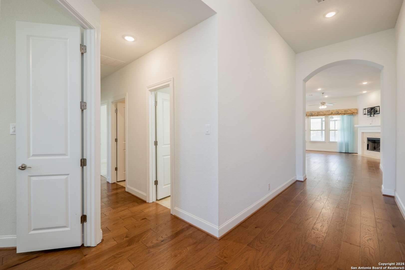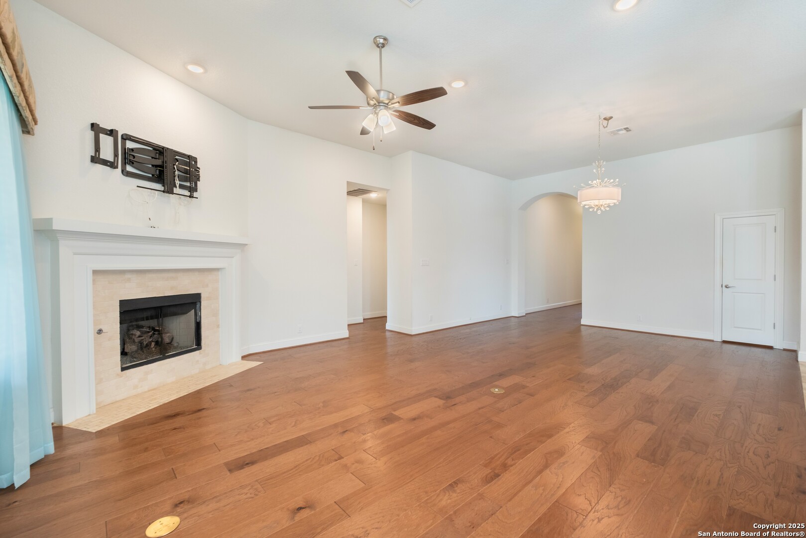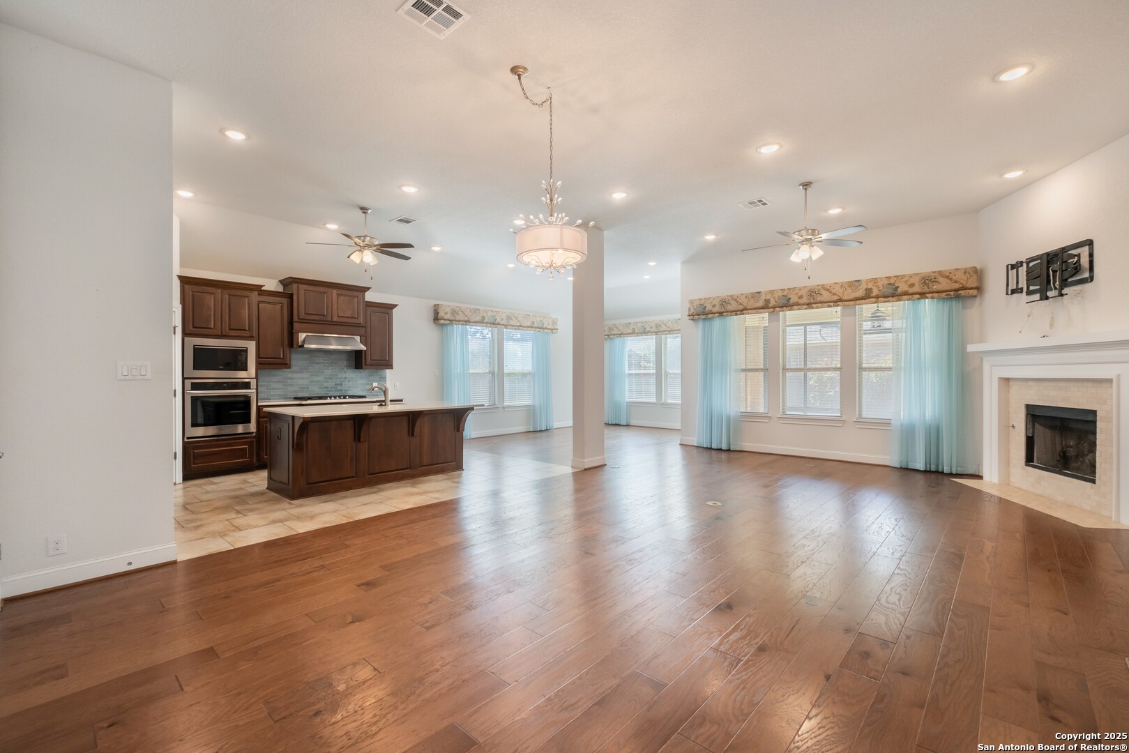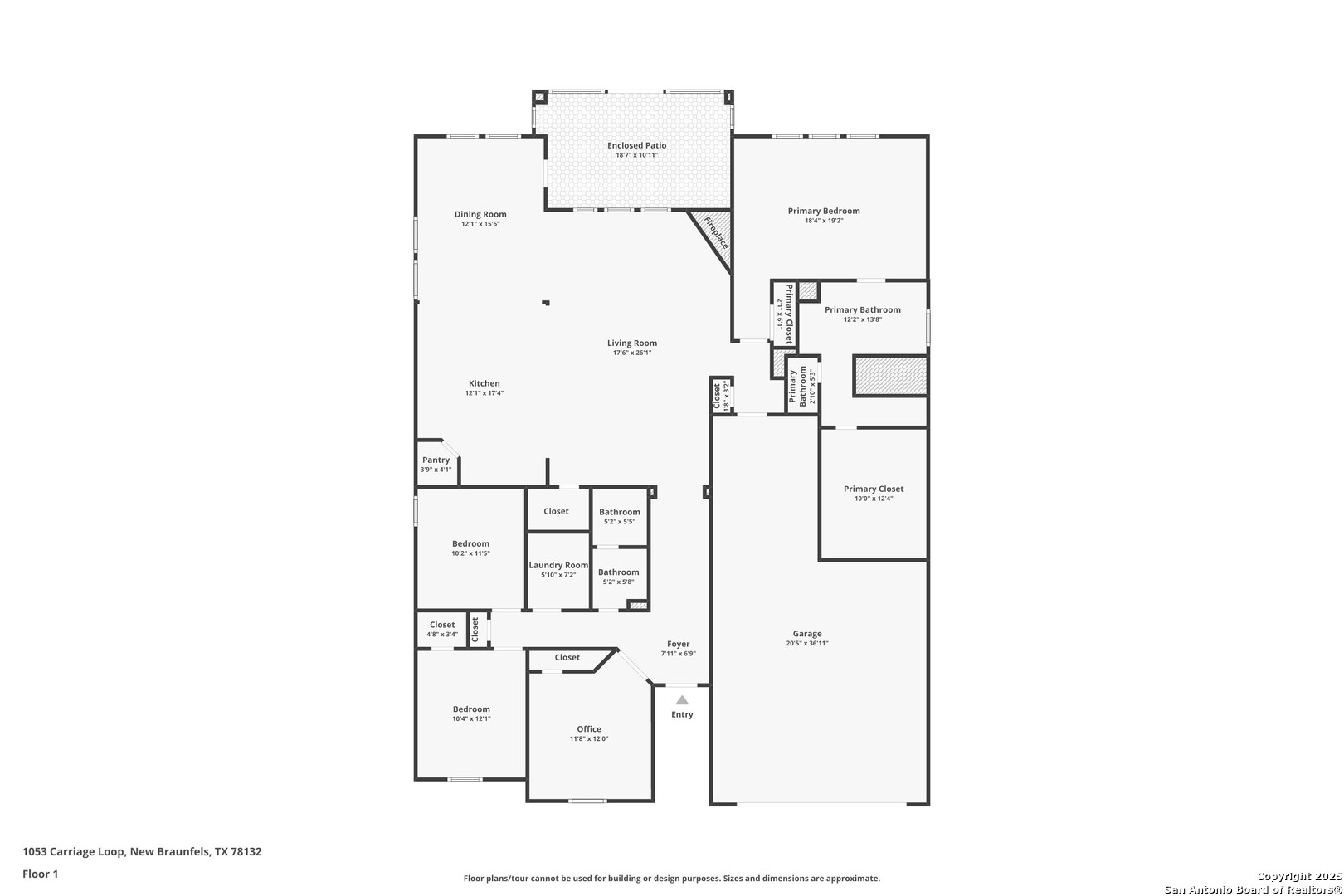 Set in a desirable New Braunfels neighborhood, this inviting 1-story home offers 3 bedrooms plus an office, 2 full baths, and an oversized 2-car garage. The well-designed layout features open-concept living with distinct bedroom spaces for comfort and functionality. The spacious living room centers around a cozy fireplace and flows seamlessly into the kitchen and dining areas, ideal for everyday living and entertaining. The kitchen includes an island with a breakfast bar, ample cabinetry, and a convenient pantry for storage. The primary suite features a high ceiling, an ensuite bath with separate vanities, a walk-in shower, and a spacious walk-in closet. Two secondary bedrooms share a full bath, while the office near the entry provides flexible space for work or hobbies. An enclosed patio extends the living space outdoors, overlooking a wooden-fenced backyard perfect for relaxation or gatherings. Combining comfort, practicality, and a smart layout, this home offers easy living in a great New Braunfels location.