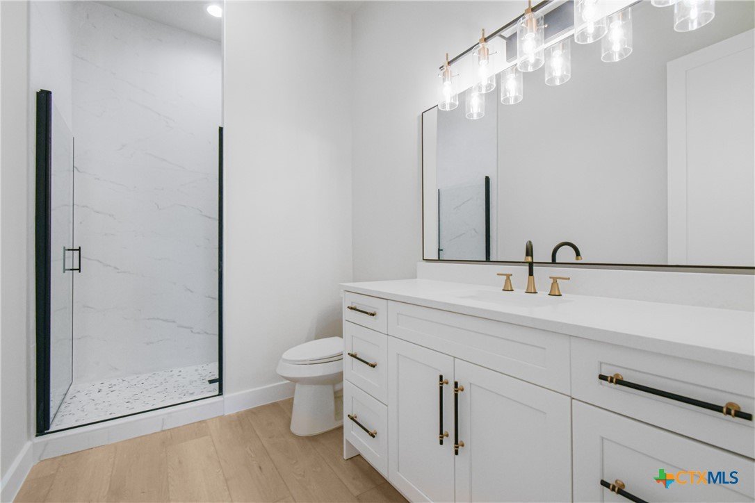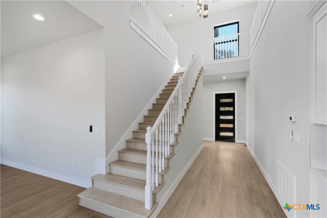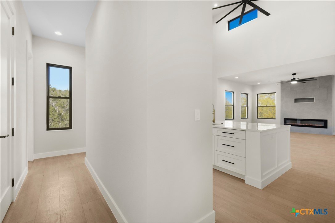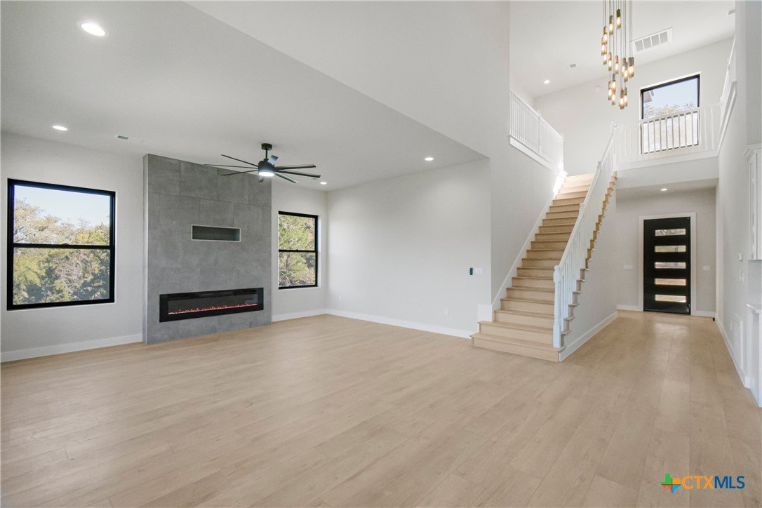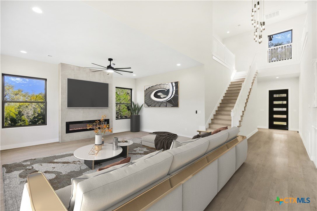 Experience modern living in this stunning new construction home surrounded by mature trees and tranquil views. Designed for today’s lifestyle, this 4-bedroom, 3.5-bath residence offers 2,914 square feet of light-filled living space with soaring ceilings, expansive windows, and wide-plank flooring throughout. The chef-inspired kitchen features a striking quartz island, custom cabinetry, stainless steel appliances, and flows seamlessly into the open living area anchored by a sleek contemporary fireplace. Oversized sliding doors extend the living space to a covered patio, perfect for entertaining or unwinding in a private, wooded setting. The upper level offers three spacious bedrooms, two full bathrooms, and a versatile flex space ideal for a media room, office, or play area. Complete with a dramatic entry, refined modern finishes, and a two-car garage, this brand-new home delivers style, comfort, and functionality in a truly beautiful setting.