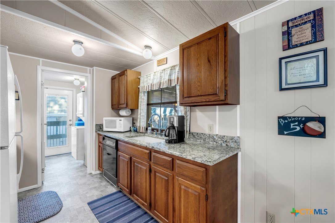 Cozy Lake LBJ property in Sunrise Beach offers 65’ of waterfront, 2 bedrooms, 2.5 bathrooms, a sunroom with wet bar, and much more all at an affordable price. The large covered back deck provides an ideal area for spending time with friends and family while admiring the water view and large oak trees at the lake house. The property comes with a boat lift and a PWC lift. The home has new and updated mechanicals, including a 2021 water heater, HVAC system, and boat lift motor. This Sunrise Beach gem is priced to sell, so reach out today to schedule your tour. The stackable washer/dryer convey with the sale. The boat is available for sale as well with separate Bill of Sale as well as the 2019 Chaparral Fish/Ski.