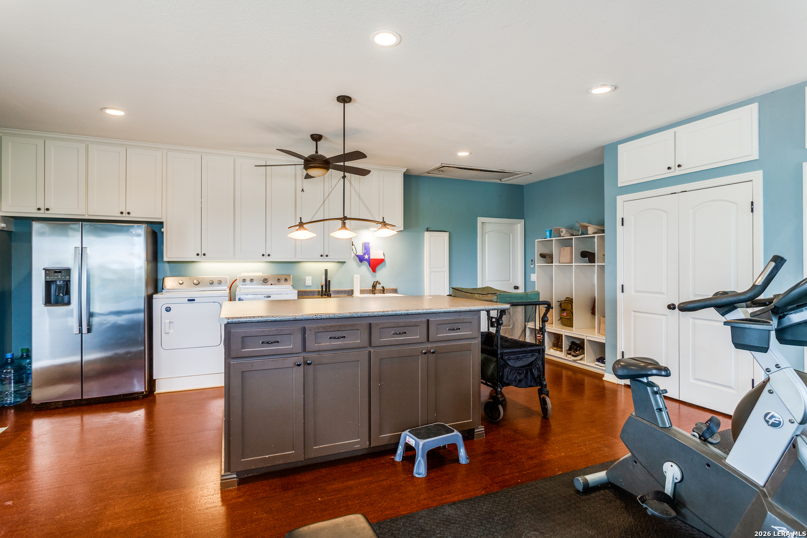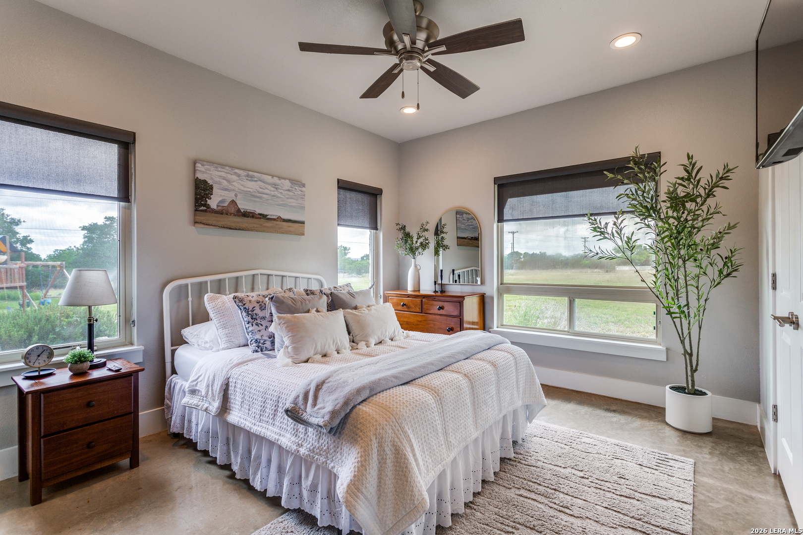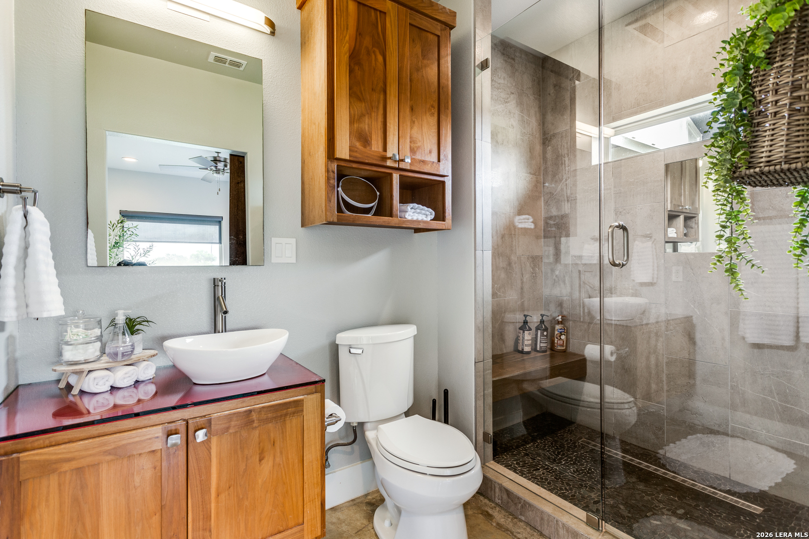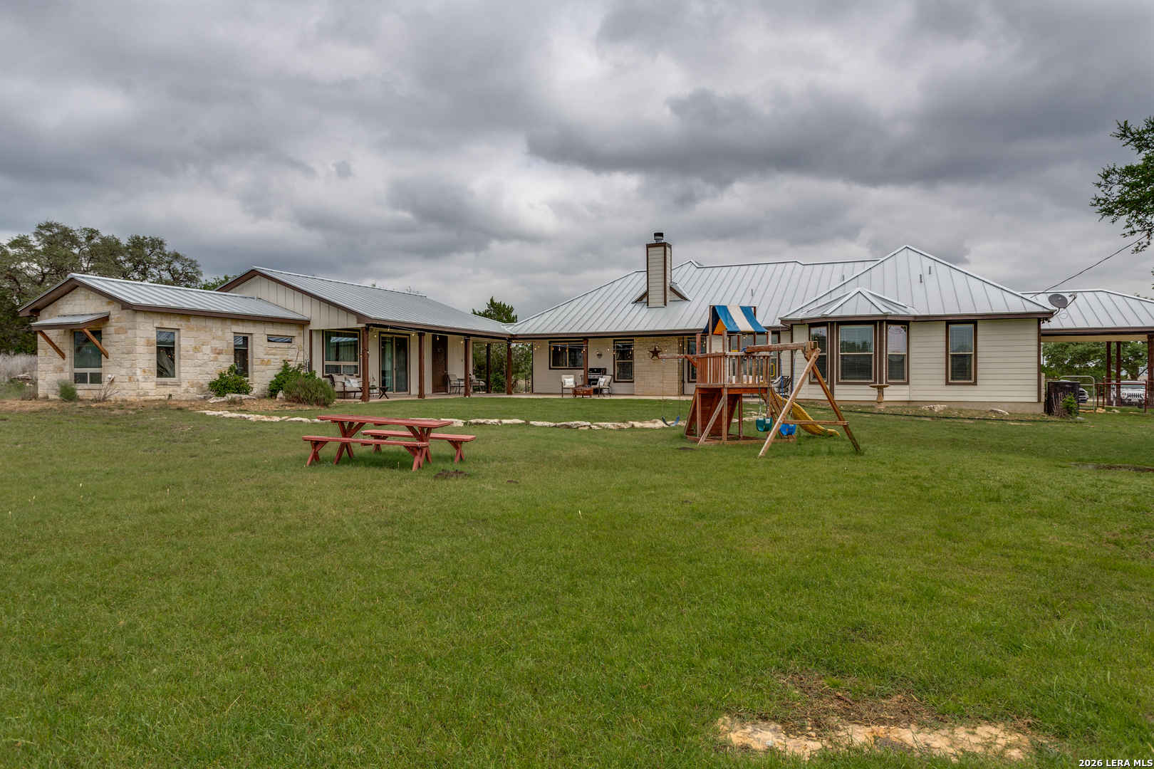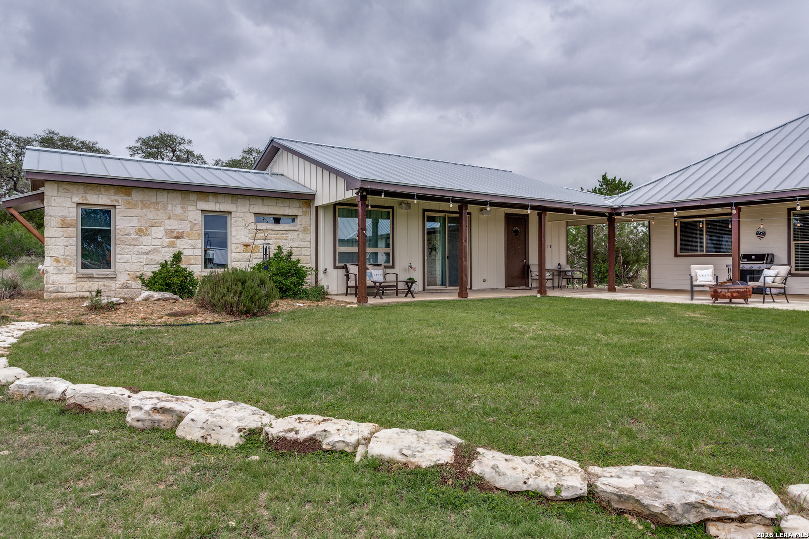 YOUR SEARCH ENDS HERE! Texas Hill Country dream property resting on 3.34 groomed acres. The "main house" offers 3 bedrooms and 2.5 baths, a versatile study/office that can easily serve as formal dining. Enjoy both a secondary dining area and a wet bar. The expansive living room features vaulted wood ceilings and a stunning fireplace with a custom wood mantel, and stained concrete flooring. The kitchen is beautifully appointed with gas cooking, custom cabinetry, and a reverse osmosis system, while a central vacuum adds convenience throughout both homes. Additional flexible spaces include a bonus room ideal for a game room, gym, or craft area. Recent upgrades include a new metal roof, fresh exterior paint, a new well pump and tank, 2,500-gallon water storage system, newly built garage, and a new fence with a scenic walking path leading to the casita. The approximately 1000 -square-foot casita includes a full kitchen, full bathroom, reverse osmosis system, and a new metal roof, central vacuum. This casita currently operating as a successful Airbnb/VRBO rental, it offers excellent income potential or private guest accommodations.