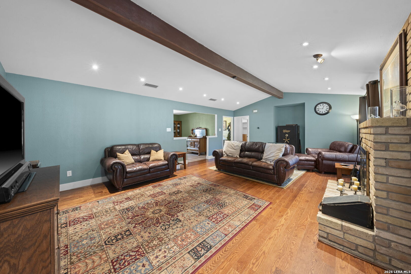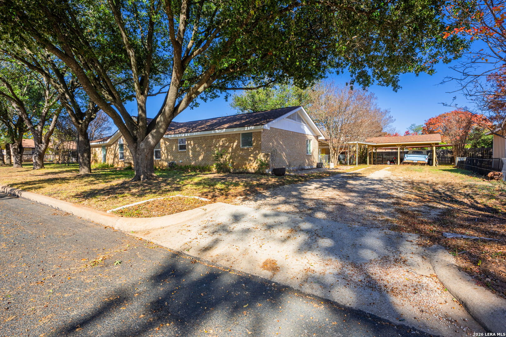 Nestled on a spacious 0.41-acre lot in a quiet, established Fredericksburg neighborhood, this inviting 4-bedroom, 3-bathroom home offers comfort, functionality, and room to grow. Mature trees frame the property, providing shade and a peaceful Hill Country setting while still being conveniently located near town amenities. Inside, the home features warm, welcoming living spaces highlighted by a cozy brick fireplace, vaulted ceilings with exposed beams, and abundant natural light. The kitchen is very spacious, with granite countertops, gas range, and stainless steel appliances in the primary. The primary bathroom and second bathroom have both been nicely updated with dual vanities. The third bathroom is attached to the fourth bedroom making it very convenient as it could become a second master bedroom or mother-in-law suite. The living area flows to the outdoors through French doors, creating an easy connection for entertaining or everyday living. Well-proportioned bedrooms offer flexibility for family, guests, or a home office setup. The expansive backyard is a standout feature level, usable, and full of potential. There is a second structure that is used for storage as of now but could be finished out into a guest house and has ally access. Whether you envision a garden, outdoor living area, pool, or future expansion, the generous lot provides ample space to bring your ideas to life. Mature trees and open lawn areas create both privacy and versatility. With its combination of space, character, and a desirable Fredericksburg location, 106 Seamoor presents a wonderful opportunity for full-time living, a second home, or an investment property in the Texas Hill Country.