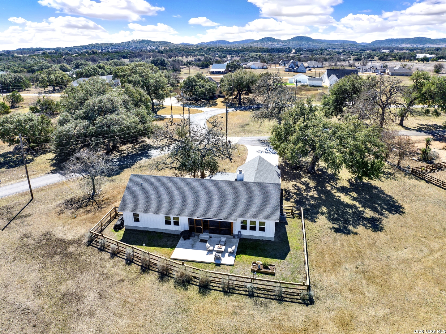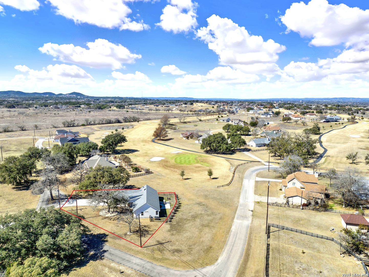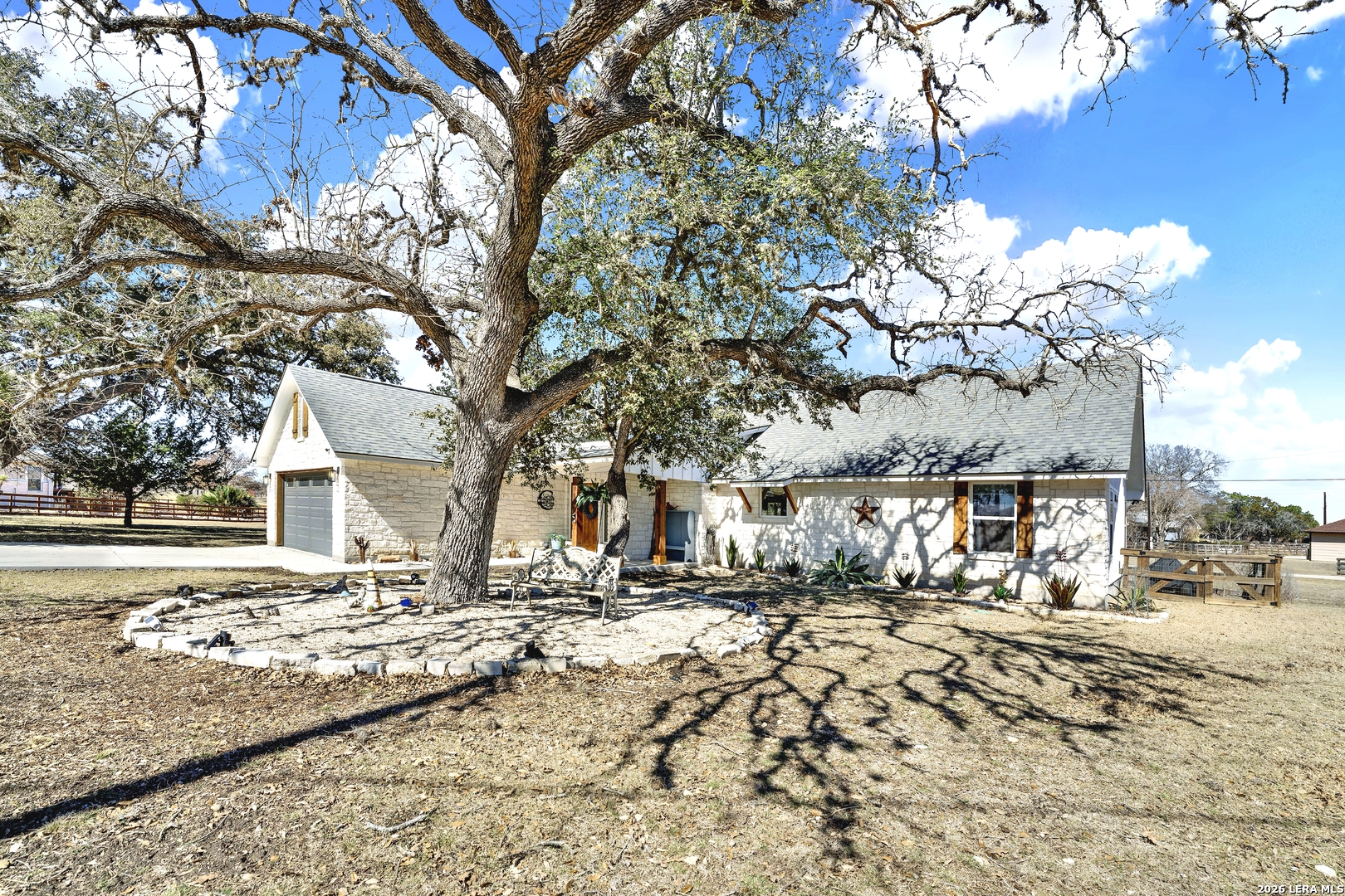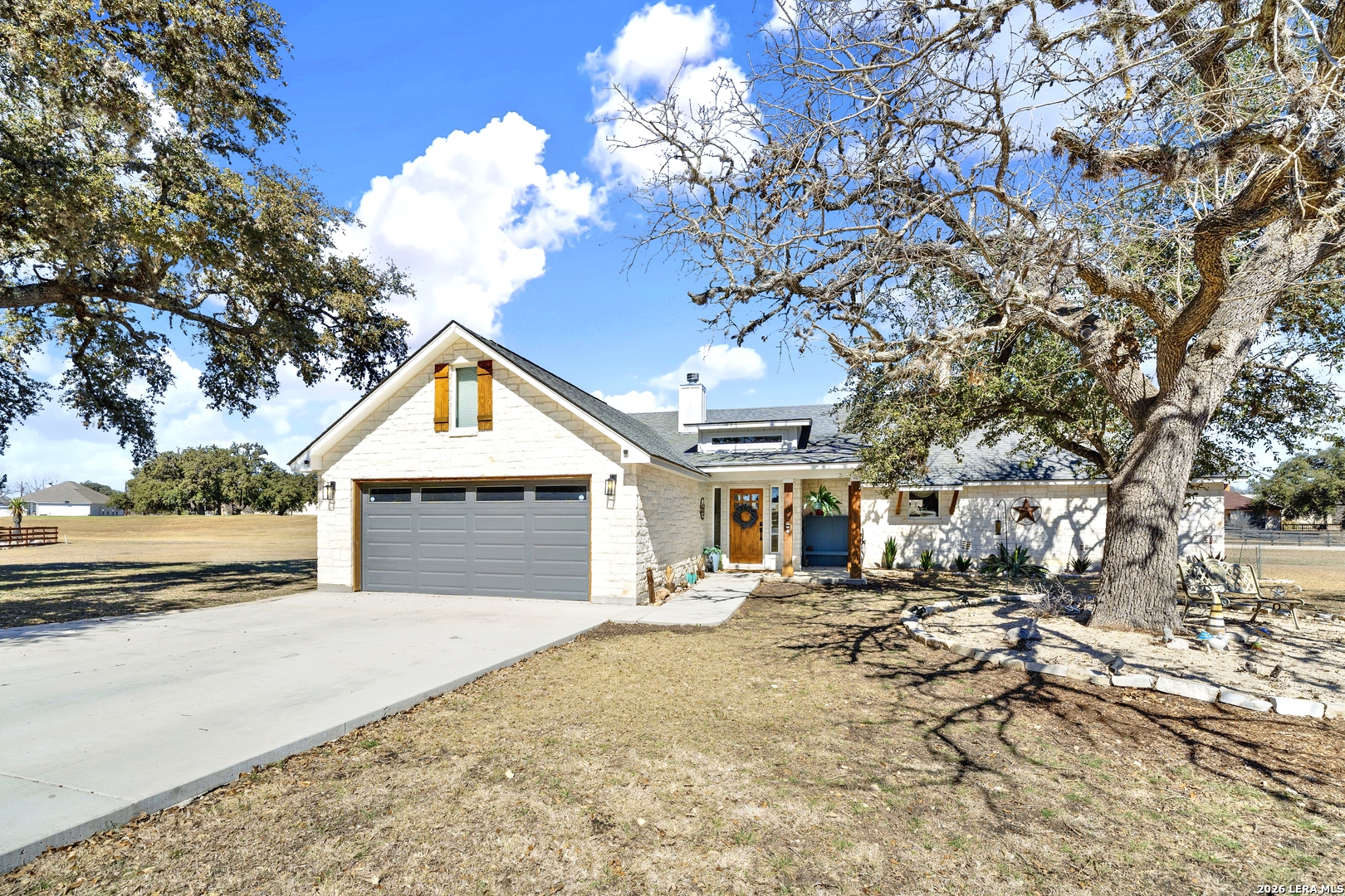 Located on the 15th hole in the sought-after Flying L Ranch community, this stunning 4-bedroom, 2-bath custom-built home offers exceptional Hill Country living with golf course views and thoughtful upgrades throughout. Inside, you'll find an open-concept design highlighted by a striking stone fireplace with a wood beam in the living room, creating a warm and inviting focal point. Tall window treatments and drapes remain, adding elegance and privacy to the abundant natural light. The kitchen is designed for both beauty and convenience, featuring touchless sink, ample cabinetry, and an LG stainless steel refrigerator that conveys with the home. A built-in mudroom connects seamlessly to the laundry area for added functionality. The spacious primary suite offers a peaceful retreat with a sliding barn door leading into the ensuite bath, complete with separate vanities and sinks. Additional bedrooms feature deep closets with built-ins and pull-up/pull-down shades. One guest bedroom even includes direct attic access for convenient extra storage. Additional highlights include; Owned water softener, Insulated garage door, Dedicated golf cart parking area in the garage, Garage shelving to remain and Extra-wide driveway. Step outside to enjoy the extended covered patio-perfect for relaxing or entertaining-with the option to purchase the patio furniture. All of this and offering beautiful views, a true resort-style atmosphere that is situated in Bandera, known as the "Cowboy Capital of the World," this home blends luxury details with small-town charm.