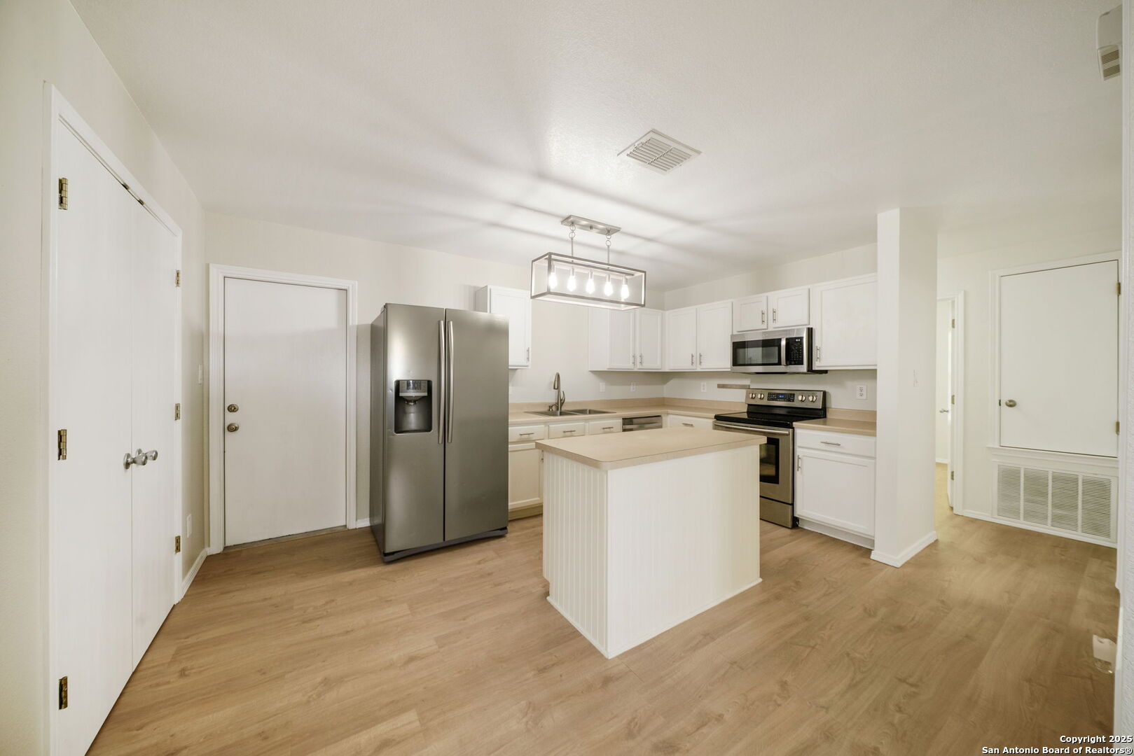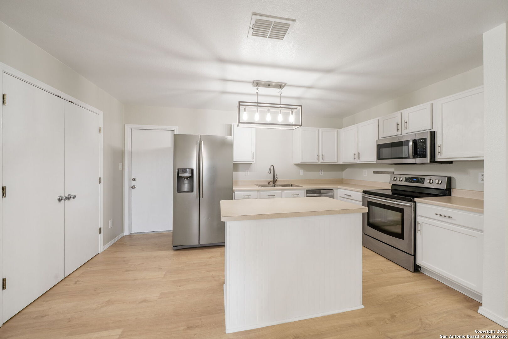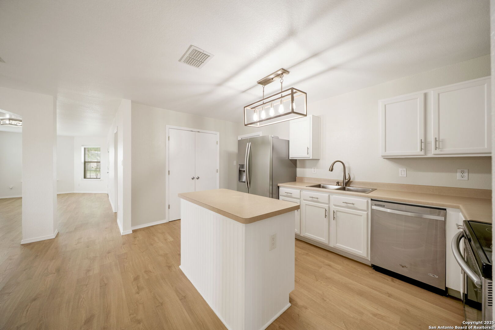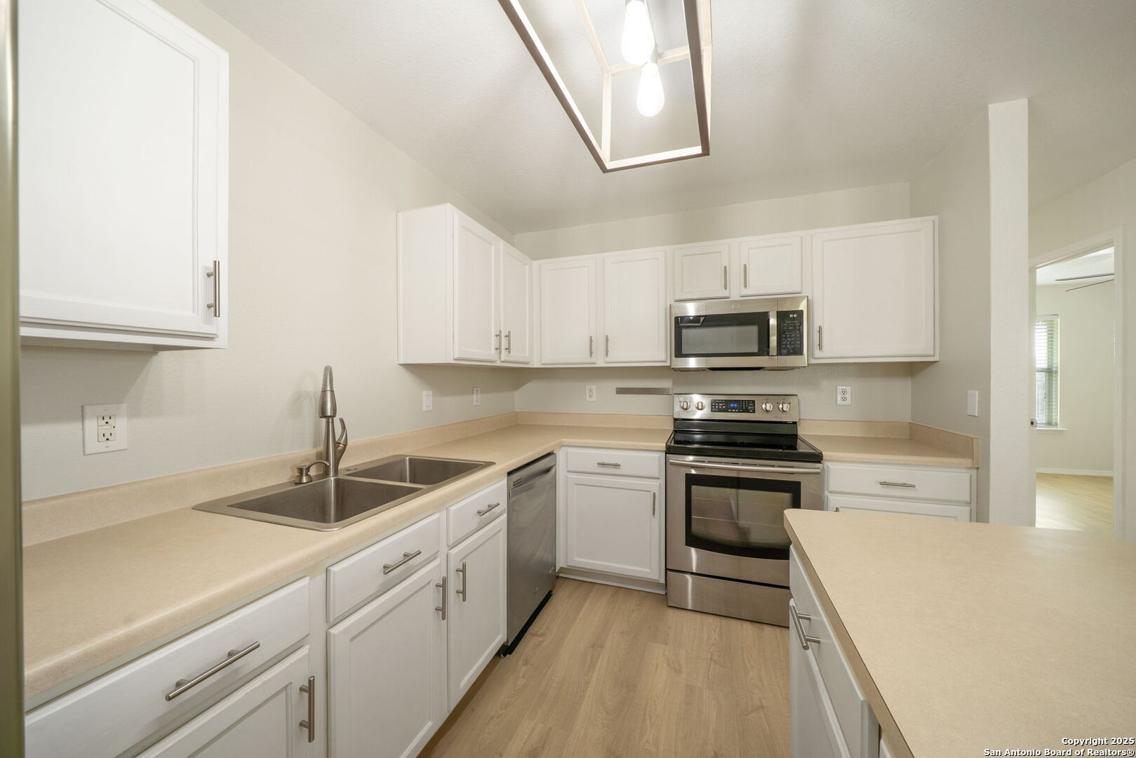 Well Kept 1 Story Located in Shaenfield Place! Home Features - 3 Bedrooms * 2 Baths * 4 Sides Brick Masonry * Newly Installed Vinyl Flooring Throughout * New Water Heater * No Carpet * Kitchen Island * Stainless Steel Appliances * Upgraded Lighting Fixtures * Blinds Throughout * Garden Tub/Shower Combo at Primary Bath * Covered Patio * Matures Trees and more. All Situated on a corner lot! Students will attend award winning Northside Schools!