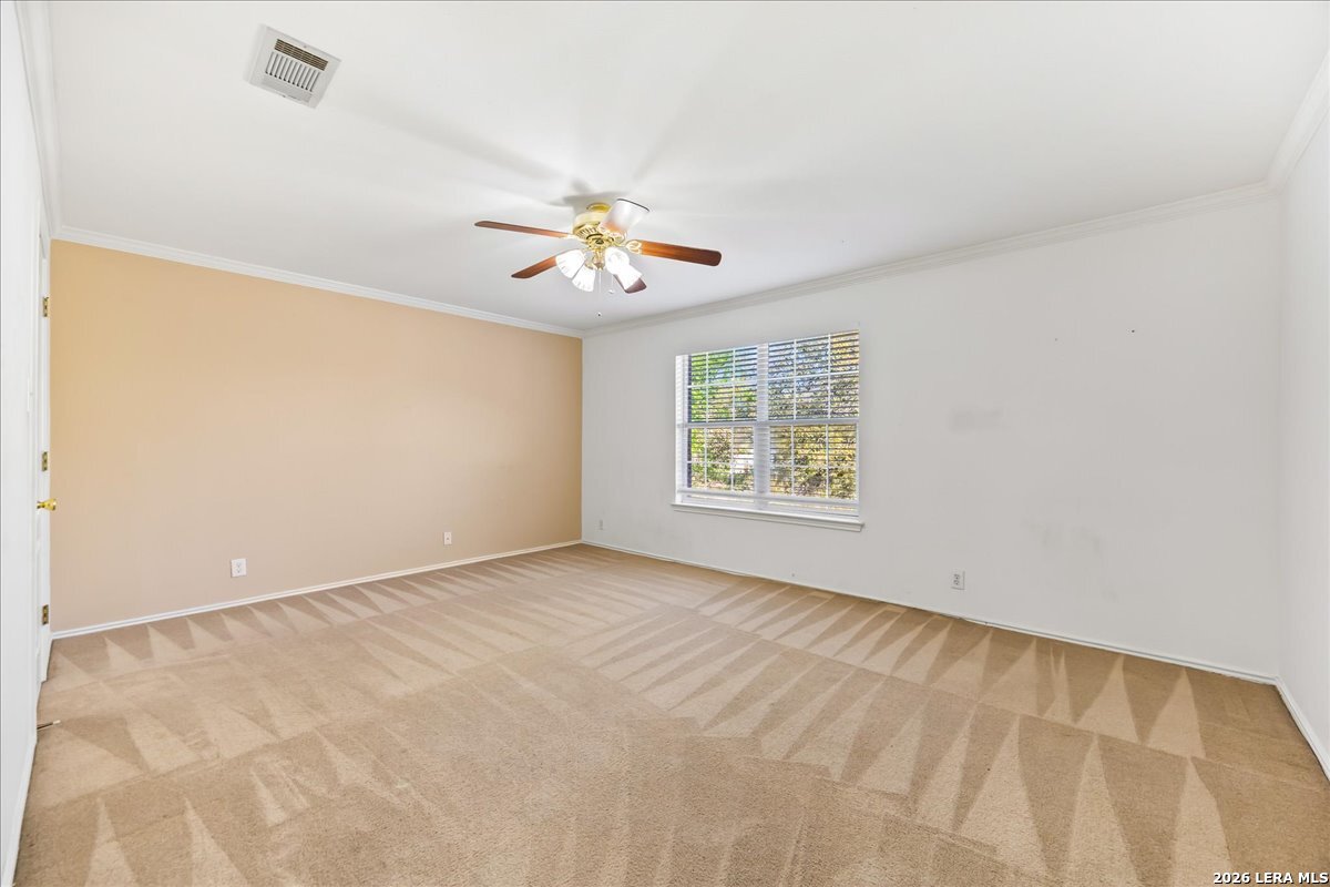 Welcome to this spacious and well-maintained 4-bedroom, 2.5-bath home in the desirable Spring Vistas neighborhood of San Antonio! This traditional two-story residence offers a bright open floor plan, island kitchen with plenty of granite counter space and a large pantry, and generous living areas perfect for everyday living and entertaining. The primary suite boasts a walk-in closet and roomy bath. Recent updates include a roof installed in 2019 and a new AC and water softener installed in 2023. Outside, enjoy a covered patio and backyard with shade trees-a great space for relaxing or gatherings. Located close to shopping, dining, schools, and major commuter routes, this home combines comfort, convenience, and move-in readiness. Don't miss this opportunity! Room sizes and measurements are approximate only. Buyer to verify.