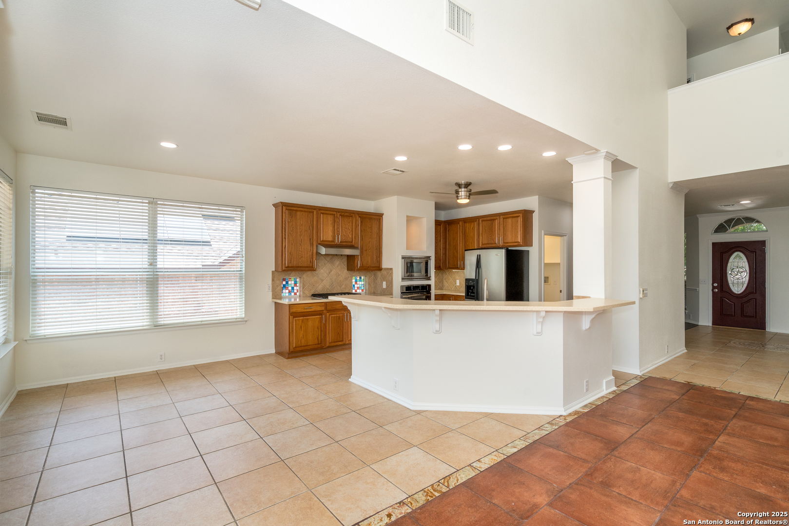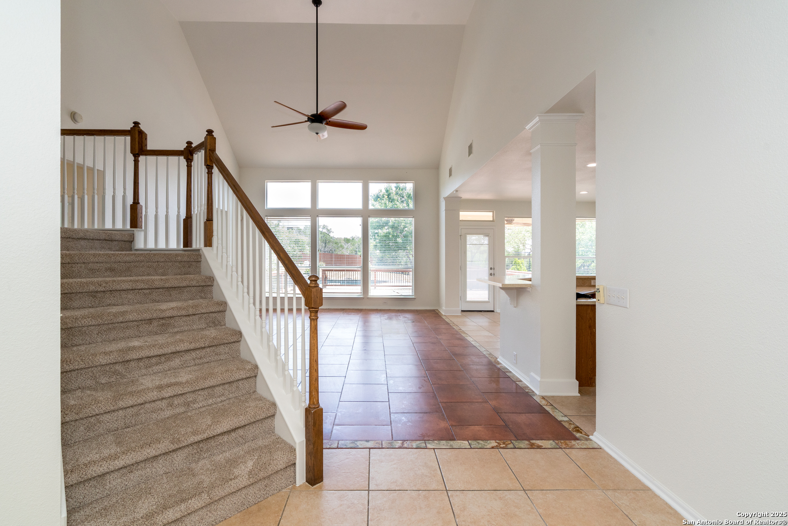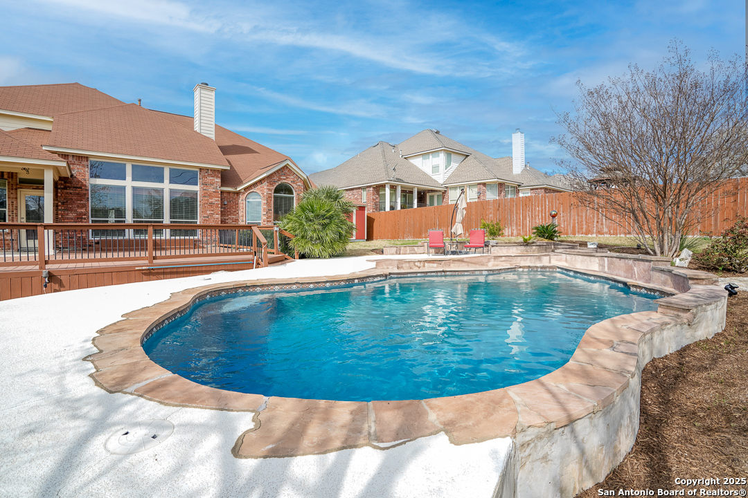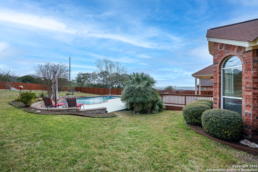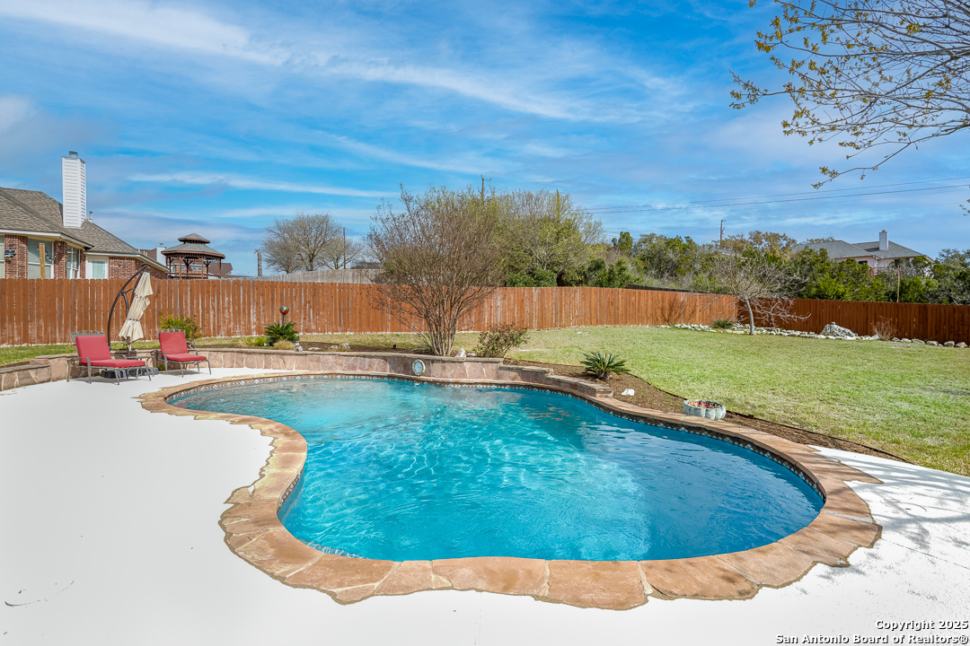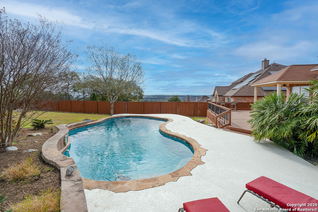 Beautiful Swimming Pool and Spacious Patio Perched High on a Hill in HELOTES, Gateway to the Texas Hill Country, this impressive MOVE IN READY 3,300 plus square foot, four bedroom, three and a half bath home has Commanding Views of both Helotes and San Antonio. With a Three Car Climate Controlled Garage + Large fenced Oasis with Built In Irrigation. Let Wind Walker be your Perfect Staycation Retreat. Inside, the Open-Concept layout is designed for both style and functionality, featuring Soaring 20-foot Ceilings + Floor-to-Ceiling Windows that flood the space with Ample Natural Light + NEW Paint throughout + Ceramic Terracotta Flooring + NEW Carpet. Private Master Suite on the main floor features a Modern Oversized Mud Set + Floating Glass Walk In Spa like Shower. The chef's kitchen is a dream, boasting a butler's pantry, Gas Stovetop, high-end finishes + Stainless Steel Appliances. Upstairs, the secondary bedrooms, game room, and loft provide the perfect space for relaxation and entertainment. Located on a quiet cul-de-sac, this home can be the perfect place to both play and relax. Come tour this incredible breathtaking Hilltop Retreat!