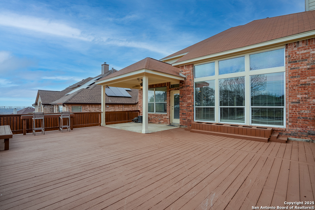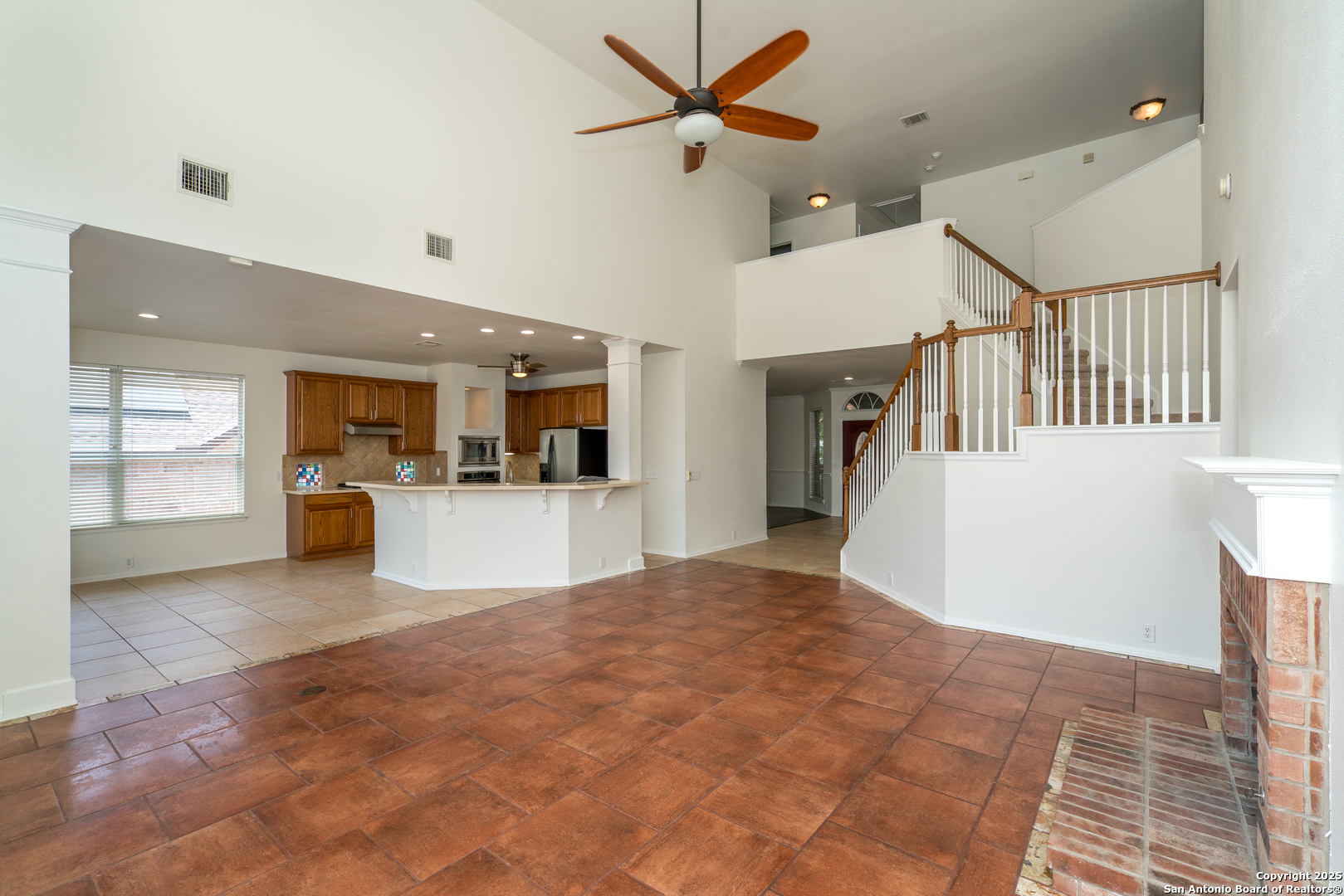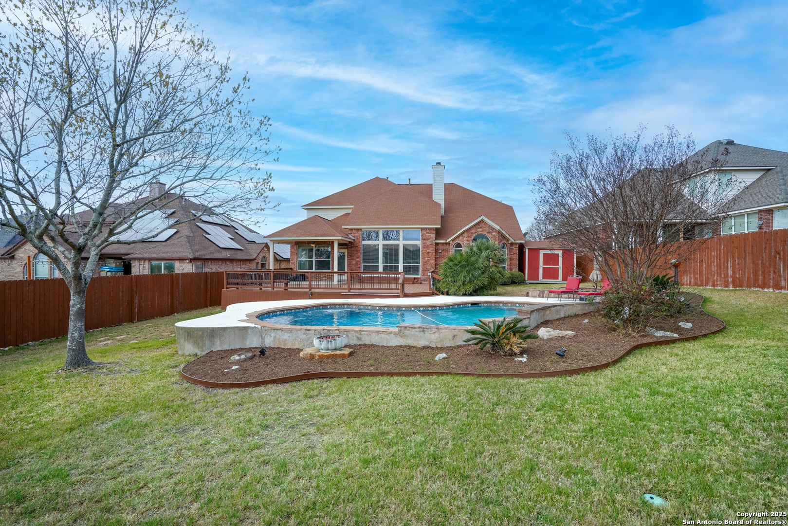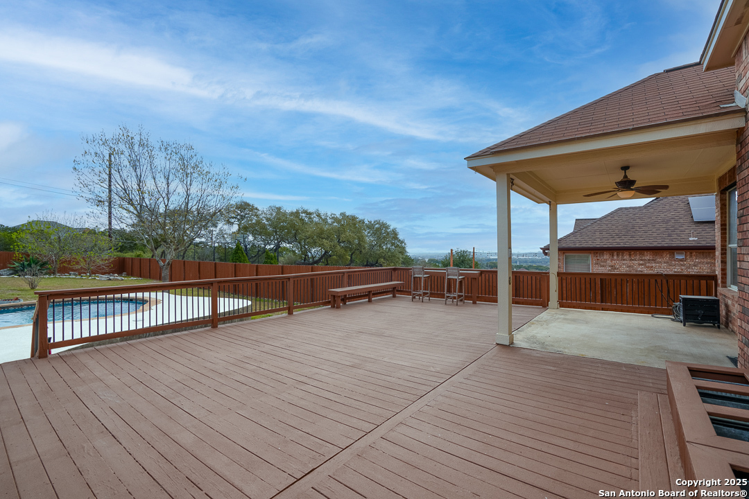 Beautiful Swimming Pool and Spacious Patio Perched High on a Hill in HELOTES, Gateway to the Texas Hill Country, this impressive MOVE IN READY 3,300 plus square foot, four bedroom, three and a half bath home has Commanding Views of both Helotes and San Antonio. With a Three Car Climate Controlled Garage + Large fenced Oasis with Built In Irrigation. Let Wind Walker be your Perfect Staycation Retreat. Inside, the Open-Concept layout is designed for both style and functionality, featuring Soaring 20-foot Ceilings + Floor-to-Ceiling Windows that flood the space with Ample Natural Light + NEW Paint throughout + Ceramic Terracotta Flooring + NEW Carpet. Private Master Suite on the main floor features a Modern Oversized Mud Set + Floating Glass Walk In Spa like Shower. The chef's kitchen is a dream, boasting a butler's pantry, Gas Stovetop, high-end finishes + Stainless Steel Appliances. Upstairs, the secondary bedrooms, game room, and loft provide the perfect space for relaxation and entertainment. Located on a quiet cul-de-sac, this home can be the perfect place to both play and relax. Come tour this incredible breathtaking Hilltop Retreat!