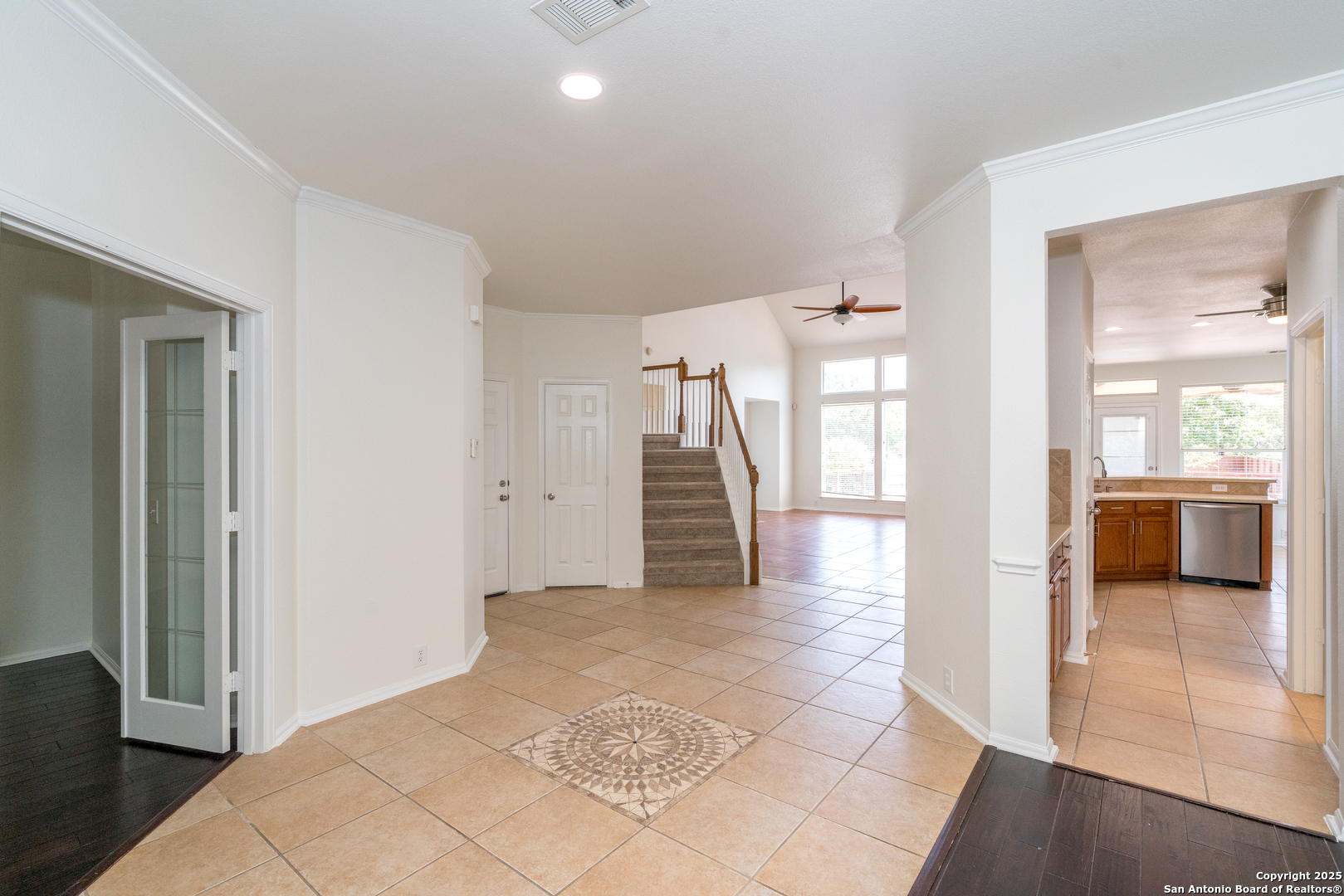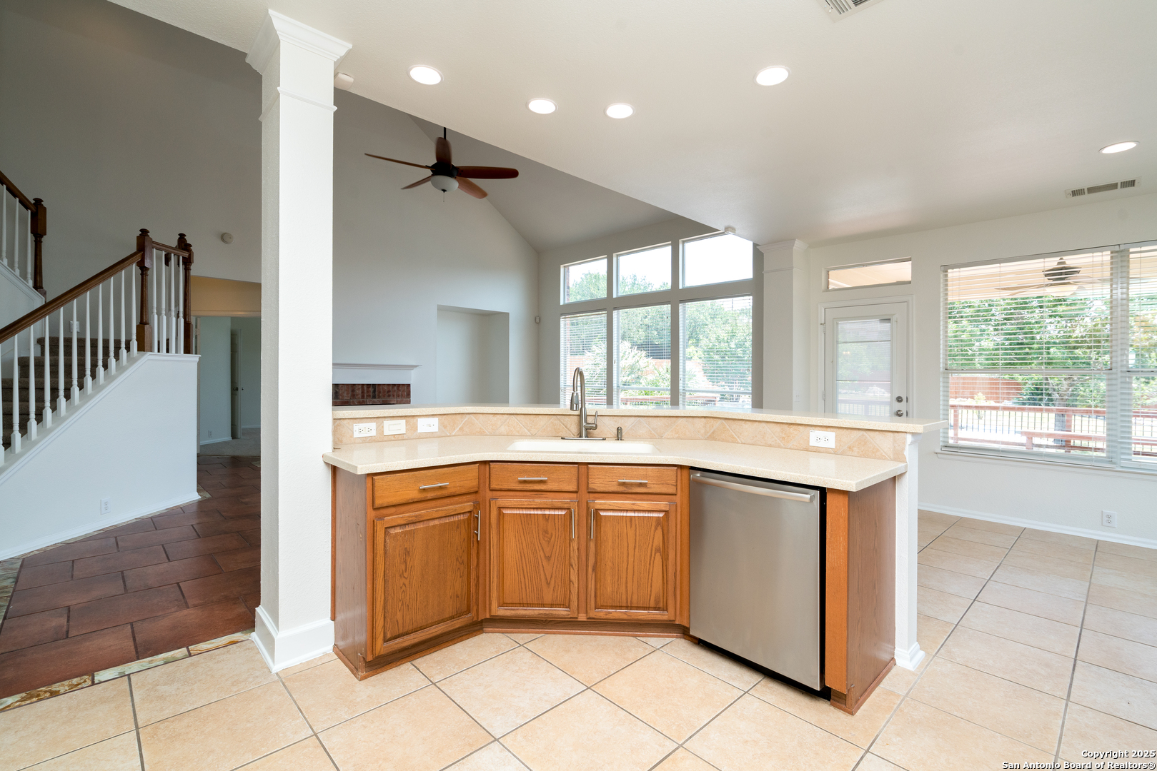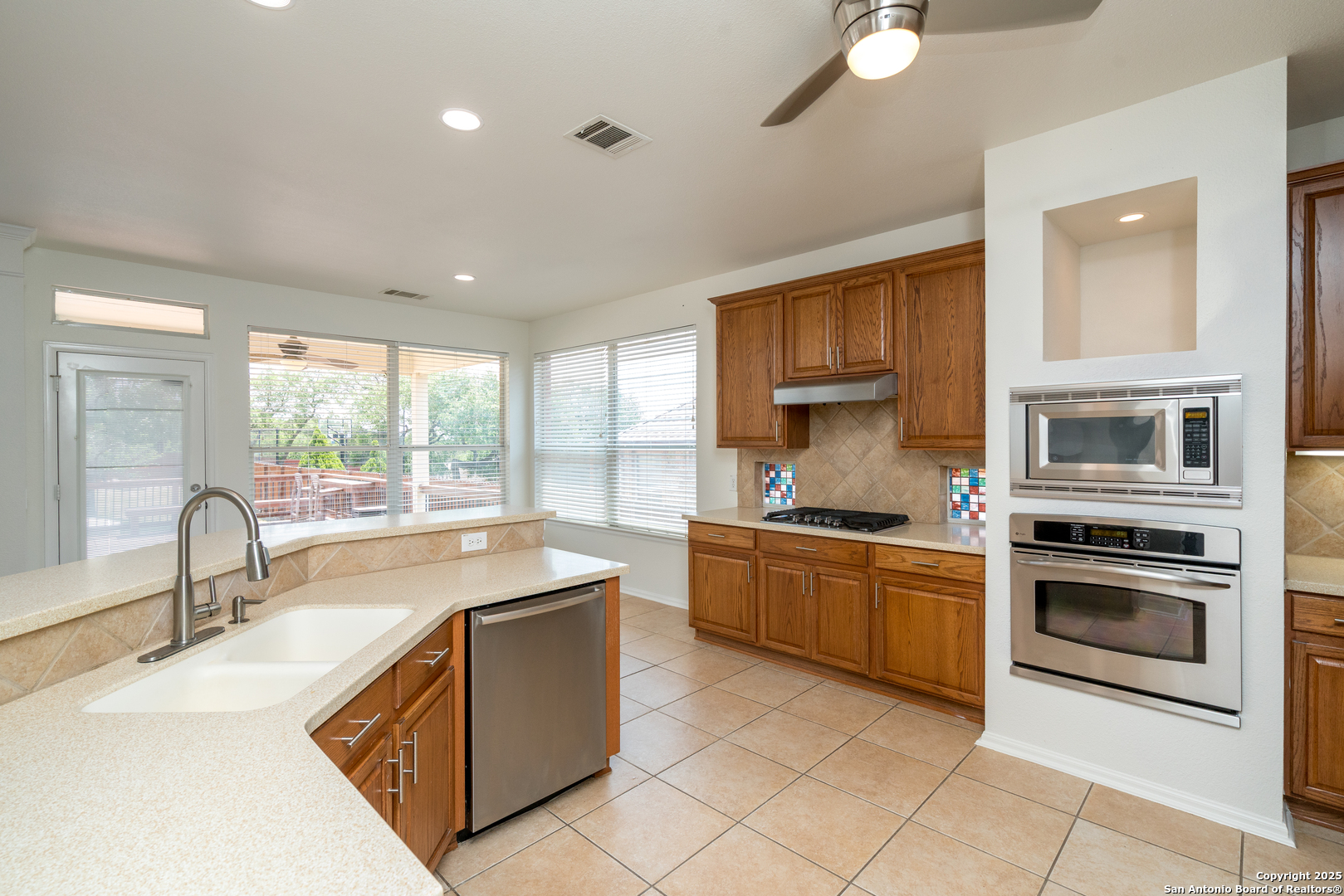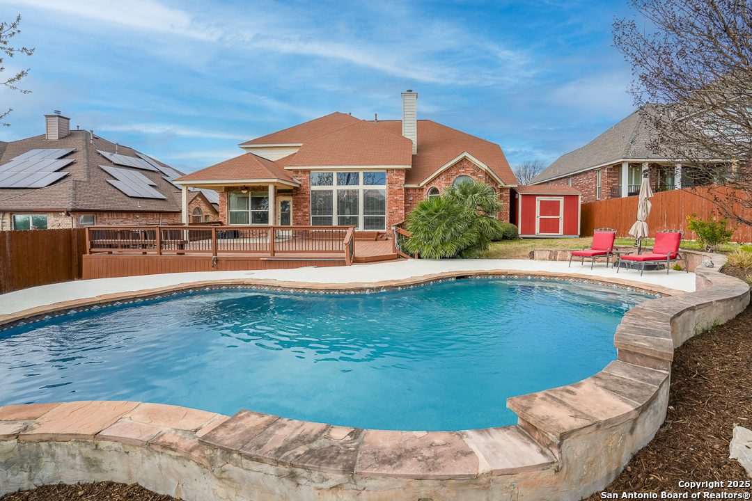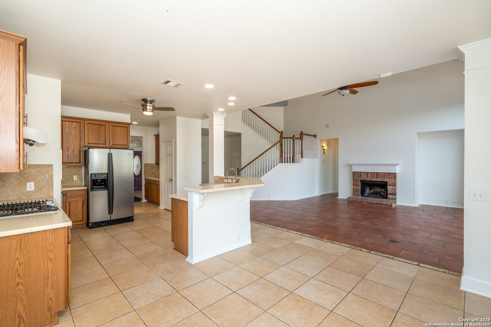 Beautiful Swimming Pool and Spacious Patio Perched High on a Hill in HELOTES, Gateway to the Texas Hill Country, this impressive MOVE IN READY 3,300 plus square foot, four bedroom, three and a half bath home has Commanding Views of both Helotes and San Antonio. With a Three Car Climate Controlled Garage + Large fenced Oasis with Built In Irrigation. Let Wind Walker be your Perfect Staycation Retreat. Inside, the Open-Concept layout is designed for both style and functionality, featuring Soaring 20-foot Ceilings + Floor-to-Ceiling Windows that flood the space with Ample Natural Light + NEW Paint throughout + Ceramic Terracotta Flooring + NEW Carpet. Private Master Suite on the main floor features a Modern Oversized Mud Set + Floating Glass Walk In Spa like Shower. The chef's kitchen is a dream, boasting a butler's pantry, Gas Stovetop, high-end finishes + Stainless Steel Appliances. Upstairs, the secondary bedrooms, game room, and loft provide the perfect space for relaxation and entertainment. Located on a quiet cul-de-sac, this home can be the perfect place to both play and relax. Come tour this incredible breathtaking Hilltop Retreat!