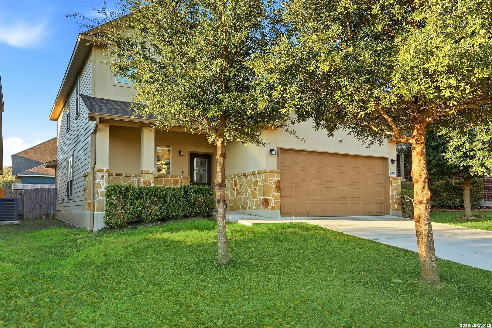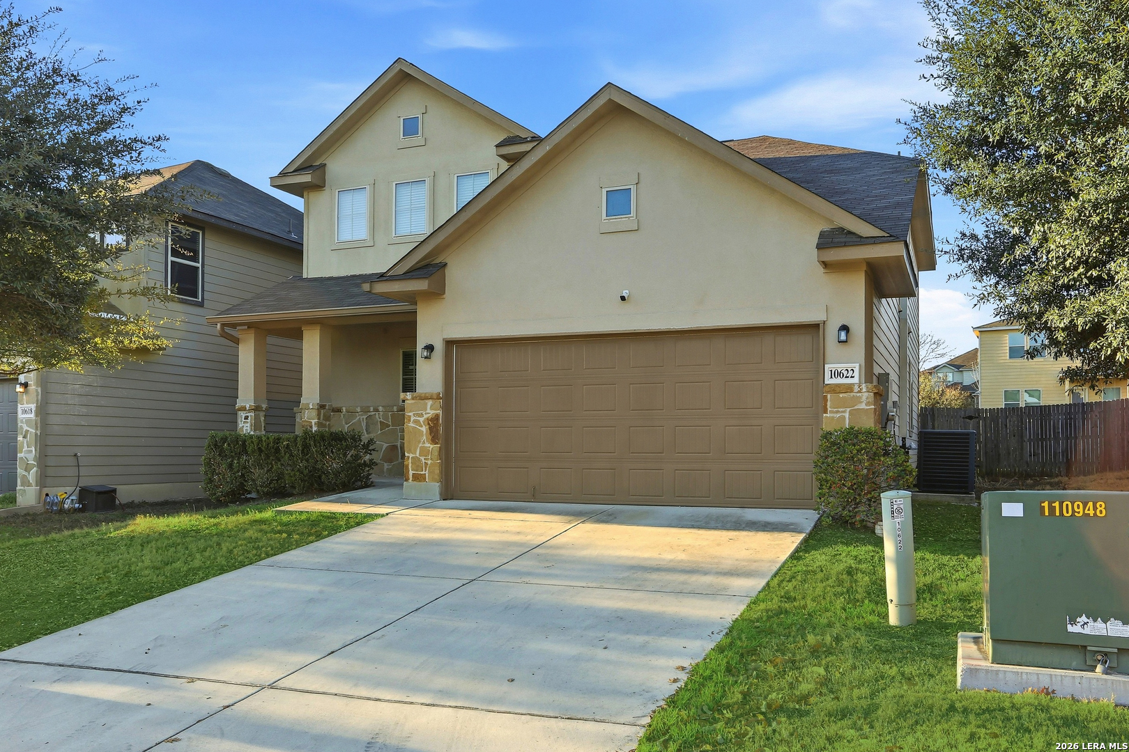 Built in 2017, this two-story home offers a clean, functional layout with over 2,000 square feet of living space. Located in the Wolf Creek community, the property is positioned for easy daily logistics while providing a quiet residential feel. The main level is anchored by an open-concept family room that feels especially spacious thanks to the vaulted ceilings that open up to the second floor. The kitchen is designed for efficiency and social connection, featuring granite countertops, stainless steel appliances, 42-inch upper cabinets for extra storage, and a functional island with a breakfast bar. A key feature is the primary suite located on the first floor. It includes a bay window that adds character and natural light, along with an ensuite bath featuring a separate garden tub, walk-in shower, and double vanity. Upstairs, a versatile gameroom/loft overlooks the family room below, providing a second living area perfect for a home office, gym, or media space. The backyard is fully enclosed with a privacy fence and includes a covered patio, making it a low-maintenance spot for grilling or relaxing. The home was also built with energy efficiency in mind, featuring a high-efficiency HVAC system and a zone damper system to help manage cooling costs during Texas summers. Commute: Quick access to Loop 1604 and Highway 90 makes for a straightforward drive to Lackland Air Force Base, Citibank, and the growing Port San Antonio area. Schools: Located within the Southwest ISD. Big Country Elementary and Scobee Middle School are both less than a mile away, making morning drop-offs easy. Shopping & Dining: You are minutes from the Alamo Ranch shopping centers and the HEB-Plus! at Potranco/1604, offering a massive variety of retail and dining options.