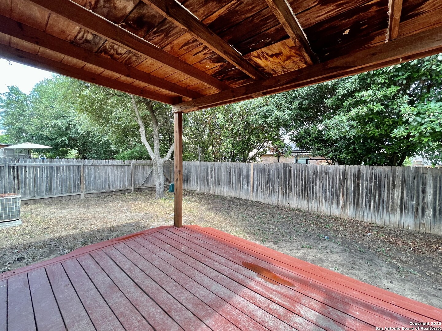Welcome to this charming single-story residence, boasting 3 bedrooms and 2 bathrooms. As you step inside, you'll be greeted by a spacious living room adorned with vinyl wood-like flooring that offers both durability and a touch of elegance. The room also features three built-in shelves on one wall, providing both functional storage and a decorative element. A ceiling fan gracefully hangs from above, ensuring a comfortable atmosphere. Adjacent to the living room is a separate dining area, also adorned with the same vinyl wood-like flooring, creating a seamless flow throughout the space. This area is conveniently located next to the kitchen, making mealtime a breeze. The quaint kitchen is a delightful blend of style and functionality, offering ample counter space for meal preparation. Equipped with appliances, including a refrigerator, microwave, electric stove/range, and dishwasher, this kitchen caters to all your culinary needs. The residence comprises three inviting bedrooms, each featuring plush carpeting underfoot and enhanced with ceiling fans overhead. The primary bedroom is a true retreat, complete with a walk-in closet for your wardrobe storage needs. The ensuite bathroom is thoughtfully designed, featuring a generous amount of counter space, combining both convenience and comfort. Step outside from the kitchen, and you'll find yourself on a covered deck in the backyard - a perfect setting for outdoor relaxation and entertainment. Whether you're enjoying a morning coffee or hosting a gathering, this space provides the ideal backdrop. In summary, this single-story house presents a harmonious blend of practicality and aesthetic appeal. "RESIDENT BENEFIT PACKAGE" ($50/Month)*Renters Insurance Recommended*PET APPS $25 per profile.