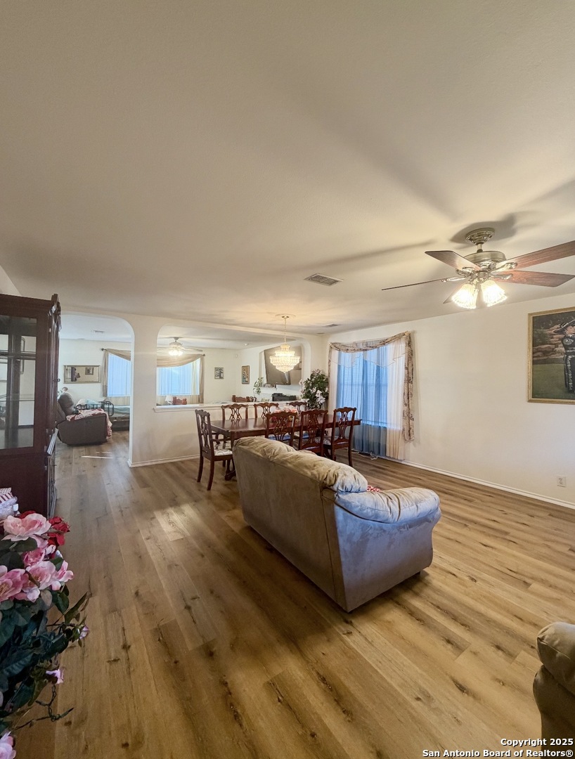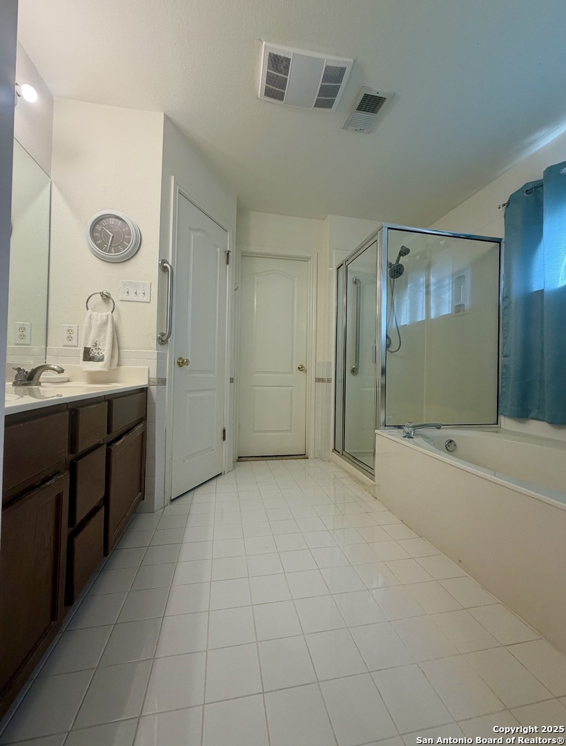 Welcome to this charming two-story home in the desirable Spring Vistas community! Featuring 3 bedrooms, 2.5 baths, and an open-concept layout, this home offers multiple living and dining areas perfect for everyday living and entertaining. The island kitchen includes ample cabinet space and opens to the family room. All bedrooms are located upstairs, including a spacious primary suite with walk-in closet and a private bath featuring double vanities and a separate tub and shower. Enjoy added storage with a two-car attached garage and the convenience of an interior utility room. Neighborhood amenities include a community pool. Conveniently located near Military Dr., shopping, dining, and major highways.