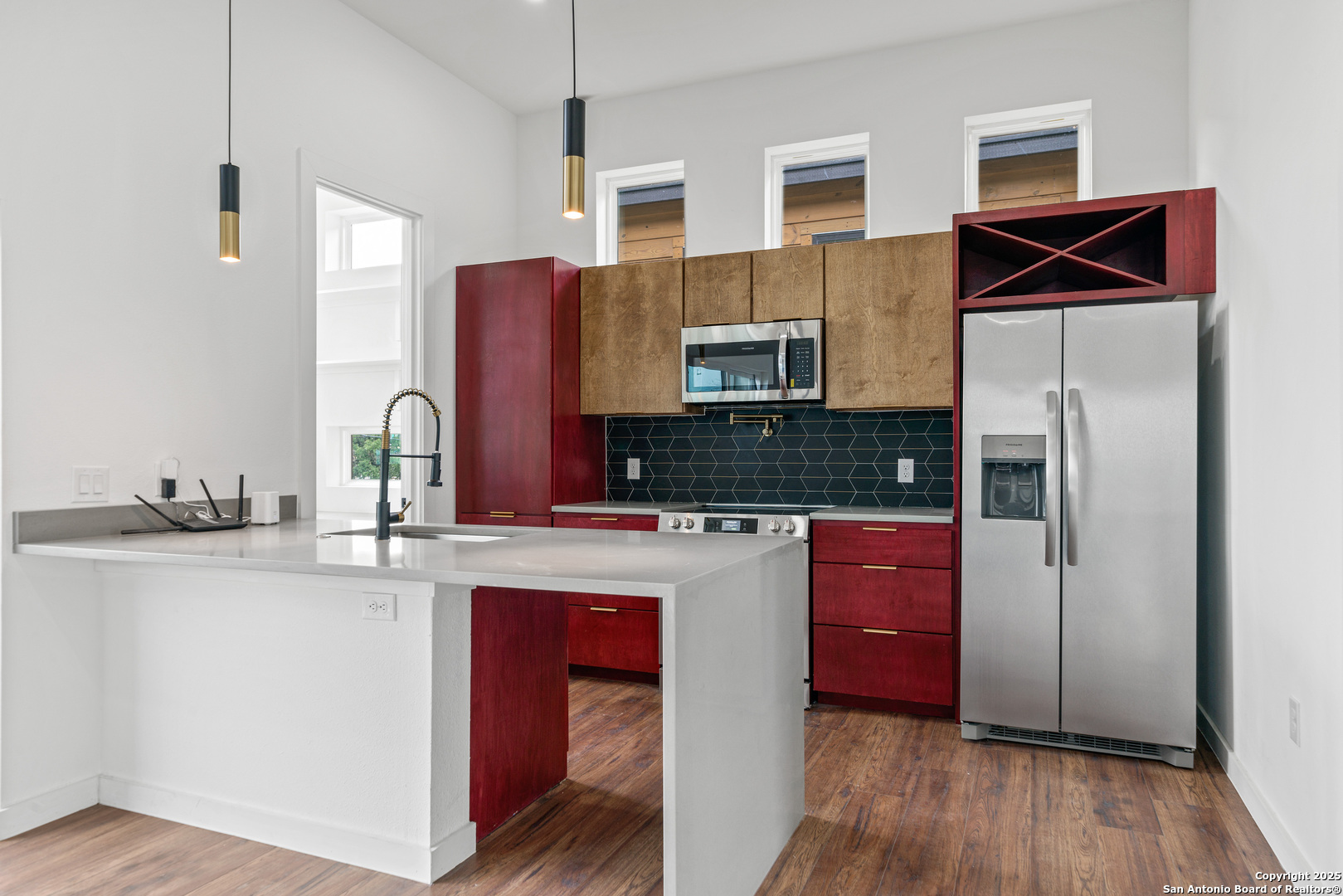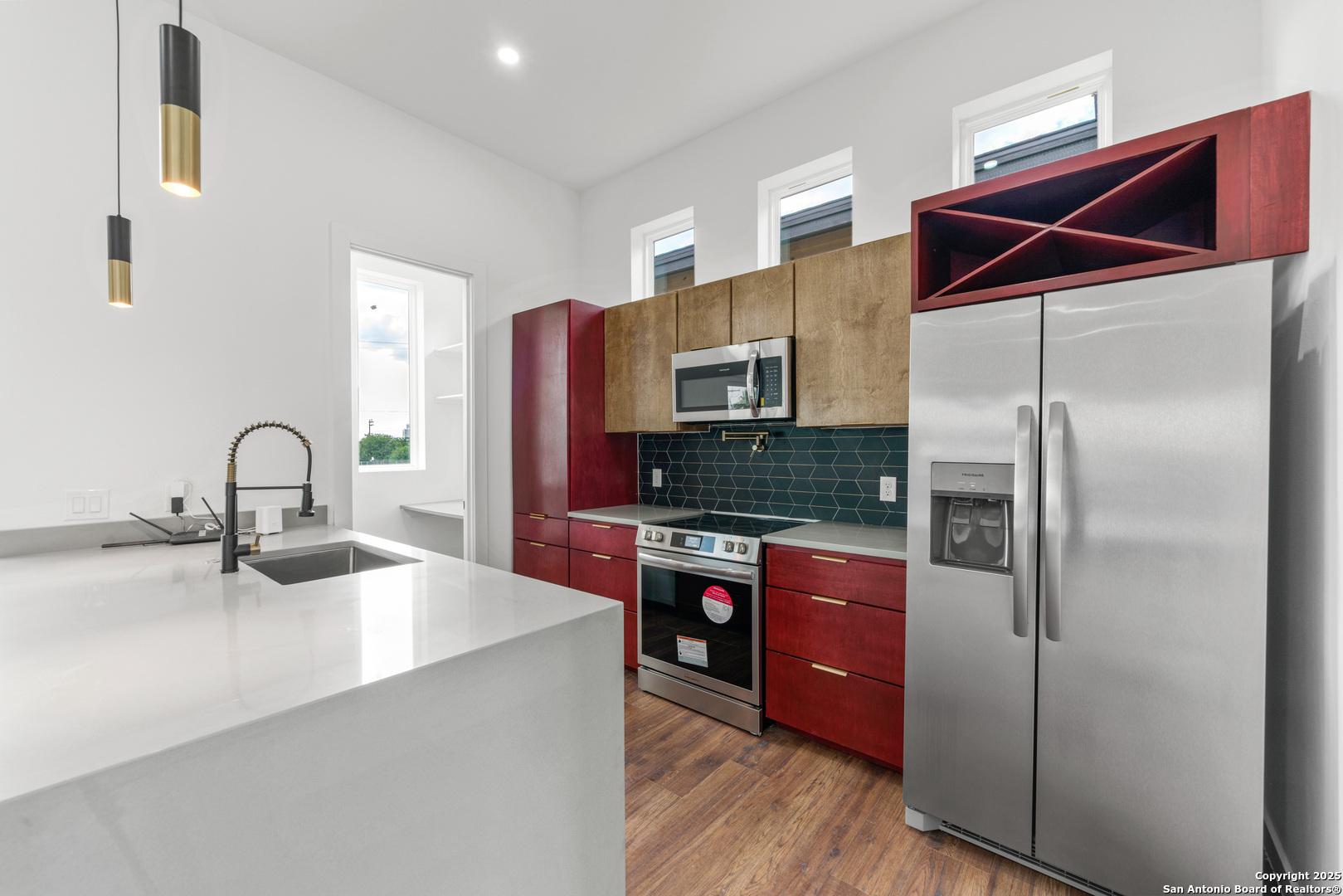 NOW AVAILABLE FOR RENT! ***OPEN HOUSE SUNDAY 1-4*** Unique, modern downtown living home located in the heart of San Antonio. This home makes the very most of its 1,681 square feet including garage with 2 bedrooms, 2 full baths, office and large utility room. Main living areas situated on 2nd level to allow for lovely views out of every window. Kitchen features quartz countertops, custom cabinetry, stainless steel appliances, modern plumbing fixtures including pot filler, vent hood and full decorative backsp
