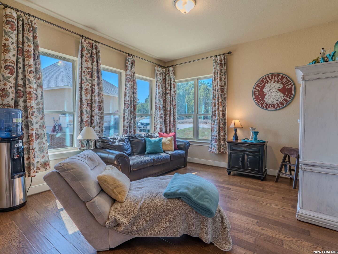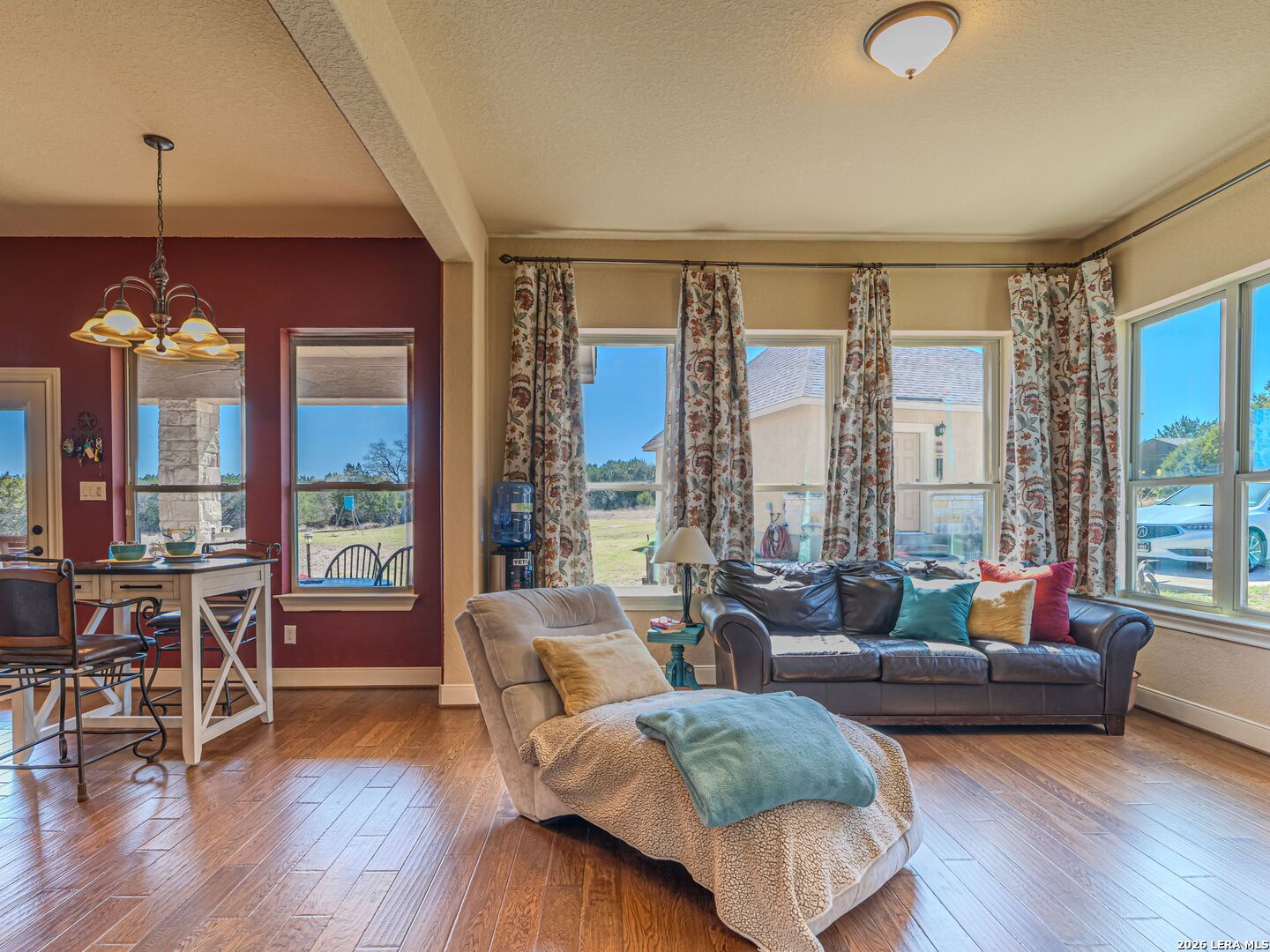 Nestled on 5 private acres in the Texas Hill Country, this beautifully crafted custom home offers the perfect blend of privacy, quality construction, and thoughtful upgrades- all located within the highly sought-after Boerne ISD with A-rated schools. The home features recent interior paint updates and an open, inviting layout with hardwood flooring throughout the main level. Built for durability and efficiency, the home includes 2x6 exterior walls, PEX plumbing designed to withstand freezing temperatures, energy-certified constriction, a private well and septic system and an in-wall pest control system. The gourmet kitchen is designed for both everyday living and entertaining, showcasing granite countertops, custom cabinetry, stainless steel appliances, gas cooking and a convenient pot filler. The spacious owner's retreat offers a relaxing escape with a luxurious bathroom, featuring a jetted tub, separate walk-in shower and large walk-in closet. Upstairs, you'll find a media/bonus room fully wired for a projector, cable TV, surround sound, perfect for movie nights or game days. Step outside to the covered patio overlooking the peaceful acreage, with easy access to to the detached 3 car garage. Outdoor features include hot and cold water at every spigot, ideal for projects, pets or ranch-style living. A 12x20 barn-style storage building is also included. Additional highlights include wood-burning fireplace, exterior cable wiring, and access to exclusive community amenities, including gated entry to three water parks- two along the Guadalupe River and one on Spring Creek. A truly rare opportunity to enjoy Hill Country privacy, modern comforts, and top-rated schools conveniently located just minutes to Boerne and San Antonio.